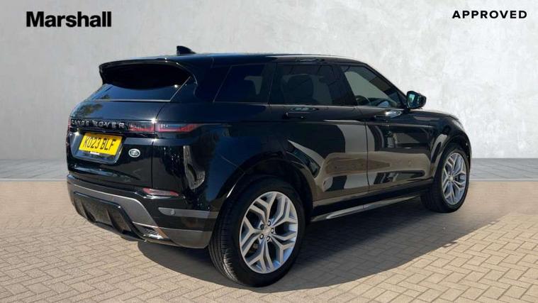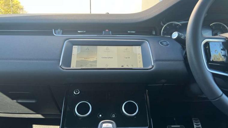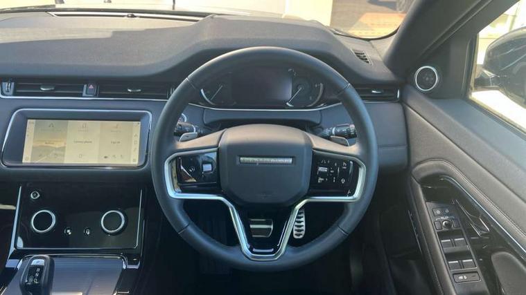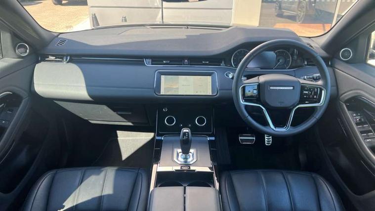Adaptive cruise control, Android Auto, Apple car play, Blind spot assist, Bluetooth connectivity, Brake pad wear indicator warning light, Driver condition monitor, eCall emergency system, Electronic power assisted steering (EPAS), Front and rear parking aid, InControl remote, Land Rover InControl apps, Lane keep assist, Pivi pro connected includes upgraded infotainment, connected navigation pro, Nuance speech licence, Push button starter, Rear collision monitor, Rear traffic monitor, Traffic sign recognition with adaptive speed limiter, Voice control system, All terrain progress control, Efficient Driveline, Passive suspension, Terrain Response 2 Auto, Digital Audio Broadcast radio-DAB, Steering wheel mounted controls, Auto headlights, Automatic headlight levelling, Electric windows with one touch open/close and anti trap, Evoque and R-Dynamic badge, Flush deployable exterior door handles, Heated rear window with timer, Heated washer jets, Heated windscreen, Power fold, auto-dimming, heated door mirrors with approach lights and auto dimming driver side, Rain sensing windscreen wipers, Rear fog lights, Rear side wing doors, Rear wiper, Tailgate spoiler, Third brake light, 40:20:40 split folding rear seats with centre headrest and armrest, Ambient interior lighting, Bright metal pedals, Isofix system on outer rear seats, Overhead lighting console, Overhead stowage for sunglasses, Passive front head restraints, Rear air vents, Rear centre headrest, Rear head restraints, Satin chrome gearshift paddles, Single passenger seat, Sunvisors with illuminated vanity mirrors, Twin sliding front centre armrest, 3 rear 3 point seatbelts, Anti-lock braking system (ABS), Customer configurable autolock, DSC - Dynamic Stability Control, Electronic brake force distribution, Electronic parking brake, Electronic traction control, Emergency braking, Front and rear seatbelt reminder, Hill descent control, Hill launch assist, Low traction launch, Power operated child locks, Roll stability control, Six airbags - Driver and passenger airbags/driver knee airbag/front side airbag and curtain airbags, Torque vectoring brake, Tyre pressure monitoring system, Alarm, Immobiliser, Intrusion sensor, Keyless entry, Locking wheel nuts,