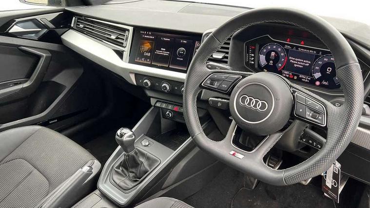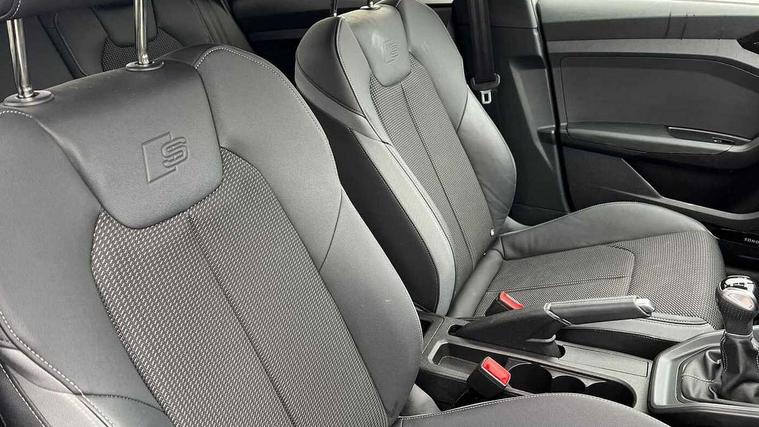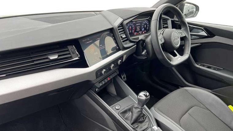 10.25" Digital instrument cluster display classis style instrument dials + speed, odometer, time, outside temperature, telephone menu + fuel level warning, Advanced driver attention and drowsiness monitor, Audi drive select, Audi remote connect and control, Audi smartphone interface, Bluetooth interface, Camera based traffic sign recognition, Cruise control, Driver's information system, Electromechanical power steering, Emergency e-call, Lane departure warning system, Rear parking sensor, Service interval indicator, Speed limiter, Start stop system with recuperation, Voice control system, Washer fluid level indicator, Sports suspension, 2 x USB type C connection points, 6 loudspeakers, DAB Digital radio, MMI radio plus with 10.1" colour MMI display screen and MMI touch, Auto dimming rear view mirror, Black side skirts, Body coloured bumpers, Door sill trims with aluminium inlays and logo, Electric front and rear windows, Electrically adjustable, heated, folding door mirrors with integrated LED side indicator, Front side air inlets in grained matt black and C frame in anthracite black, Front wing badges, Headlight cleaning system, Heat insulating glass windscreen and side windows, Heated rear windscreen, High level LED brake light, LED daytime running lights, LED headlights with range control LED rear lights + dynamic rear indicators, Privacy glass, Radiator grille and rear diffuser in matt anthracite black, Radiator protective grille frame in matt aluminium silver, Rain and light sensors, Rear fog lights, Rear side wing doors, Rear wiper, Side front spoiler lips in grained matt black, 12V socket in centre console with two cup holders, 3 rear seats with headrests, 3 seat bench in 2nd row, 3 spoke flat bottomed multi-function plus leather steering wheel with S badging, grips in preforated leather and contrast stitching, 40:60 Split folding rear seat or fully collapsed, Black cloth headlining, Front and rear velour black floor mats with contrast stitching in fine silver, Front head restraints, Front passenger seat, Height and reach adjustable steering wheel, Interior lighting includes roof module, front and rear reading lights and right luggage compartment lighting, ISOFIX child seat mounting for front passenger and outer rear seats including top tether attachment point of outer rear seats, Leather gear knob with aluminium trim, Leather handbrake grip, Manual air conditioning, Manual height adjustable for driver and front passenger seat, Manually adjustable lumbar support in front seats, Stainless steel pedals, Ambient lighting package - A1, Black styling pack - A1 Sportback Black Edition, Luggage compartment pack - A1, 3x3 point rear seatbelts, Audi pre-sense front with pedestrain and cyclist recognition, Brake assist function, Driver and front passenger airbag with front side and head airbags, Electronic Stability Control including ABS, EBD, ASR and EDL, Front passenger airbag deactivation switch, Hill hold assist, Manual rear child locks, Seatbelt height adjustment for front seats, Seatbelt monitoring, Tyre pressure loss indicator, Warning triangle and first aid kit, Anti theft alarm, Anti theft wheel bolts, Immobiliser, Remote control key with safelock, Aluminium trim for control switches, air vents and digital instrument cluster, Black dashboard, Silver grey inlays polygon structure in diamond paint finish, Structured grey accent surfaces insert of air vents, interior door handle recesses and centre console in quartz paint finish,