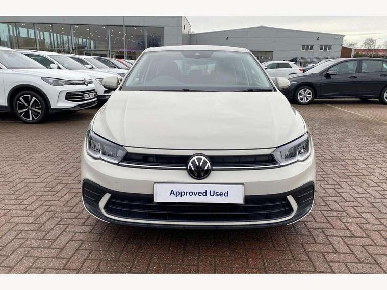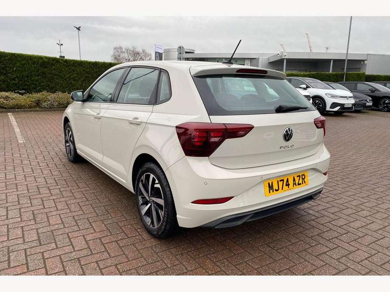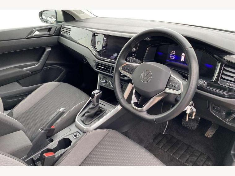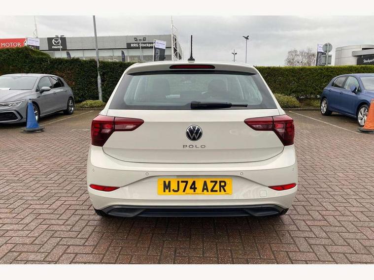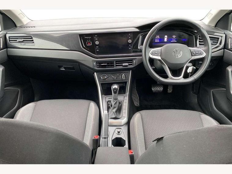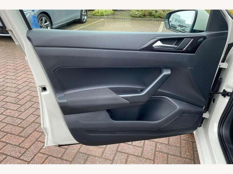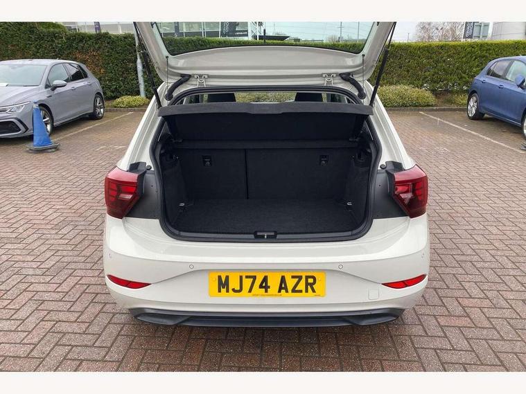 Adaptive cruise control with follow-to-stop and speed limiter, Advanced driver attention and drowsiness monitor, Bluetooth mobile phone interface, Dynamic road sign display, Emergency call service, Multifunction camera, Power assisted speed sensitive steering, Preparation for navigation system with media and internet package, Preparation for We connect and We connect plus, Speedo and rev counter, electronic odometer, trip, service interval display and exterior temperature gauge, Standard rear axle, Travel Assist - Lane keeping system and traffic jam assist, Travel assist including emergency assist, Trip computer, Warning signal and warning light for front and rear seatbelts not fastened, Washer fluid level indicator, Wireless app connect, Front wheel drive, Rear shock absorpion, Start-stop system with battery regeneration (recuperation - energy recovery during braking), DAB Digital radio, Diversity antenna for FM reception, Front and rear 6 speakers, Automatic dimming interior rear view mirror, Automatic headlight control with LED separate daytime running lights with coming/leaving home function, Body colour bumpers with chrome inserts, Body colour door handles, Body colour door mirrors, Electric front windows, Engine badge deletion, Headlight range adjustment, Heat insulating and laminated safety glass windshield, Heat insulating darkened glass in side and rear windows, LED Headlights, LED rear combination lamps, Power folding adjustable/heated exterior mirrors and front passenger exterior mirror lowering function, Rain sensor, Rear electric windows, Rear fog light, Rear side wing doors, Rear windscreen washer and wiper with interval delay, Third brake light, 12V power socket in centre console, 2 front and 2 rear reading lights with switch off delay and dimmer, 2 USB-C ports in the front, 2 USB-C charging sockets on the center console in the rear, 3 rear head restraints, 60/40 split folding rear seat and rear seat bench not split, Ceramique roof lining, Chrome plated radiator grille inserts, air vent surrounds and light switch surrounds, Door and side trim panel, Driver and front passenger seat height adjustment, Driver/passenger sunvisors with illuminated vanity mirrors, Front centre armrest, Front seat backrest storage pockets, Front standard seats, Handbrake lever handle in leather, Hartley/Thomas cloth upholstery, Headliner in recycled material, Isofix child seat preparation easy-fit (for two outer rear seats, and front passenger seat) compatible with I-size, Leather trimmed gear knob, Luggage compartment cover, Luggage compartment lighting, Removable luggage compartment floor, Single front passenger seat, Standard climatic zones, Standard pedal cluster, Three spoke leather wrapped multifunction steering wheel with shifting paddles, Light and vision pack - Polo, 3 point height adj front seatbelts + pretensioners, 3x3 point rear seatbelts, ABS, Driver and front passenger airbag with front passenger airbag deactivation, Drivers and front passengers safety optimised head restraints, ESC (Electronic stability control) + EDL (Electronic Differntial lock) and ASR (Traction control), Extended and predictive pedestrian/ cyclist protection, Front assist with autonomous emergency braking (for Adaptive Cruise Control ACC up to 130 mph), Front curtain and side airbags with center airbag, Front disc brakes, Hill hold control, Manual child lock in rear doors, Rear drum brakes, Single tone horn, Tyre pressure loss indicator, Alarm with interior protection, Anti-theft alarm system with interior monitoring, backup horn, and towing protection, Anti-theft wheel bolts, Electronic engine immobiliser, Lava stone black gloss/matt decorative inserts in dash and front door panels, Low rolling resistance tyres,