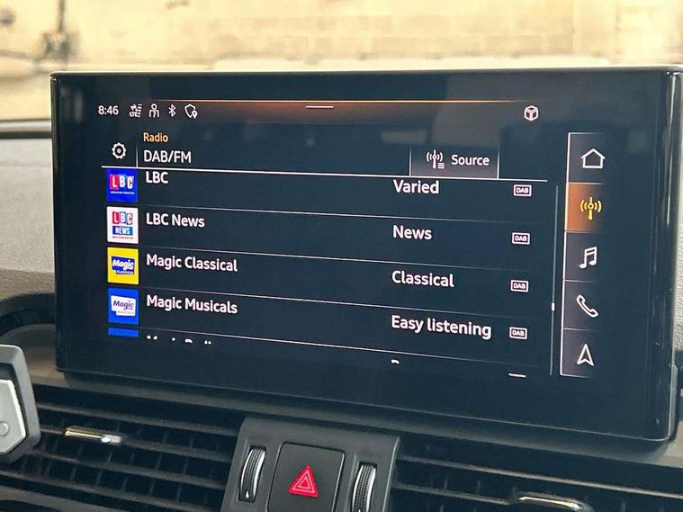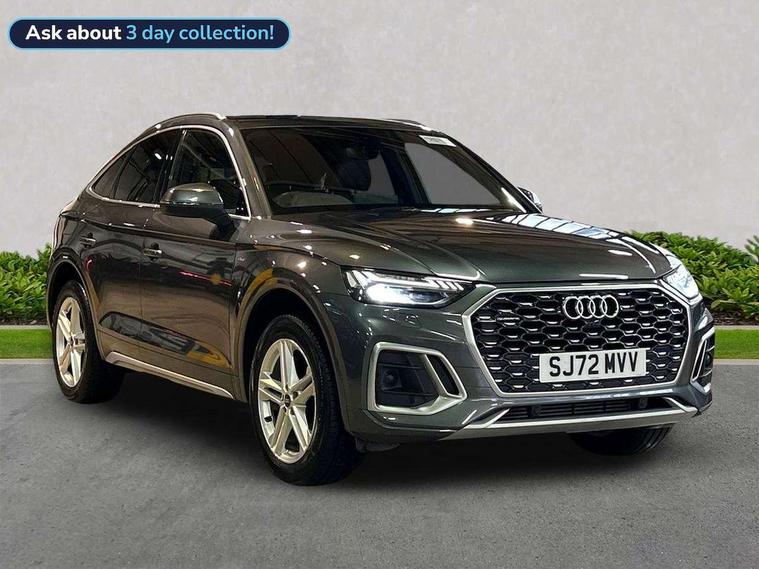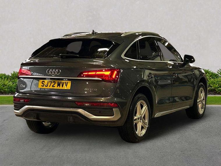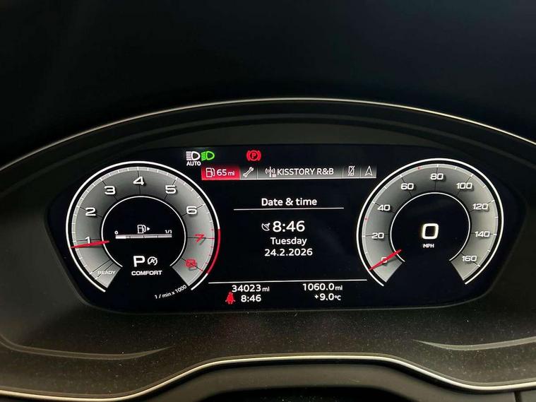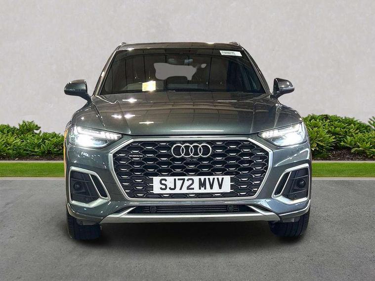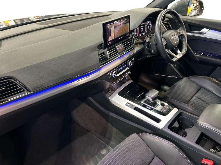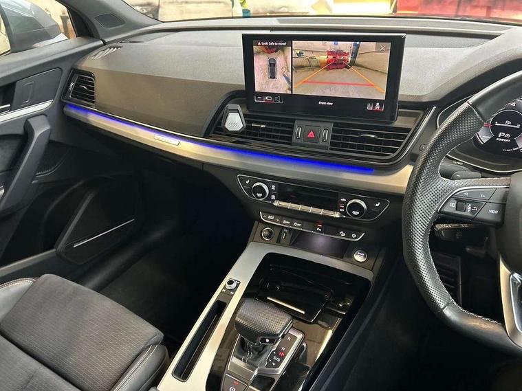 Audi connect safety and service (e-call), Audi connect with Amazon Alexa Integration, Audi drive select, Audi virtual cockpit plus with 12.3" screen and three different layout designs, Audi wireless smartphone interface, Automatic start-stop system with coasting functionality and efficiency programme, Bluetooth interface, Electro - mechanical power assisted steering, MMI navigation plus with 10.1" touch screen, Power tailgate, Reversing camera, Service interval indicator, Voice control system with Audi hotword activation "Hey Audi", 70 litre fuel tank, Quattro on demand, S line sports suspension, DAB Digital radio, Acoustic windscreen, Aluminium roof rails, Audi matrix LED headlights with dynamic front and rear indicators, Auto dimming door mirrors, Auto dimming rear view mirror, Automatic headlight adjustment, Automatic headlights and windscreen wipers, Body colour door mirrors, Body colour rear diffuser with matt aluminium silver surrounds, Body colour underbody protection, Chrome plated exhaust trims, Daytime running lights, Door sills in Selenite silver, Electric adjustable/heated/folding door mirrors, Front air inlet surrounds in aluminium, Front and rear electric windows, Front radiator grille in honeycomb design, Headlight washers, High level LED brake light, Lower bumpers painted in contrast Manhattan grey, Rear chrome trim strip below lights, Rear privacy glass and rear side windows, Rear side wing doors, Rear wiper, Roof bars, S Line badges on the front wings, S Line front and rear bumpers, S Line rear spoiler, S Line side skirts, 2 x USB charging port with aux input socket, 3 rear headrests, 40:20:40 split folding 3 rear bench seat in 2nd row with rear centre armrest, Black cloth headlining, Comfort front centre armrest, Contrast stitching on seats, steering wheel and gear lever gaiter, Deluxe 3 zone electronic climate control, Front head restraints, Front/rear floor mats, Gear lever in black leather, Heated front seats, Height/reach adjustable steering column, Illuminated door sill trims with S logo, ISOFIX child seat mounting and top tether, Manual seat adjustment with 4-way electric lumbar support, Removable luggage compartment floor, Single front passenger seat, Stainless steel pedals, Sunvisors with vanity mirrors, Trunk roller cover, High gloss pack - Q5, LED interior light pack - Q5, 3 point seatbelts on all seats, 6 airbags - Driver, front passenger, curtain and side airbags, Electrically operated child locks on rear doors, Electromechanical parking brake, Electronic stabilisation control including ABS, ASR and EDL, Front passenger airbag deactivation, Hill descent control, Hill hold assist, Multi collision brake assist, Pop-up bonnet for pedestrian protection, Pre sense city, Seat belt force limiter, Seatbelt monitoring, Tyre pressure warning, Warning triangle and first aid kit, Anti theft alarm, Anti-theft wheel bolts, Keyless Go access/ignition system, Remote central locking, Matt brushed aluminium inlays,