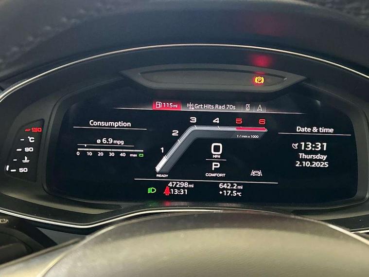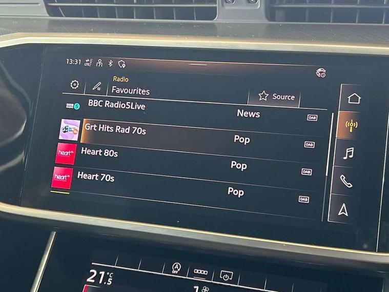 7" high resolution colour driver information display system, Audi connect safety and service (e-call), Audi drive select, Audi parking system plus - acoustic and visual park assist system for front and rear, Audi smartphone interface, Automatic start/stop system with coasting functionality, Bluetooth interface, Cruise control + speed limiter, Lane departure warning system, MMI navigation with MMI touch + twin touch screens 8.8" and 8.6" with haptic and acoustic feedback, Power operated tailgate, Progressive steering, Rear view camera, Service interval indicator, Voice control system, 12V Mild hybrid, 24 litre AdBlue tank, Diesel particulate filter, Standard suspension, Audi music interface, Audi sound system, Auxiliary input socket, DAB Digital radio, USB connection, All weather LED headlights, Aluminium roof rails, Body colour bumpers, Body coloured door mirrors, Electric front/rear windows, Frameless auto dimming interior rear view mirror, Heat insulating darkened glass in side and rear windows, Heat insulating glass in windshield, LED rear lights, Matt black rear diffuser with diffuser strip and tailpipes in chrome, Matt black side air intake grille with inlay in matt aluminium, Radiator grille in titanium black matt, single frame in chrome and horizontal struts in matt aluminium silver, Rain and light sensors, Rear roof spoiler, 2 zone deluxe electronic climate control, 3 spoke high multi-function leather steering wheel with shift paddles, 4 way electric lumbar support for driver and front passenger, 40/20/40 split folding 3 rear seat bench in 3 parts with rear centre armrest, Centre armrest matches seat colour, Door sill trims with aluminium inlay, Front centre armrest, Front head restraints, Front/rear floor mats, Heated front seats, Height/reach adjust steering wheel, Illuminated sun visors with vanity mirrors, ISOFIX child seat mounting and Top Tether with front passenger airbag deactivation, Leather gear knob, Luggage compartment system, Lunar silver cloth headlining, Manually adjustable front seats, Rear headrests, Tool kit and car jack, LED Interior Ambient Lighting Pack - A6, Non smoking pack - A6, 3 point seatbelts on all seats, Airbags - Front side, front and rear including head, Audi pre-sense front, EBD - Electronic brakeforce distribution, Electromechanical parking brake, Electronic Stability Control (ESC) including ABS, ASR and EDL, Extended pedestrian protection measures, Seatbelt monitoring, Tyre pressure warning light, Warning triangle and first aid kit, Anti theft alarm with tow away protection, Anti-theft wheel bolts and wheel loosening detection, Immobiliser, Keyless Go, Remote central locking, Aluminium fragment inlay,
