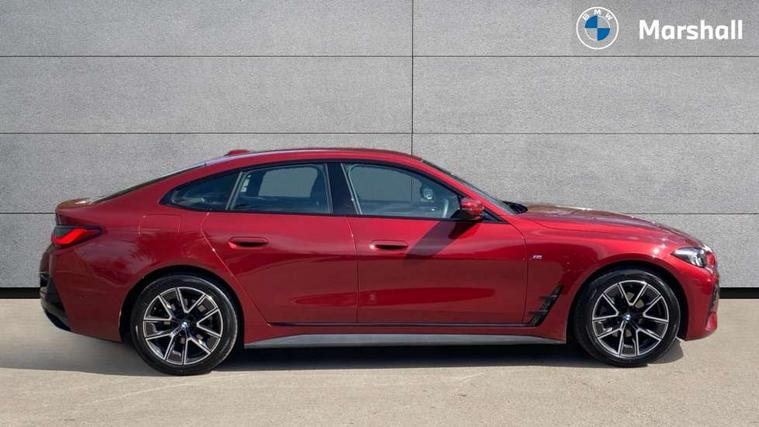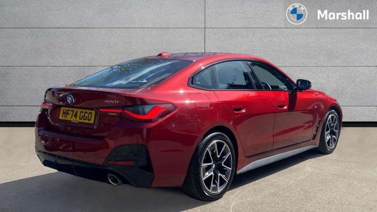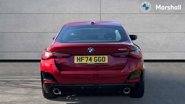 Active guard plus, Auto start-stop, Bluetooth hands free facility with USB audio interface with audio streaming, BMW ConnectedDrive online services, BMW Live Cockpit Plus Nav/12.3" instrument display/14.9" display/Intelligent Voice Assist/iDrive touch/access 3rd party app/2USB/4G//bluetooth//Wi-Fi, BMW service history, BMW Teleservices, Brake pad wear indicator in front and rear, Check Control warning system for monitoring of lights and door/luggage compartment open warning, Condition based service, Electric bootlid, Electric power steering with Servotronic steering optimised at all speed ranges, Fatigue detection system, Gearshift time display in manual mode, iDrive controller on centre console, Instrument cluster with speedometer with mph readout, tachometer, fuel gauge and oil temperature gauge, Integrated owners handbook, Language version English, Oil sensor for level and grade, warning by check control system, On board computer - average speed, fuel consumption, outside temp display with acoustic warning, clock/date, service interval, odometer/trip meter, Optimum shift indicator, Shifting point display, Tailgate, Variable sport steering, 8 speed automatic steptronic transmission with gearshift paddles, Double joint spring strut front axle, Double VANOS, Drive performance control - ECO PRO, comfort and sport modes, High precision injection, Low centre of gravity, Petrol Particulate Filter, Stroke dependent dampers, VALVETRONIC engine management, 2x USB Type C ports in front centre console for charging and data transfer, 2x USB Type C ports in rear centre console for charging, DAB tuner, Electronic service booklet, Acoustic glazing, Automatic headlight beam throw control with load dependent regulating reaction, dynamic compensation of braking dive and acceleration squat, Automatic windscreen wipers and automatic headlight, Automatically dimming electrochromatic rear view mirror, BMW emblem on engine compartment lid and tailgate, BMW kidney grille with mesh grille front side of the nuggets in matt aluminium and frame in chrome high gloss, Body colour fuel filler flap, Body colour roof fin, Brushed aluminium inserts in the front door sill finishers with BMW designation, Door sill strips, Dynamic brake lights, Electric windows - front and rear, with open/close fingertip control, anti trap facility and comfort closing function all round, Exterior mirrors - electrically folding with anti-dazzle, Fading support, Follow me home headlights, Front and rear bumper system, Front apron plastic in body colour, Green tinted heat protection glazing, High gloss shadow line exterior trim, Illuminated bow type door handles in body colour drivers side with door lock, Interior rear view electrochromatic mirror with automatic anti dazzle function, LED 3rd brake light, LED daytime running lights, LED front fog lights, LED front indicators, LED Headlights, Licence plate panel integrated into front bumper and tailgate, Lightweight engineering, M sport rear boot spoiler with body colour gurney, One piece front bumper cover including towing eye cover in body colour, Preparation for high beam assistant, Rear side wing doors, Rear wiper, Reversing light, Side frame decorative moulding black matt, Two part LED tailights in L-shape with components in smoked glass, brake light, LED turn indicator and rear fog light, Visible exhaust tailpipe finisher, Visible VIN plate, Welcome lights in interior and door handle area, Widened track and increased camber values for max transverse dynamics, agility and steering precision, Window recess cover black high gloss, Windscreen wipers with integrated heated washing jets, 12V power socket in front centre console, 2 front cupholder in centre console with clamping elements and matt black inlay, 3 rear headrests, 3 seat bench in 2nd row, 3 spoke M sport leather multifunction steering wheel, 3 zone automatic air conditioning, 4 pieces lashing eyelets in luggage compartment, 40:20:40 split folding rear seat and rear centre armrest with two cupholders, Anthracite headlining, Armrest integrated in front and rear door trim + front centre console armrest, Battery in luggage compartment, BMW ID, Extended storage in Combination with sport seat net pocket on rear backrest, Four grab handles integrated in roof lining, Front and rear door pockets, Front and rear footwell lights, Front and rear reading lights, Front sport seats, Heated driver and front passenger seats, Height adjustable front headrests, Height adjustable mechanically and infinitely variable steering column, Illuminated armrest storage compartment, Illuminated glove compartment with separate small compartment, Luggage compartment lighting, Luggage compartment seprating net on side trim left/right, Bag hook, 12V socket, TTH button, USB C charging in rear, Folding compartment on driver side, Make-up mirror lights, Single front passenger seat, Storage compartment in rear centre console, Sunvisors with illuminated vanity mirrors and ticket pocket, Toolkit located in luggage compartment, Velour front floor mats, Ambient lighting pack - 4 Series, Connected professional package - 4 Series, M sport exterior styling pack - 4 Series, Park assist pack - 4 Series, 3 point seatbelts on all seats, Battery safety cut-off, BMW emergency call, Brake energy regeneration, Braking pre-tensioning, Child proof locking system in rear door, Child seat ISOFIX attachment for the two outer rear seats, Coasting in idle in ECO PRO mode, Cornering brake control (CBC), Crash sensor activating of airbags, Unlocking doors, hazard warning lights, fuel cut off, interior lighting+activation of safety battery terminal clamp, Driver and front passenger side airbags, integrated in the door side seat backrest bolsters for all seat variants, Driver/Front Passenger airbags, Dry braking, Dynamic brake control, Dynamic stability control + (DSC+) - Anti-lock Braking System (ABS) with brake assist and cornering brake control + Automatic Stability Control (ASC), Dynamic Tr