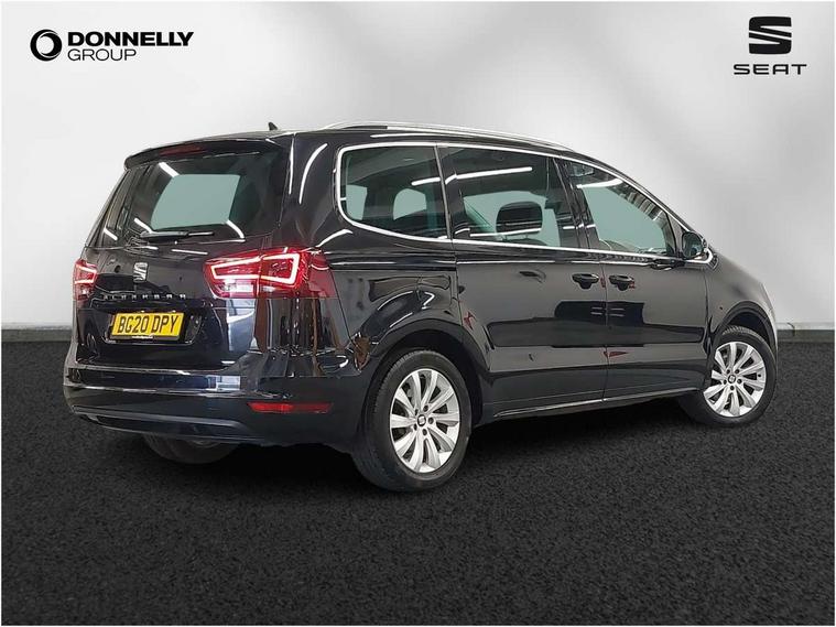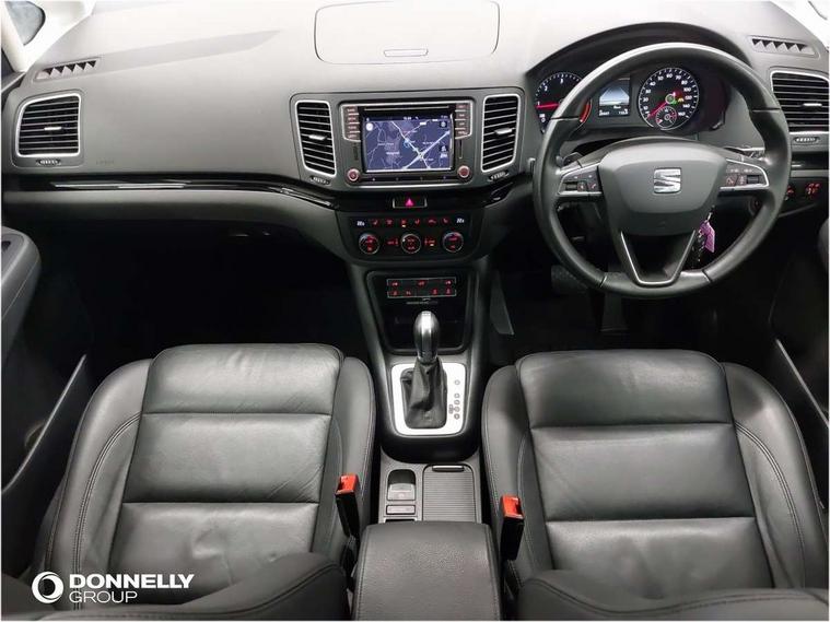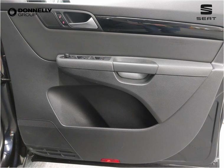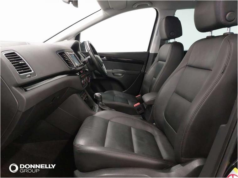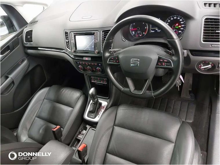 Cruise control, Electric speed sensitive power steering, Front and rear parking sensors, Front assist with front grille, Low fuel warning light, Multi function display, Multifunction camera with lane assist, Outside temperature gauge, Stop/start system, Trip computer, Voice control system, Comfort suspension, Diesel particulate filter, 6.5" touchscreen, 8 speakers, Bluetooth audio streaming, MDI with USB/iPod connection cables, MP3 compatible radio/single CD player, Steering wheel mounted audio/phone controls, Auto dimming rear view mirror, Automatic headlights, Automatic rain sensing wipers, Body colour bumpers, Body colour door handles, Body colour door mirrors with integral indicators, Chrome roof rails, Chrome side window trim, Chromed centre radiator grille surround, Coming/leaving home lighting function, Cornering front fog lights, Dark tinted rear glass, Electric headlight adjustment, Electric tailgate and sliding rear side doors, Electrically adjustable and heated door mirrors, Front and rear electric windows, Heated washer nozzles, High beam assistant, LED rear number plate lights, LED tail lights, Rear wiper, Reverse activated kerb-view adjustment on passenger's door mirror, Twin halogen headlamps, 12 way electric front seats, 2 cupholders in front centre console, 2 cupholders in left rear storage panel, 230V AC inverter, 3 spoke leather steering wheel, 3 x 12V power sockets, 3 zone climate control, 4 Lashing eyes in boot, Adjustable front armrest with storage compartment, Adjustable head restraints, Comfort front sports seats, Dashboard storage with cover, Easy entry seats, Folding rear seats, Front courtesy light with time delay, Front map reading lights, Front seat back fold out tables with cupholders, Front seats folding into table, Front/rear door stowage bins, Front/rear floor mats, Heated front seats, Height/reach adjust steering wheel, Illuminated boot, Integrated sunblind for rear side windows, Isofix child seat preparation, Leather gear knob, Leather upholstery, LED interior illumination, Lockable/illuminated air conditioned glovebox, Multi function steering wheel, Overhead console with sunglasses holder, Rear air conditioning with separate controls, Reclining 2nd row seats, Removable load compartment cover, Steering column mounted gear shift paddles, Sunvisors with illuminated vanity mirrors, Under floor storage in 2nd row, Seat navigation pack with rear view camera - Alhambra, 3 point seatbelts on all seats, ABS, Auto hold function, Automatic post collision braking, Driver and passenger airbags, Drivers knee airbag, Electrically operated child locks on rear doors, Electronic parking brake, Electronic stability control, Emergency brake assist, Energy recovery system, Front and rear curtain airbags, Front and rear seatbelt reminder, Front side airbags, Height adjustable front seatbelts with pre-tensioners and load limiters, Hill hold control, Passenger airbag deactivate switch, Tiredness recognition system, Tyre pressure monitoring system, Electronic engine immobiliser, Locking wheel bolts, Remote central locking + deadlocks, Volumetric alarm with back up horn, Black door & dashboard decorative inserts, Chrome effect dashboard facia, 17" Dynamic alloy wheels, Self sealing tyres,