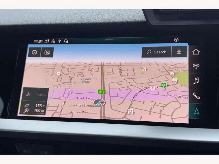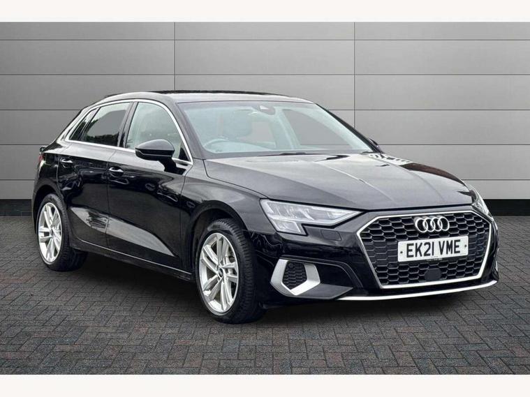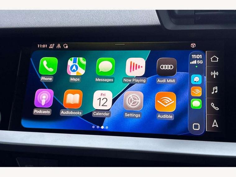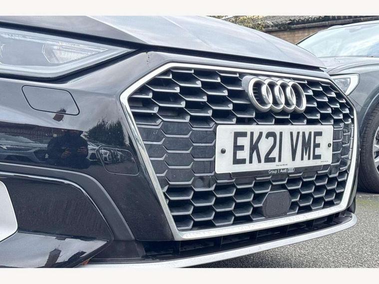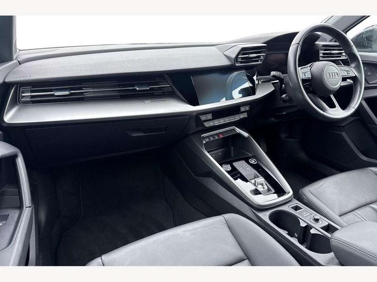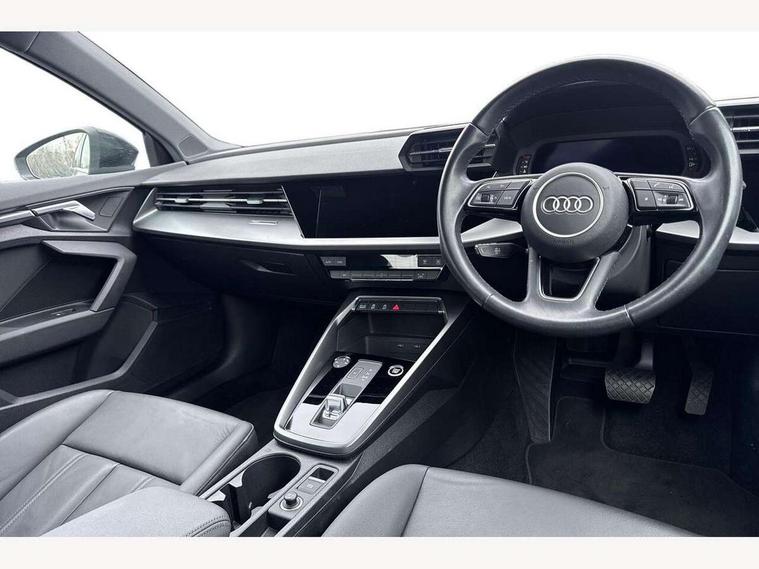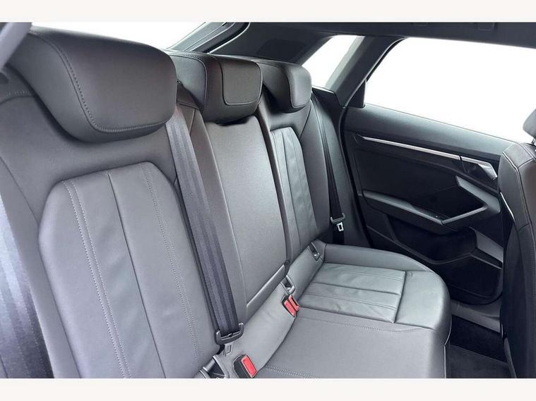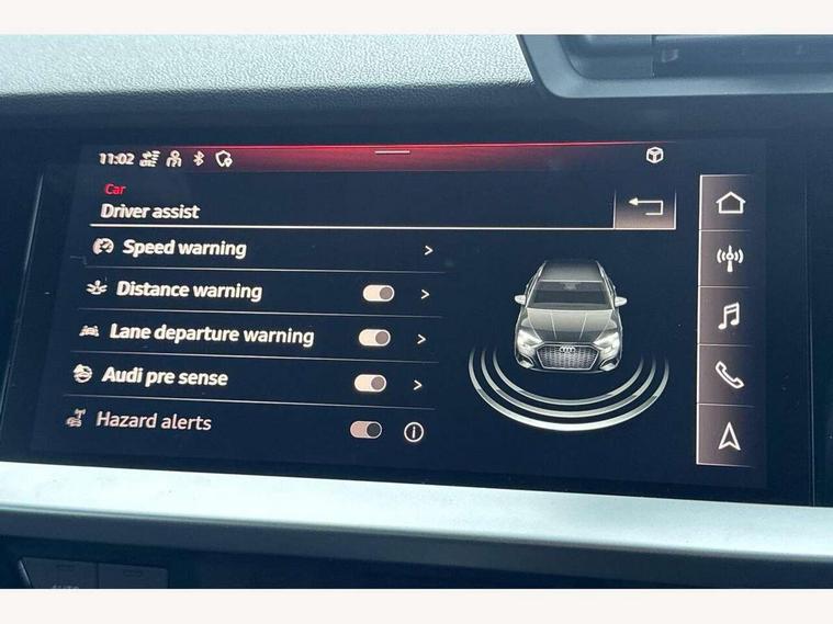 Audi connect emergency call and service, Audi drive select (Auto, Comfort, Dynamic, Efficiency and Individual), Audi smartphone interface, Audi Virtual Cockpit - 10.25" digital and colour instrument cluster, Automatic start/stop system with recuperation, Bluetooth interface, Collision avoidance assistant, Electromechanical power speed sensitive steering, Lane departure warning system, MMI Navigation Plus with high resolution 10.1" colour touch screen display, Service indicator, Trip computer, Voice control system with natural language interaction, Standard suspension, 2xUSB-C connection with data and charging functions, 6 passive loudspeakers, DAB Digital radio, Acoustic glass windscreen, Aluminium window trim, Auto dimming frameless rear view mirror, Body colour exterior mirrors, Body colour roof spoiler, Electrically adjustable/heated/folding/dimming door mirrors with kerb view includes integrated LED indications + kerb view function for passenger side, Front electric windows, LED daytime running lights, LED headlights and halogen rear lights, Light and rain sensors, Rear electric windows, Rear window, rear door windows and rear side windows in clear glass, Rear wiper, 12V socket and storage compartment in front centre console, 40/20/40 split folding rear seat bench with cupholder, Dual zone electronic climate control, Front and rear centre armrest, Front and rear headrests, Front door sill trims with aluminium inlay, Front/rear floor mats, Height and reach adjustable steering wheel, Interior lighting - Front and rear roof module including reading lights, glove compartment light and right hand side, Luggage compartment floor covering, Manual boot compartment lid, Manually adjustable front seats, Seat side bolsters, Steel grey cloth headlining, Twin leather upholstery, Aluminium interior elements pack - A3 Sportback, Sport styling pack - A3 Sportback, 3x3 point rear seat belts, Driver and front passenger airbag with passenger airbag deactivation, Electronic Stabilisation Control (ESC) including ABS, ASR and EDL, First aid kit with warning triangle and 2 safety vests, Front side airbags with head airbags and interaction airbag, Hill hold assist, Pre-sense front with pedestrian and cyclist detection, Seatbelt monitoring, Tyre pressure loss indicator, Anti theft alarm, Anti-theft wheel bolts, Electronically operated child lock, Immobiliser, Remote control central locking, Inlays with silk effect paint in platinum grey,