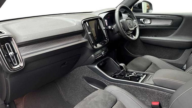 12.3" Progressive Driver Display, 9" centre console portrait touch screen, Adjustable steering wheel force, Android auto (Wired), Apple carplay (wired), Bluetooth handsfree system, Cruise control, Driver alert control, E-call, Front park assist, Google automotive services - Enabled entertainment apps, navigation with google maps, voice recognition with google assistant, Hands free power tailgate, Intelligent speed assistance, Lane keeping aid, Oncoming Lane Mitigation, Rear park assist, Speed sensitive steering, Volvo cars services with app - Driving journal, emergency and breakdown call, engine remote start, remote door locking/unlocking and vehicle dashboard, Wireless/Inductive Mobile Phone Charging, Automatic transmission with start/stop and manual change functions, Dynamic chassis, DAB Digital radio, Steering wheel mounted remote controls, Adaptive brake lights with high level LED brake lights, Auto dimming interior mirror, Automatic headlamp levelling, Automatic LED Headlights + Active high beam incorporating daytime running lights, Front aluminium tread plates, Front and rear electric windows, High gloss black front and rear skid plate, High gloss black front bumper deco, High gloss black mesh front grille with high gloss black surround, High gloss black window trim, Home safe and approach lighting, Integrated roof rails in high gloss black, LED front fog lights, Puddle lights, Rain sensor with automatic windscreen wiper activation, Rear side wing doors, Rear wiper, Roof antenna, Roof spoiler, Visible VIN plate, 12V socket in front tunnel console and cargo compartment, 2 zone electronic climate control with clear zone air quality system and pollen filter, 3 seat bench in 2nd row, 3 Spoke tailored steering wheel with chrome trim, 60/40 versatile split folding rear seat, Centre console cupholders and storage, Flexible load floor and grocery bag holder, Floor mats, Front cabin courtesy lights, Front door pocket, front cupholder, ambient front door, rear reading, rear courtesy, instrument panel and tailgate lighting, Front footwell illumination, Front headrests, Front reading lights, Front seat cushion extensions, Front side step illumination (under door), Glovebox bag hook, Heated front seats, Height adjustable passenger seat, Height/reach adjustable steering column, High gloss centre tunnel deco, Illuminated glovebox, Illuminated luggage compartment, Illuminated vanity mirrors + ticket holder, Integrated waste bin, Isofix attachments on rear seats, Load cover, Load protection net, Multi directional lumbar support for driver and passenger seat, Power driver seat with memory + exterior mirrors memory, Rear armrest with cupholders, Rear headrests, Single front passenger seat, Underfloor cargo storage, Climate pack without heated front seats - XC40, 3x3 point rear seatbelts, City safety with steering support with Pedestrian + cyclist + front collision warning with full auto brake and rear auto brake, Driver and passenger airbags, Drivers knee airbag, Electronic parking brake with auto hold, First aid kit, Front and outer rear seatbelt reminder and pretensioners, Front seats SIPS airbags, Hill descent control, Hill start assist, Inflatable curtain, Passenger airbag cut-off device, Power child locks on rear doors, Road sign information display, Run off Road Protection, SIPS (Side Impact Protection System), Slippery road and hazard light alert, Stability and Traction Control with Spin control, Engine Drag Control and Corner Traction Control, Tyre pressure monitoring system, Vehicle deceleration control with Anti-lock Brake System, Electronic Brake Distribution and Emergency Brake Assist, Warning triangle, WHIPS whiplash protection system - front, 2 x Key integrated remote control central locking including with deadlocking system and auto open/close windows, Anti-theft alarm including immobiliser/volume sensor + level sensor, Keyless drive includes keyless entry and keyless start, Locking wheel nuts,
