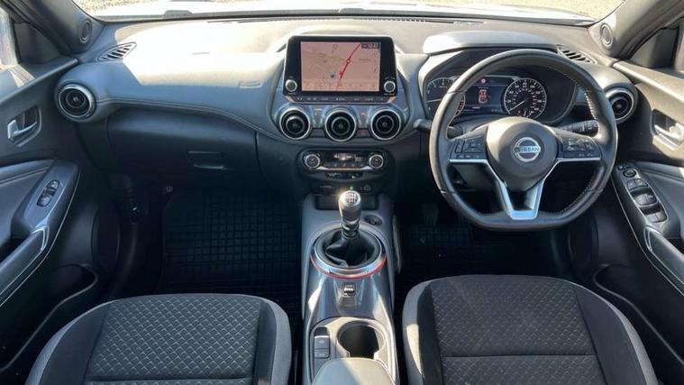 7" full colour TFT screen combimeter, 8" infotainment colour display with touch screen, Apple CarPlay and Google Android auto, Drive modes select (Eco, normal and sport), Emergency and breakdown call, Front parking sensor, Idle start/stop system, Intelligent lane intervention, Lane departure warning system, Nissan connect nav with TomTom traffic, Nissan connect services and Wifi connection, Outside temperature sensor, Power Steering, Rear parking sensor, Traffic sign recognition, Trip computer, Gasoline particulate filter, 6 speakers, Bluetooth system, USB, Aux-in and 12V socket, DAB Digital radio, Rear console USB port, Auto dimming interior rear view mirror, Automatic hazard signal with emergency stop signal, Body colour bumpers, Body colour door handles, Electrically adjustable door mirrors with integrated indicators, Follow me home headlights, Front and rear electric window with one touch driver and passenger window, Heated and auto folding door mirrors, High beam assist, LED daytime running lights, LED front fog lights, LED headlamps, LED rear fog lamp, LED rear lamps, Rain sensor windscreen wipers, Rear privacy glass, Rear spoiler, Rear wiper, Three blink turn signal, 3 height adjustable rear headrests, 60/40 split folding rear seat, Automatic climate control, Card holder on driver sunvisor, Cloth upholstery, Door ambient lighting, Driver and passenger sliding and reclining seats, Driver seat back pocket, Driver side rear coat hanger, Driver/passenger sunvisors and illuminated vanity mirrors, Front and rear cabin lights, Front armrest, Front door pockets with bottle holders, Front head restraints, Front/rear passenger grab handles, Gear console ambient circle lighting, Grey synthetic leather kneepad, Height adjustable driver's seat, Internal chrome door handles, Leather gearshift knob, Leather steering wheel, Luggage board, Luggage space lighting, Monoform sporty seats, Multifunction steering wheel, Passenger seat back pocket, Rear door bottle holders, Telescopic steering wheel adjustment, Two cupholders in front centre console, Two rear isofix child seat anchorage points with top tether, Voice recognition switch on steering wheel, Welcome light and console tray ambient lighting, ABS with EBD and brake assist, Active ride control, Active Trace Control, Driver and passenger airbags, Driver and passenger side airbags, Electric handbrake with auto hold function, Electronic Stability Programme (ESP), Front and rear curtain airbags, Height adjustable seatbelts, Hill start assist, Intelligent emergency braking with pedestrian and cyclist recognition, Seatbelt reminder for driver/front passenger and rear seats, Single tone horn, Three 3 point rear seatbelts, Traction control, Tyre pressure monitoring system, VDC Dynamic Vehicle Control, Ventilated rear brake discs, Alarm, Immobiliser, Intelligent Key with push button starter, Remote central locking,