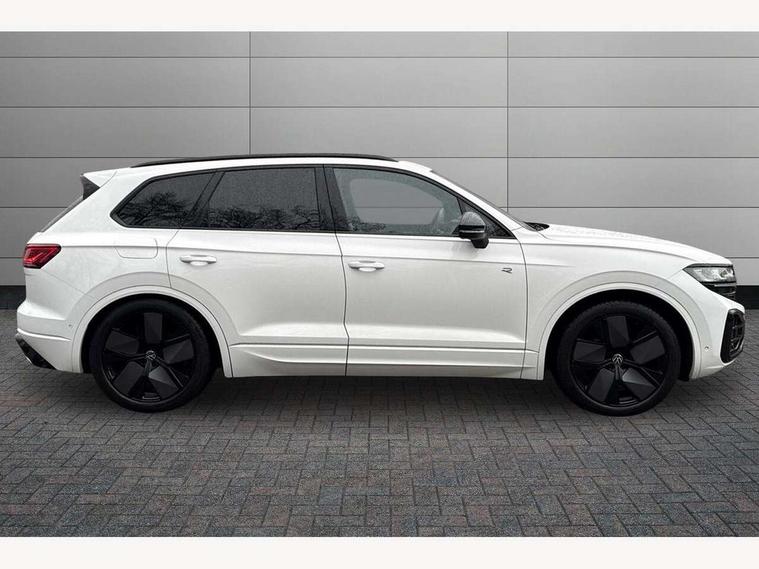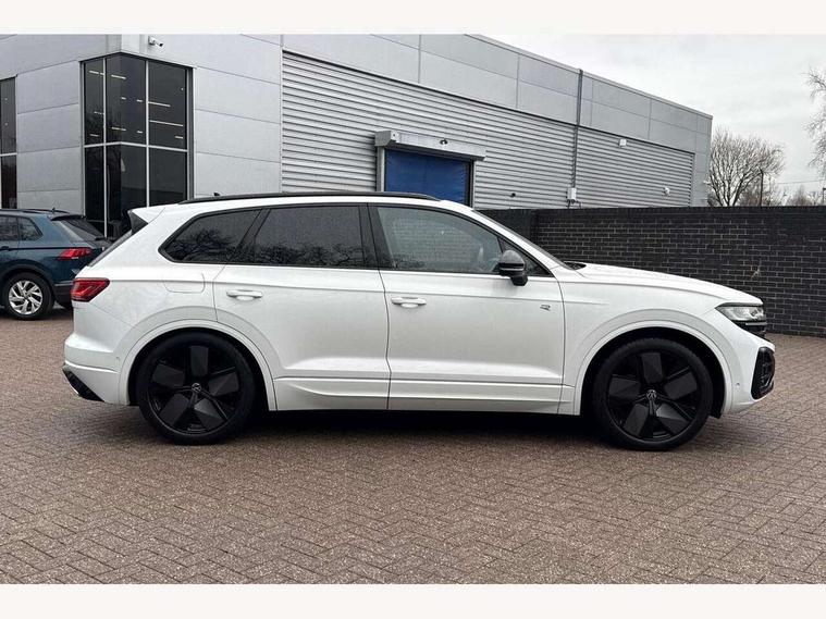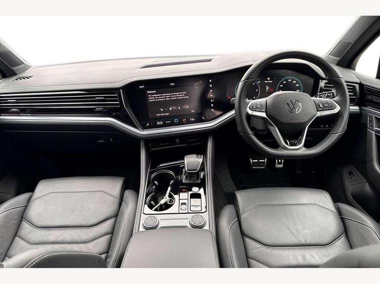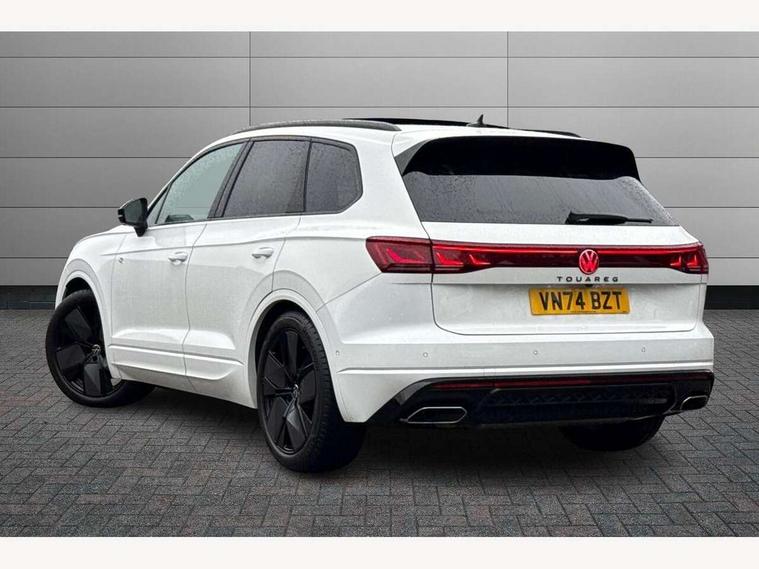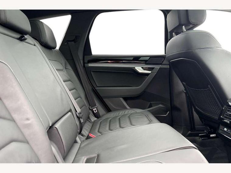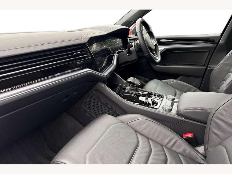 15" Screen Top infotainment system Premium (MIB3), Adaptive cruise control, Advanced driver attention and drowsiness monitor, Driver profile selection, Dynamic road sign display, E-Sim card for online connectivity, eCall emergency system, Innovision cockpit, Intelligent park assist, Mobile phone interface with inductive charging, Multi-colour Active Info display, Park Assist - Sensor controlled steering aid to assist parallel or bay parking, PAS, Warning signal and warning light for front and rear seatbelts not fastened, Wireless app connect, Adaptive chassis control, DAB Digital radio, Diversity antenna for AM/ FM reception, We Connect and We Connect Plus functionality, Automatic coming/leaving home lighting function, Automatic headlights, Black door mirrors, Black style comfort bumpers, Dynamic headlight range control with dynamic cornering light, Electric front tilt/slide panoramic sunroof and fixed rear sunroof, Electrically power adjustable, heated, folding, auto dimming, front passenger exterior door mirror lowering function, External USB type C socket and charging sockets, Gloss black roof rails, HD LED Matrix beam plus digital headlight projection with variable light distribution, Headlight washers, Highway light, LED 3rd brake light, LED daytime running lights, LED rear combination lamp with variable lighting functions and special styling, Poor weather light, Rain sensor, Rear exhaust tailpipe, Rear fog light with back up light on both sides, Rear light bar and illuminated logo, Rear side wing doors, Rear wiper, Stainless steel door sill protection, 12V socket in centre console, 3 rear headrests, 3 seat bench in 2nd row, 4 zone climate control, Airbag label on sun visor and B-pillar, Brushed stainless steel pedals, Double sun visors with illuminated vanity mirrors, Front + rear carpet mats, Front centre armrest, Leather wrapped multifunction sports steering wheel, heated, with touch control and shift paddles, Mechanical rear seat release, Power adjustable lumbar support in front, Power seats in front, right side with memory features and seat cushion depth adjustment, Rear seat backrest and split folding with center armrest, Single front passenger seat, Memory pack plus - Touareg, 3 point seatbelts, outer rear with ECE lable, ABS, Child locks on rear doors, Curtain airbags, Driver and front passenger safety-optimised head restraints, Driver/Front Passenger airbags, Extended pedestrian protection measures, Front assist, Front seat side impact airbags, Generative braking with start and stop system, Height adjustable 3 point front seatbelts with pre tensioners, Passenger airbag deactivate switch, Three 3 point rear seatbelts, Two tone horn, Tyre pressure loss indicator, Warning triangle and first aid kit, Alarm system with interior protection, Easy open and close sensor controlled luggage compartment opening and closing with remote unlocking, Keyless Access Keyless locking and starting system with SAFELOCK, Aluminium decorative inserts, Black decorative trims, Gloss black decorative inserts in centre console, Tool kit,
