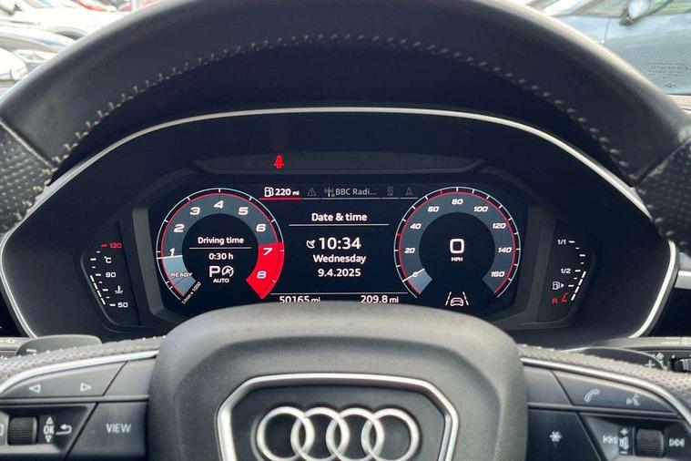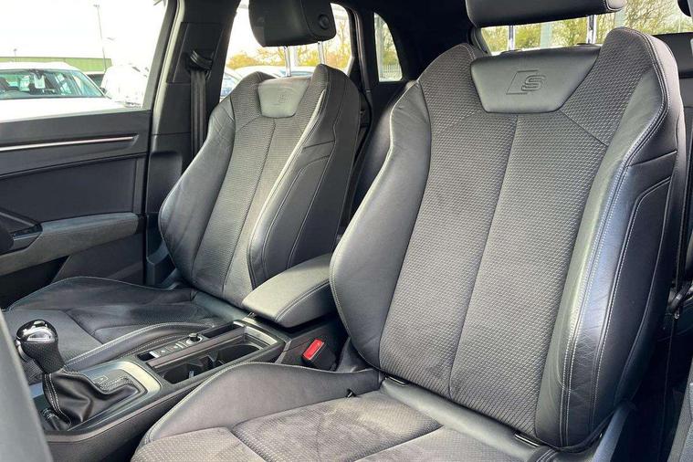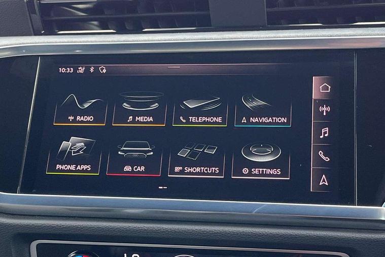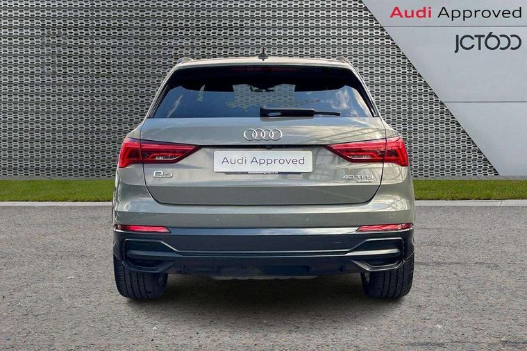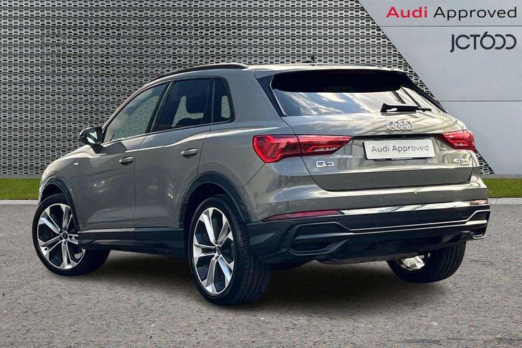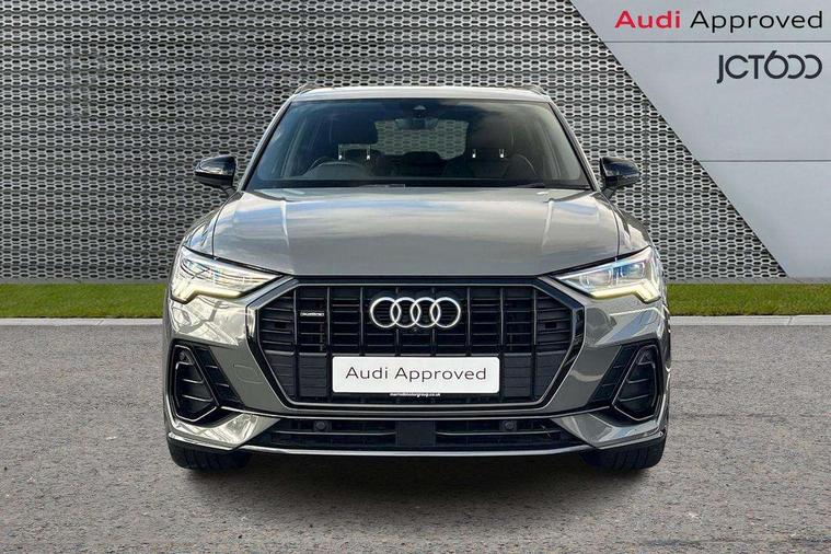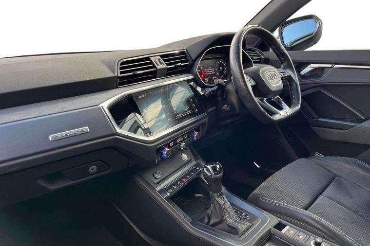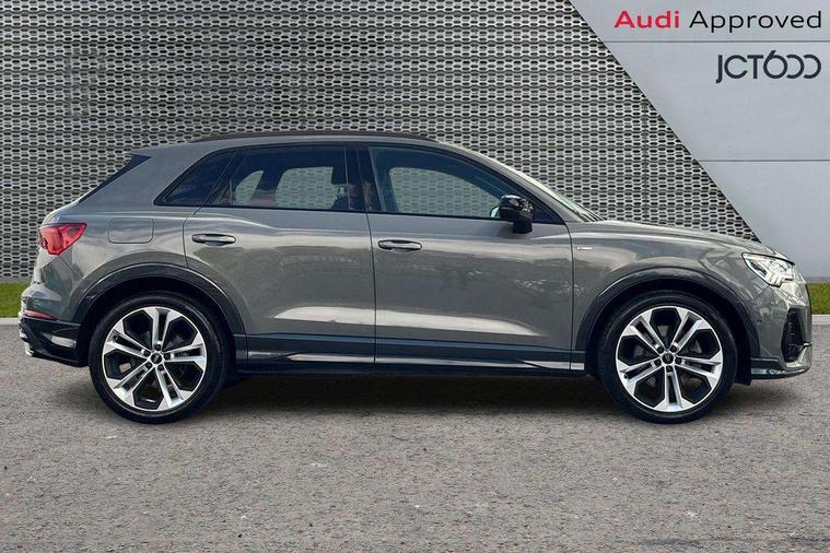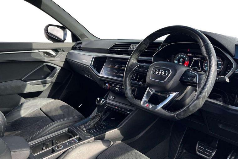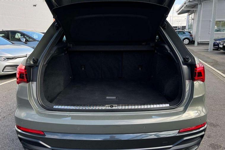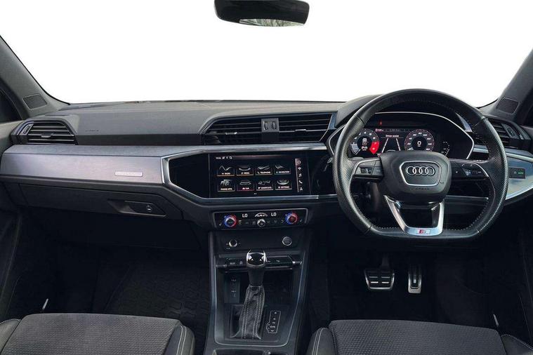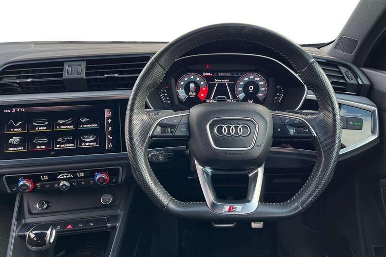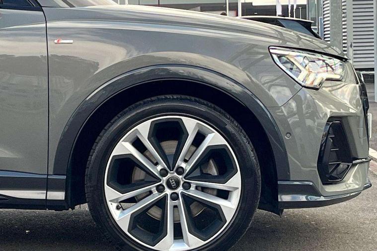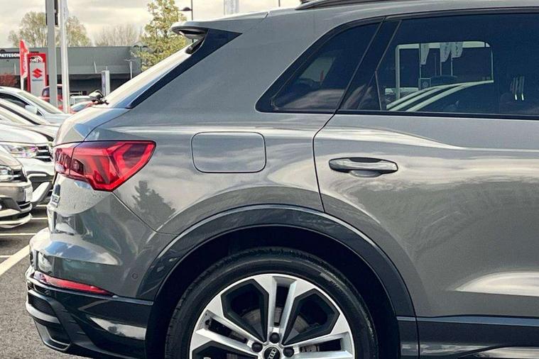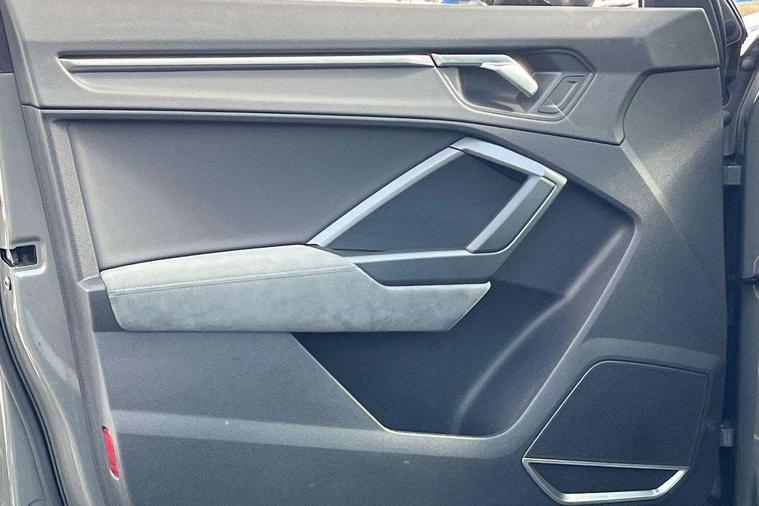 360 degree parking camera, Audi connect safety and service (e-call), Audi drive select, Audi lane departure warning, Audi parking system plus with front and rear sensors, Audi phone box with wireless charging, Audi side assist, Audi smartphone interface, Audi virtual cockpit plus, Bluetooth interface, MMI navigation plus with MMI touch, Power opening/closing tailgate, Progressive steering, Rear cross traffic alert, Service interval indicator, Stop/start system, Voice control system, Adaptive suspension with damping control, Bang & Olufsen 3D Premium Sound System, DAB digital radio module, Acoustic windscreen, Aluminium roof rails, Auto dimming and folding door mirrors, Auto dimming rear view mirror, Black roof rails, Contrast bumpers in Manhattan grey paint finish, Diffuser in matt Platinum grey, Electrically adjustable and heated door mirrors with integrated LED side indicators, Front and rear electric windows, Front fog lights, Front side air inlets in matt platinum grey, Front spoiler blade in matt platinum grey, Front spoiler in matt selenite silver, Grille vertical bars in aluminium silver/Matt, Headlight washers, High gloss black finish B and C pillars, Matrix LED headlights with LED rear lights and dynamic front and rear indicator, Panoramic opening glass sunroof, Privacy glass, Rain and light sensors, Rear diffuser strip in selenite silver, S line bumpers in contrasting Manhattan grey, 12V socket in rear centre console, 3 spoke flat bottomed high multi-function leather sport steering wheel with gearshift paddles, 4 way electric lumbar support for driver and front passenger, 40:20:40 split folding rear bench seat, Adjustable rear seat bench/backrest with centre armrest and cupholder, Aluminium door sill trims, Black cloth headlining, Dual zone climate control, Electrically adjustable front seats, Front and rear black floor mats with contrast stitching in rock grey, Front and rear headrests, Front centre armrest with storage compartment and angle adjustment, Heated front seats, ISOFIX child seat mounting and Top Tether with front passenger airbag deactivation, Perforated leather gearknob, Stainless steel luggage compartment sill finisher, Stainless steel pedals, Black styling pack - Q3, Driver Assistance Pack - Q3, Multi coloured extended ambient interior lighting pack - Q3, Non smoking pack - Q3, 3x3 point rear seatbelts, 6 airbags - Driver, front passenger, curtain and side windows, Audi pre-sense front with pedestrain and cyclist recognition, Electronic stabilisation control including ABS, ASR and EDL, Hill hold assist, Pre sense basic, Seatbelt monitoring, Tyre pressure warning, Warning triangle and first aid kit, Advanced key, Anti theft alarm, Anti theft wheel bolts, Remote central locking, Dark matt brushed aluminium inlay, MMI touch colour display in gloss black with aluminium surround,
