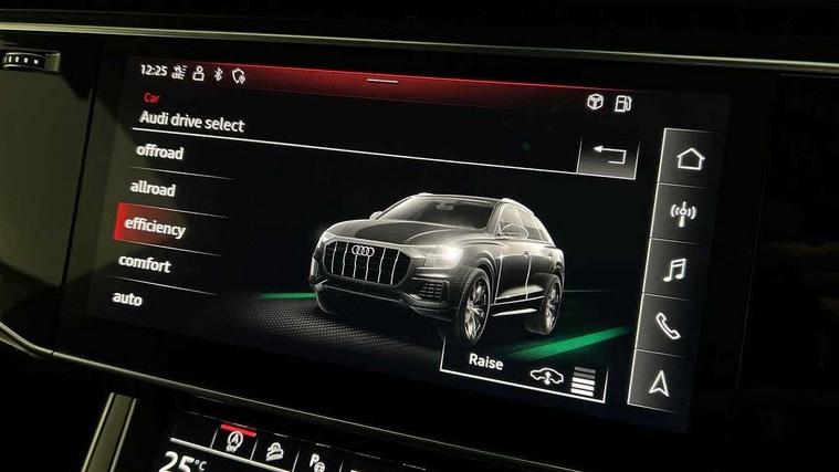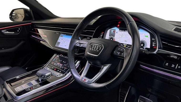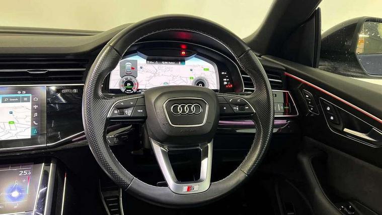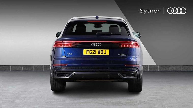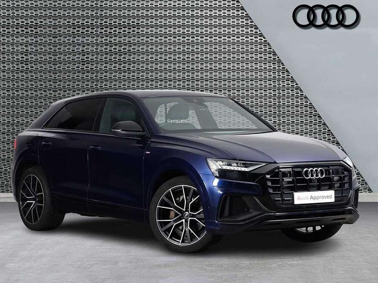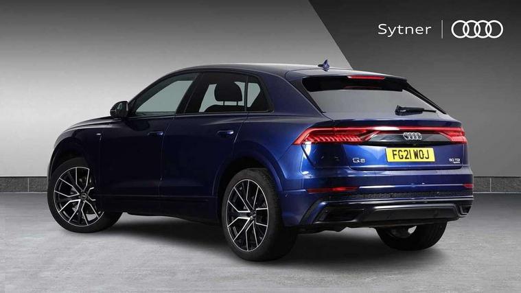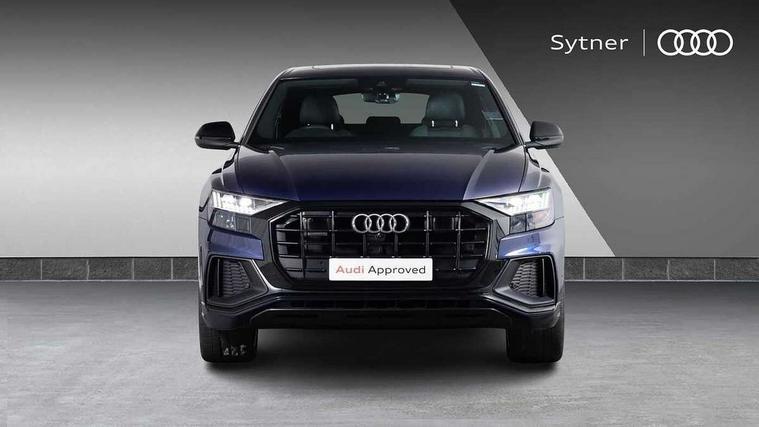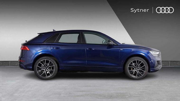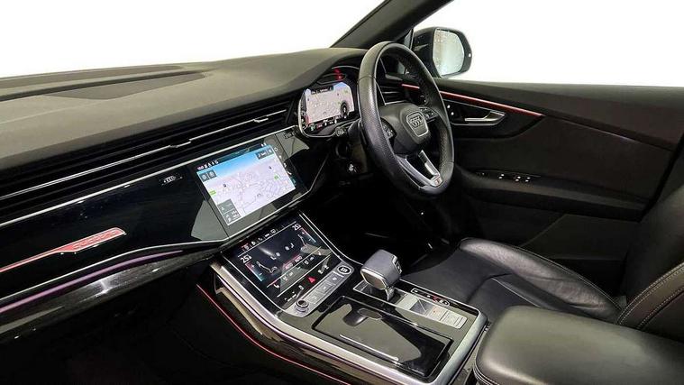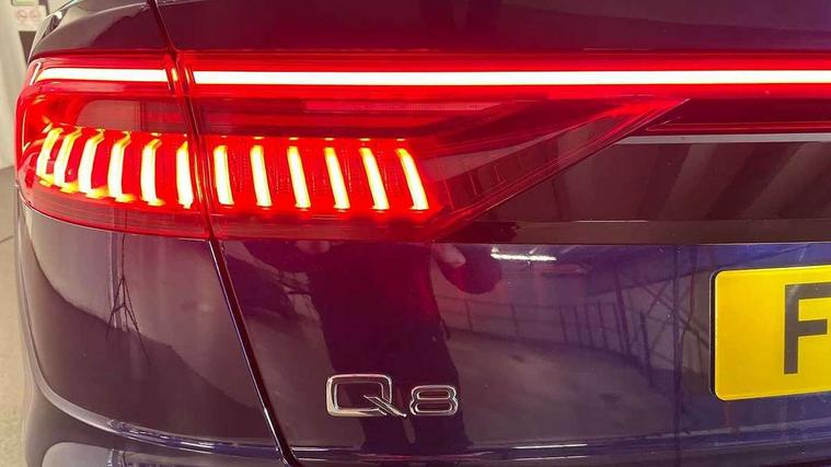 10.1" and 8.6" Dual colour touchscreens, Audi connect safety and service (e-call), Audi drive select, Audi parking system plus with front and rear sensors, Audi phone box with wireless charging, Audi smartphone interface with wireless Apple CarPlay, Audi virtual cockpit - 12.3" high resolution LCD display with fully customisable instrument cluster, Automatic start/stop system, Electro-mechanical PAS, Low washer fluid indicator, MMI - Multi Media Interface control system, MMI navigation plus with MMI touch, Natural voice recognition, On board computer, Operating buttons in black, glass look with haptic feedback, Power operated tailgate, Rear view camera, Service interval indicator, 48V Mild hybrid technology, Adaptive sport air suspension, Diesel particulate filter, Quattro all wheel drive with self locking centre differential, Audi music interface with 2 USB ports with charge and data functions, Audi sound system with 6 channel amplifier, 180 watt amplifying capacity and 10 loudspeakers including subwoofer, Aux-in socket, DAB Digital radio, Acoustic windscreen, Audi HD Matrix LED headlights with dynamic front and rear indicators, Auto dimming frameless rear view mirror, Coming/leaving home lighting function, Electric front+rear windows, Electrically adjustable/heated/folding/dimming door mirrors with kerb view includes integrated LED indications + kerb view function for passenger side, Headlight washers, Heat insulating glass in windshield, LED signature daytime running lights, Platinum grey front spoiler lip and diffuser insert with honeycomb grille in black, Privacy glass - dark tinted rear and rear side windows from B-pillar backwards, Rain and light sensors, Rear wiper, 4 zone deluxe automatic climate control, 4-way lumbar support for front seats, 40:20:40 split folding rear bench seat, Black cloth headlining, Comfort front centre armrest, Driver seat memory function, Electrically adjustable front seats, Front head restraints, Front/rear floor mats, Heated front seats, ISOFIX child seat mounting for front passenger seat and 2 outer rear seats with top tether child seat mounting for all 3 rear seats, LED interior ambient lighting, Luggage compartment sill protection in stainless steel, Rear centre armrest with 2 cupholders, Rear headrests, Rear seat bench plus, Stainless steel pedals, Sunvisors with illuminated vanity mirrors, Titanium Black Styling Pack - Q8, 3 point seatbelts on all seats, Audi pre sense front, Driver and front passenger, front side and curtain airbags, Electromechanical parking brake, Electronic Stability Control (ESC) including ABS, ASR and EDL, Front passenger airbag deactivation, Hill descent control, Hill hold assist, Predictive pedestrian protection, Seatbelt monitoring, Traction control, Tyre pressure loss indicator, Warning triangle and first aid kit, Anti theft alarm with tow away protection, Anti-theft wheel bolts and wheel loosening detection, Immobiliser, Keyless go with remote central locking, Polished oak trim with grey finish inlay, Tool kit, Tyre repair kit,