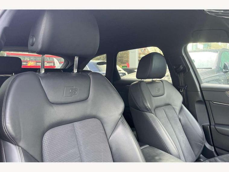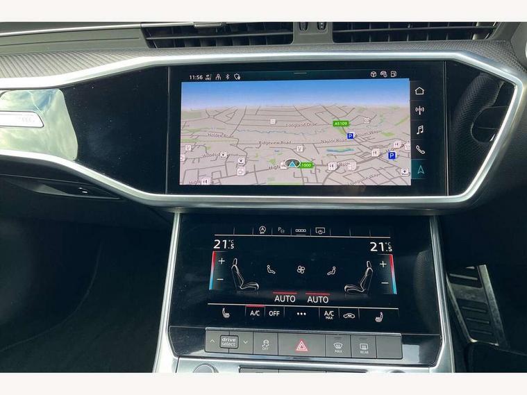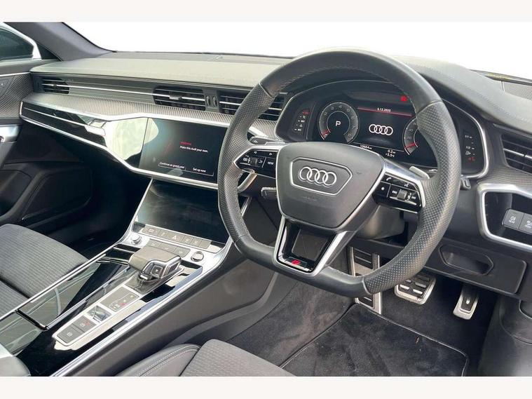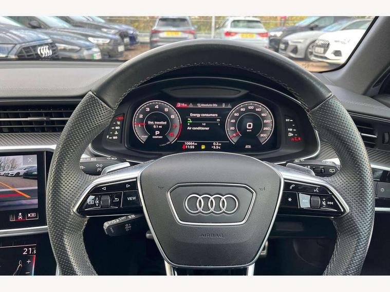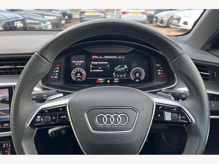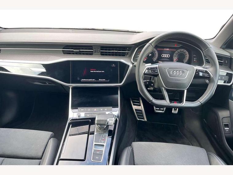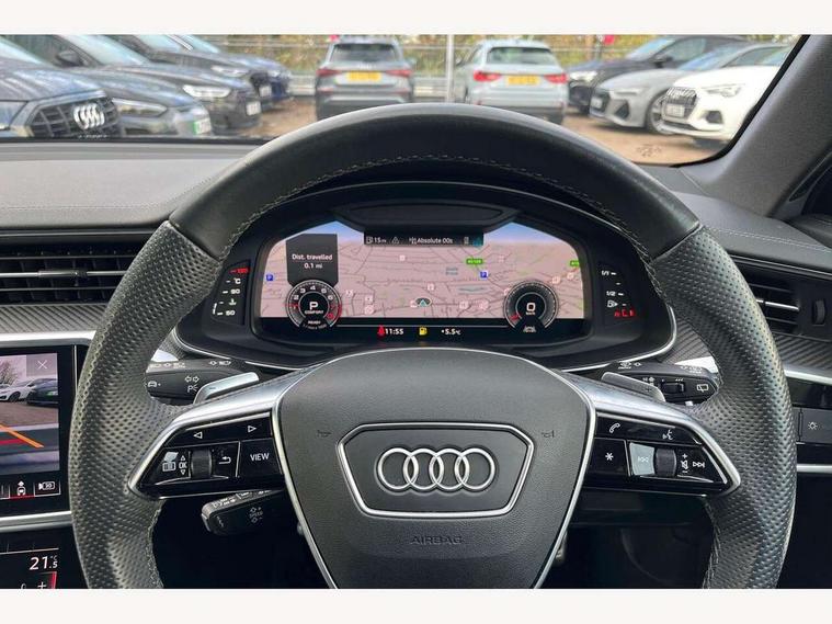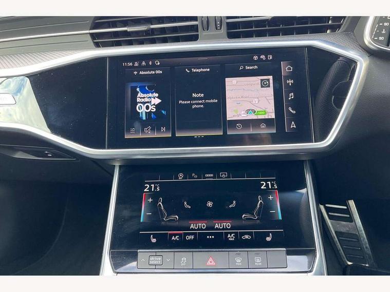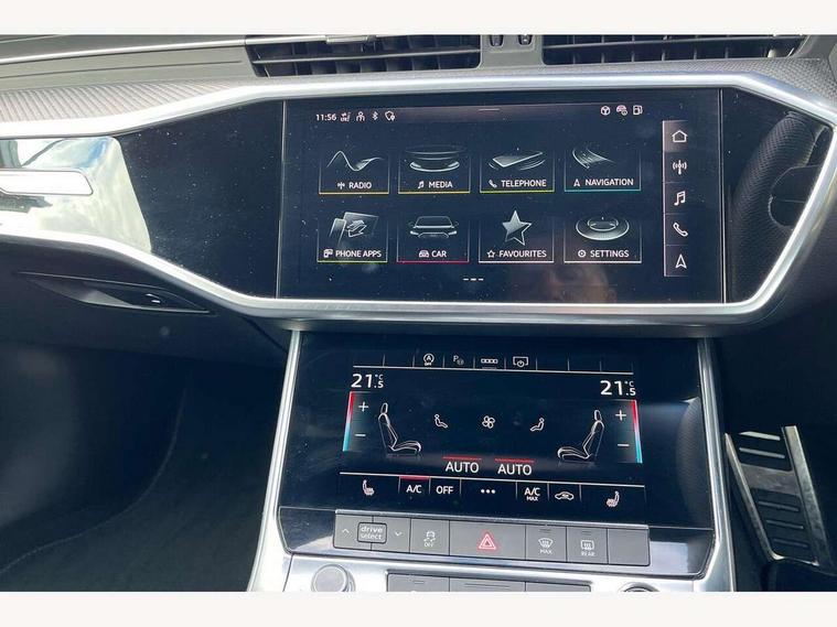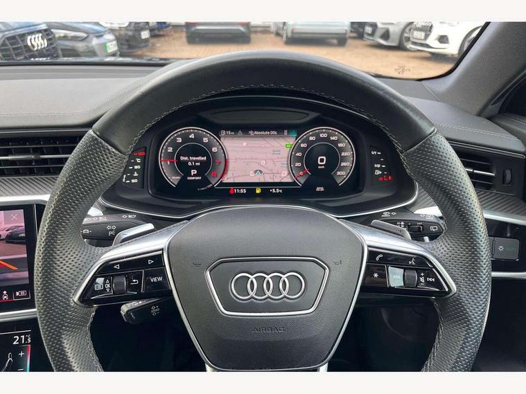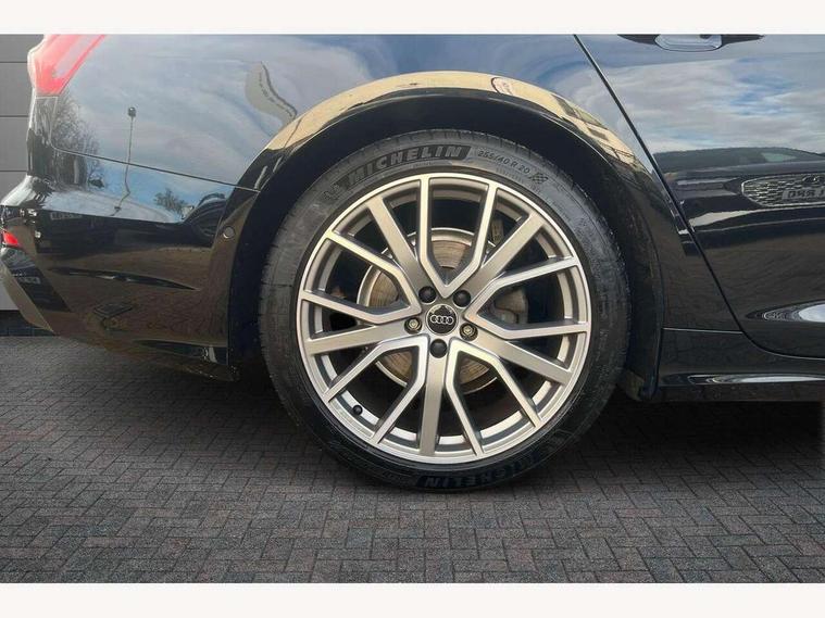 7" high resolution colour driver information display system, Audi connect safety and service (e-call), Audi connect with Amazon Alexa Integration, Audi drive select, Audi parking system plus - acoustic and visual park assist system for front and rear, Audi smartphone interface includes wireless Apple carplay/Android Auto, Automatic start/stop system with coasting functionality, Bluetooth interface, Lane departure warning system, Power operated tailgate, Progressive steering, Rear view camera, Service interval indicator, Voice control system, Sports suspension, Audi front music interface, Audi sound system, Auxiliary input socket, DAB Digital radio, USB connection, Black roof rails, Electric front/rear windows, Frameless auto dimming interior rear view mirror, Front intermittent wipers, Gloss black highlights on the exterior area of the Audi Single frame, Gloss black highlights on the front and rear bumpers, Gloss black highlights on the radiator grille, Gloss black highlights on the side windows trim strips, Headlight washers, Heat insulating darkened glass in side and rear windows, Heat insulating glass in windshield, LED signature front daytime running light, LED third brake light, Matrix LED headlights, Matt black rear diffuser with diffuser strip and tailpipes in chrome, Matt black side air intake grille with inlay in matt aluminium, Privacy glass, Rain and light sensors, Rear roof spoiler, Rear side wing doors, Rear wiper, Signature rear LED light design, 2 zone deluxe electronic climate control, 4 way electric lumbar support for driver and front passenger, 40/20/40 split folding 3 rear seat bench in 3 parts with rear centre armrest, Black cloth headlining, Black front and rear carpet floor mat, Black steering wheel insert, Electrically adjustable front seats with driver memory, Front centre armrest, Front head restraints, Heated front seats, Height/reach adjust steering wheel, Illuminated door sill trims with S logo, Illuminated sun visors with vanity mirrors, ISOFIX child seat mounting and Top Tether with front passenger airbag deactivation, Leather gear knob, Luggage compartment system, Rear headrests, Single front passenger seat, Stainless steel pedals and foot rest, LED Interior Ambient Lighting Pack - A6, Non smoking pack - A6, Technology pack - A6, 3 point seatbelts on all seats, Airbags - Front side, front and rear including head, Audi pre-sense front, Black seatbelts, EBD - Electronic brakeforce distribution, Electromechanical parking brake, Electronic Stability Control (ESC) including ABS, ASR and EDL, Extended pedestrian protection measures, Manual child proof rear door locks, Seatbelt monitoring, Tyre pressure warning light, Warning triangle and first aid kit, Anti theft alarm with tow away protection, Anti-theft wheel bolts and wheel loosening detection, Immobiliser, Keyless Go, Remote central locking, Carbon twill inlays, 20" 5 V spoke star design Audi sport cast aluminium alloy wheels in matt grey look,