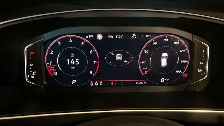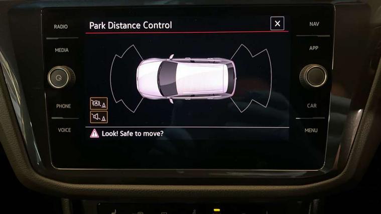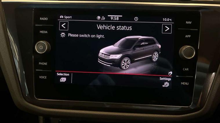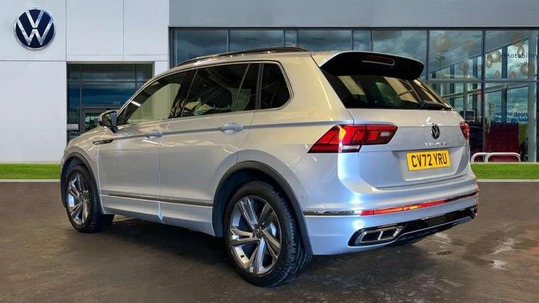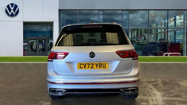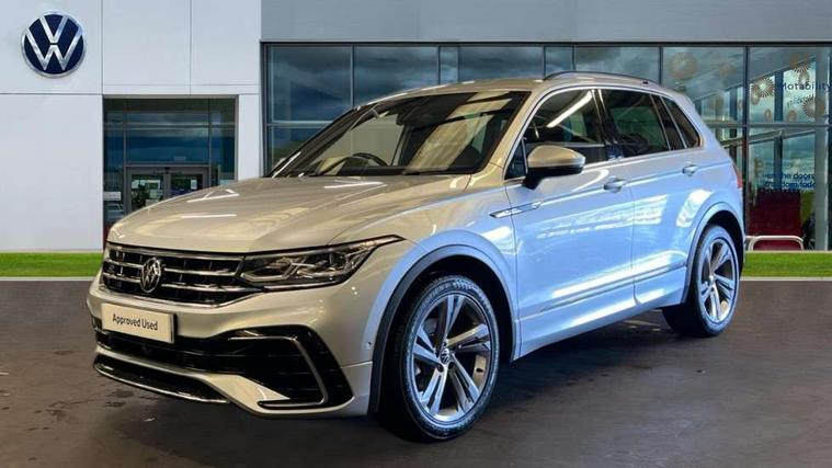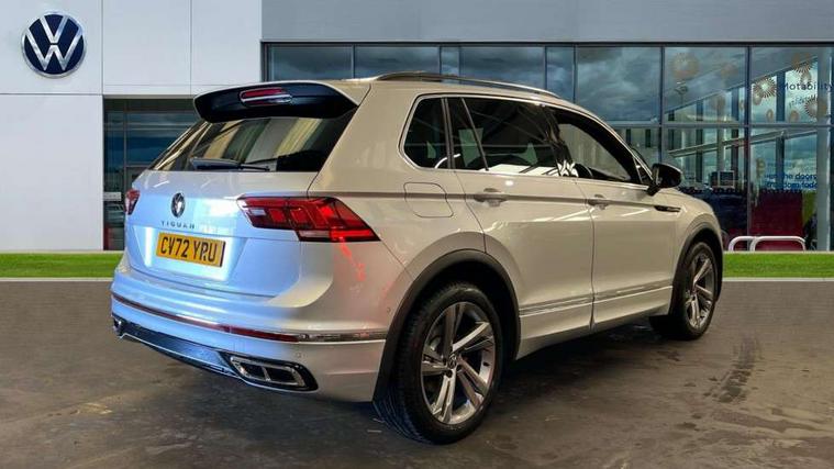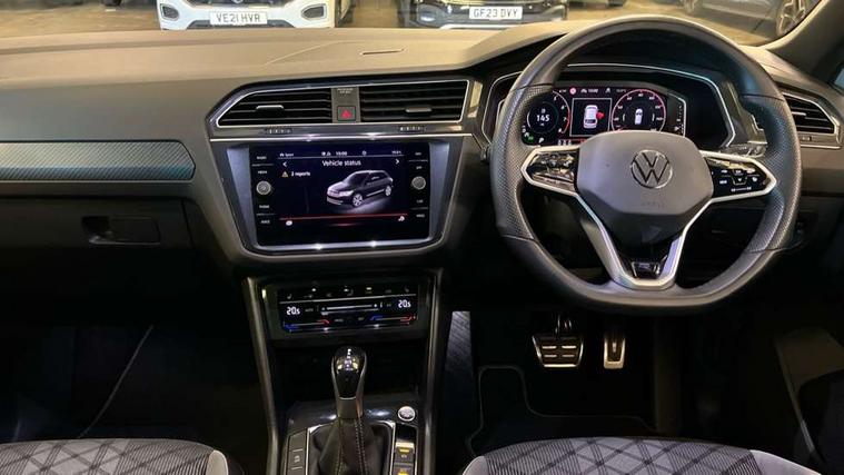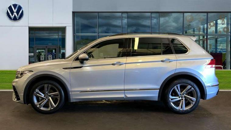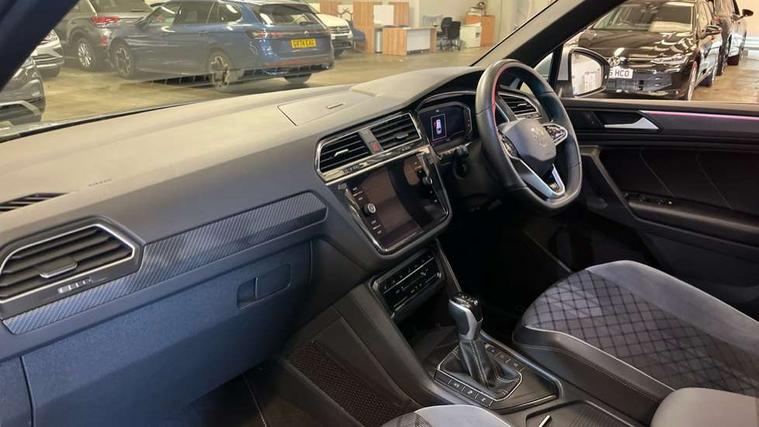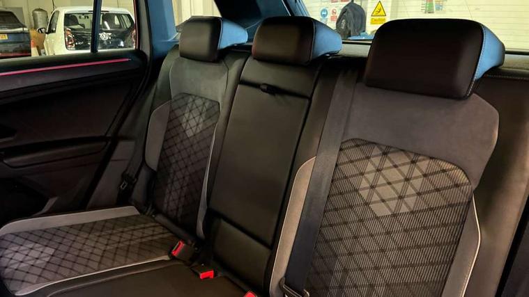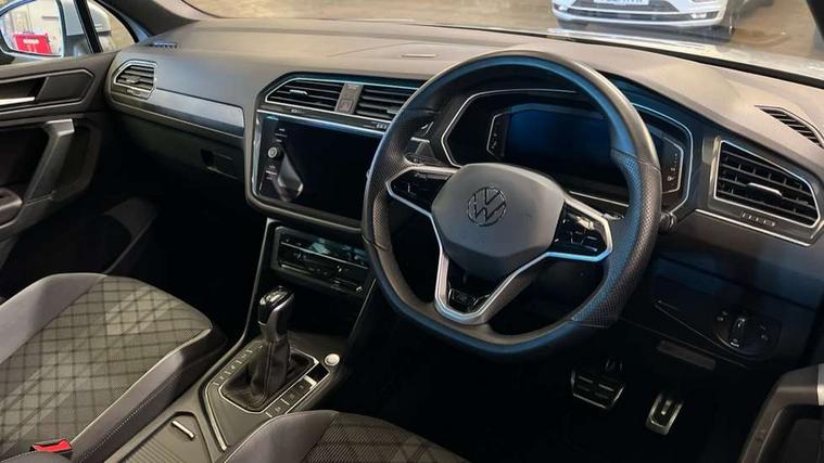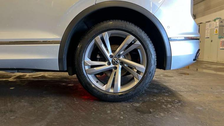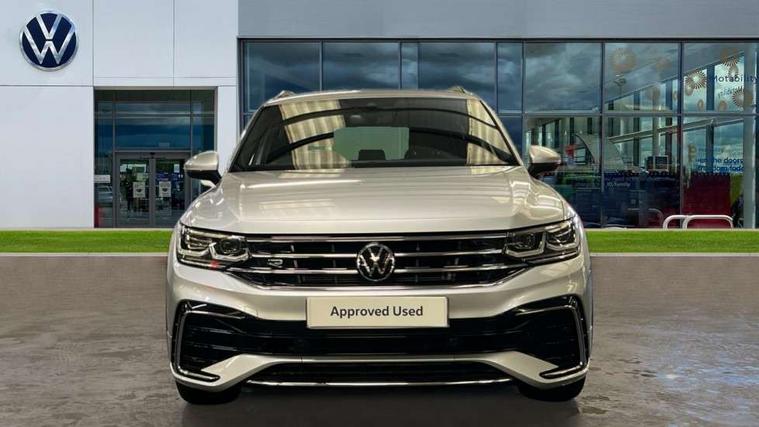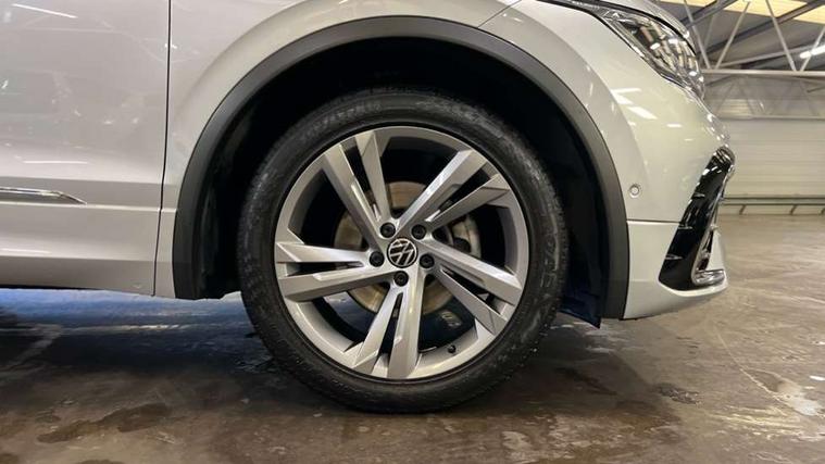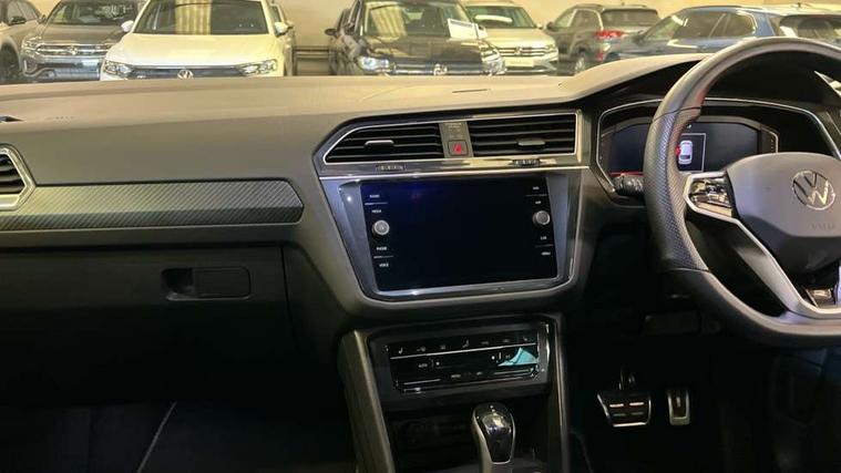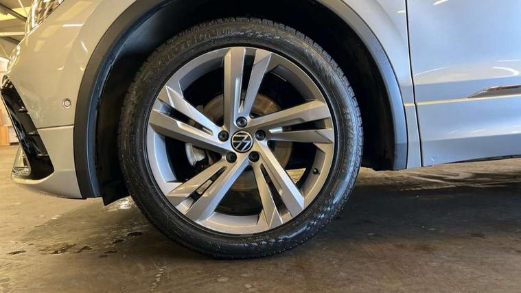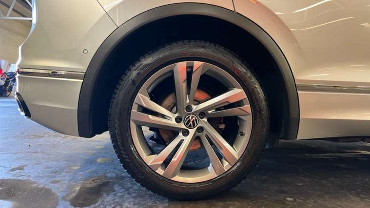 Adaptive cruise control ACC stop and go including speed limiter, App-Connect incl. App-Connect Wireless for Apple CarPlay and Android Auto, Bluetooth phone integration system, Comfort drive travel assist, Digital cockpit pro, Driver alert system, Driver profile selection, Dynamic road sign display, eCall emergency call system, Electromechanical speed sensitive power steering, Emergency assist, Front and rear parking distance sensors, Instrument cluster mph speedometer Great Britain, Lane keeping system Lane Assist, Lights on warning, Multifunction front facing camera, Outside temperature display, Premium multifunction display with multi colour display, Preparation for subsequent activation Navigation feature Discover Media includes Streaming and Internet, Remote control boot opening, Rev counter, Service interval indicator, Speed limit display, Start/stop system with regenerative braking, Tailgate/trunk lid unlocking from outside, Trip computer, Warning sound and light for doors and tailgate open, Battery regeneration during braking, Sports suspension, 8 Speakers, Digital radio reception DAB+, Diversity antenna for FM reception, Radio, Auto dimming interior rear view mirror, Automatic headlight control system, Body colored bumpers in R-Line style, Body colored exterior mirror housings, Body colour door handles, Chrome moldings on the side windows, Coming/leaving home lighting function, Dynamic headlight range control, Front and rear electric windows, Heated rear window, High level 3rd brake light, Laminated safety glass windshield, heat and sound insulating, LED headlamps with LED separate daytime running light and dynamic cornering light, LED rear combination lamps, LED rear number plate lights, License plate carrier in front and rear, Poor weather light and cornering light, Power adjustable, folding and heated door mirrors with surround lighting, front passenger exterior mirror lowering function, Privacy glass for rear side windows and rear window, R Line body kit, R Line side sills, Rain sensor, Rear exhaust tailpipe, Rear fog lamp, Rear side wing doors, Rear spoiler in R style, Rear windscreen washer and wiper with interval delay, Side and rear windows in heat insulating glass, Trailer Stability Programme, Unique R Line badging, Windscreen wipers/ intermittent wipe + 4 position delay, 12V outlet in center console rear and in luggage compartment, 12V outlet in front and tray, 2 LED front reading lights, 2 LED rear reading lights, 3 bench rear seats in 2nd row, 3 rear headrests, Air Care Climatronic 3 zone automatic climate control with enhanced air filter and controls in the rear, Art Velours greyson sports cloth upholstery, Backrest release for left front seat, Black headlining, Brushed stainless steel pedals and footrest, Carpet mats in front and rear with decorative stitching in Gray, Climate control unit rear with touch function, Door and side trim panel in foam film, insert in leatherette, Driver + front passenger lumbar support, Front footwell illumination, Front scuff plates in aluminum with R-Line logo, Front seats head restraints (x-adjustment), Height adjustable front seats, Height/reach adjust steering wheel, Isofix Preparation 2 Rear child seats, Leather gear knob, Rear bench seat asymetrically split folding, longitudinally movable and folding with load-through hatch and center armrest, Remote unlocking for rear seat backrest, Single front passenger seat, Sun visors with illuminated vanity mirrors, Top front comfort seats, Winter pack - Tiguan, 3 point seat belt for centre rear seats, 3 point seat belts with seat belt pretensioners for the outer rear seats, Curtain airbags for front and rear passengers, Driver/Front Passenger airbags, Drivers knee airbag, Electronic parking brake with auto hold, Electronic Stability Control with driver steering recommendation, ABS, ASR, EDL, EDTC and trailer stabilization, Front assist with autonomous emergency braking (for Adaptive Cruise Control ACC up to 130 mph), Front disc brakes, Front passenger airbag deactivation, Front side airbags, Height adjustable front 3 point seatbelts + pretensioners, Manual child proof rear door locks, Pedestrian monitoring system, Proactive passenger protection system in combination with front assist, Rear disc brakes, Two tone horn, Tyre pressure loss indicator, Warning sound and light for front seat belts if unfastened, Warning triangle, Anti theft alarm system with interior monitoring, backup horn and towing protection, Anti theft wheel bolts, Electronic engine immobiliser, Keyless locking and starting system keyless access with safelock, Chrome elements on the mirror switch power window switches and door pulls, Decorative inserts Carbon Gray for dashboard and front door trim panels, Interior door handle in matte chrome, 19" Valencia alloy wheels with AirStop tyres, Tool kit, Tyre mobility kit Includes 12V compressor and tyre sealant,
