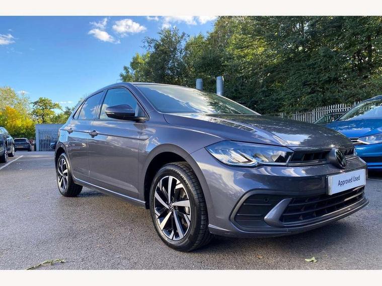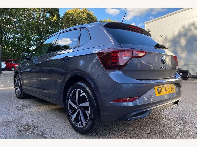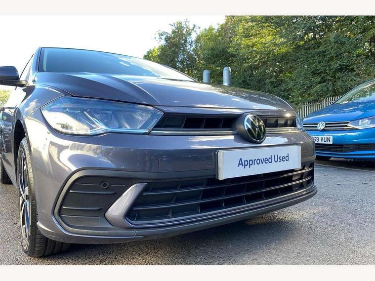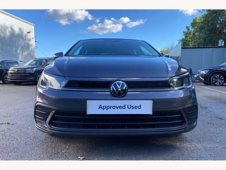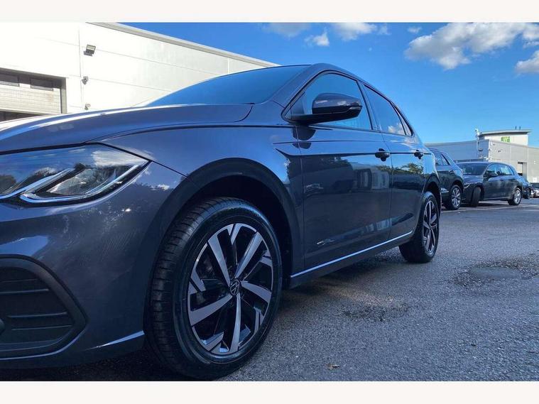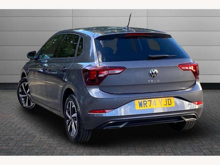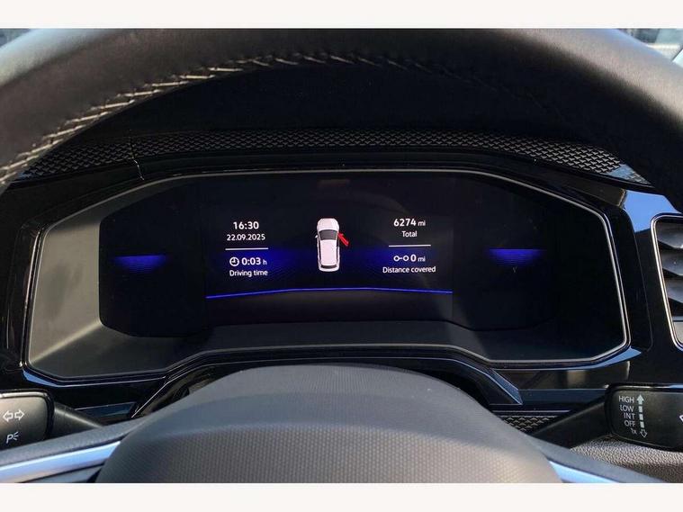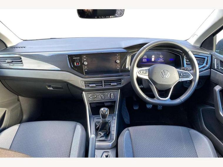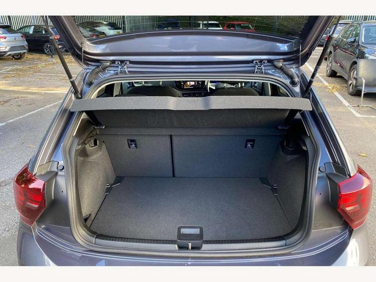 Adaptive cruise control without follow-to-stop and speed limiter, Advanced driver attention and drowsiness monitor, Bluetooth mobile phone interface, Dynamic road sign display, Emergency call service, Multifunction front facing camera for distance control, Park distance control, Power assisted speed sensitive steering, Preparation for navigation system with media and internet package, Preparation for We connect and We connect plus, Rear view camera, Speedo and rev counter, electronic odometer, trip, service interval display and exterior temperature gauge, Standard rear axle, Travel Assist - Lane keeping system and traffic jam assist, Travel assist including emergency assist, Trip computer, Warning signal and warning light for front and rear seatbelts not fastened, Washer fluid level indicator, Wireless app connect, Front wheel drive, Rear shock absorpion, Start-stop system with battery regeneration (recuperation - energy recovery during braking), DAB Digital radio, Diversity antenna for FM reception, Front and rear 6 speakers, Automatic dimming interior rear view mirror, Automatic headlight control with LED separate daytime running lights with coming/leaving home function, Body colour bumpers with chrome inserts, Body colour door handles, Body colour door mirrors, Electric front windows, Engine badge deletion, Headlight range adjustment, Heat insulating and laminated safety glass windshield, LED Headlights, LED rear combination lamps, Power folding adjustable/heated exterior mirrors and front passenger exterior mirror lowering function, Rain sensor, Rear electric windows, Rear fog light, Rear side wing doors, Rear tinted glass from B-pillar backwards approx 65% tinted, Rear windscreen washer and wiper with interval delay, Third brake light, 12V power socket in centre console, 2 front and 2 rear reading lights with switch off delay and dimmer, 2 USB-C ports in the front, 2 USB-C charging sockets on the center console in the rear, 3 rear head restraints, 60/40 split folding rear seat and rear seat bench not split, Ceramique roof lining, Chrome plated radiator grille inserts, air vent surrounds and light switch surrounds, Door and side trim panel, Driver and front passenger seat height adjustment, Driver/passenger sunvisors with illuminated vanity mirrors, Front centre armrest, Front seat backrest storage pockets, Front standard seats, Handbrake lever handle in leather, Hartley/Thomas cloth upholstery, Headliner in recycled material, Isofix child seat preparation easy-fit (for two outer rear seats, and front passenger seat) compatible with I-size, Leather trimmed gear knob, Luggage compartment cover, Luggage compartment lighting, Removable luggage compartment floor, Single front passenger seat, Standard climatic zones, Standard pedal cluster, Three spoke leather wrapped multifunction steering wheel, Light and vision pack - Polo, 3 point height adj front seatbelts + pretensioners, 3 point seat belt for centre rear seat, 3 point seatbelts, outer rear with ECE lable, ABS, Driver and front passenger airbag with front passenger airbag deactivation, Drivers and front passengers safety optimised head restraints, ESC (Electronic stability control) + EDL (Electronic Differntial lock) and ASR (Traction control), Extended and predictive pedestrian/ cyclist protection, Front assist with autonomous emergency braking (for Adaptive Cruise Control ACC up to 130 mph), Front curtain and side airbags with center airbag, Front disc brakes, Hill hold control, Manual child lock in rear doors, Rear drum brakes, Single tone horn, Tyre pressure loss indicator, Alarm with interior protection, Anti-theft alarm system with interior monitoring, backup horn, and towing protection, Anti-theft wheel bolts, Electronic engine immobiliser, Lava stone black gloss/matt decorative inserts in dash and front door panels, 16" Torsby alloy wheels, Low rolling resistance tyres,