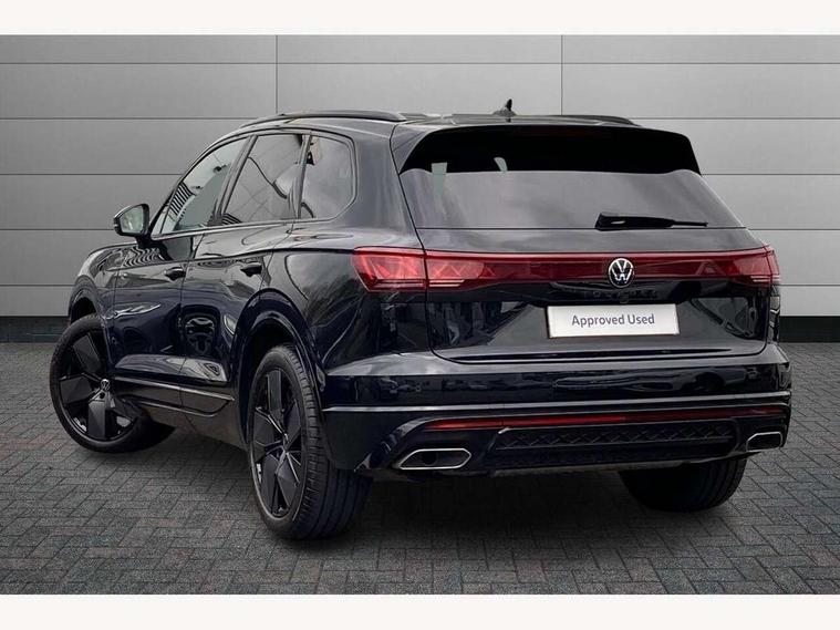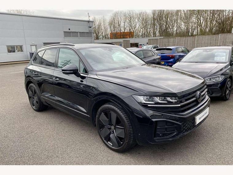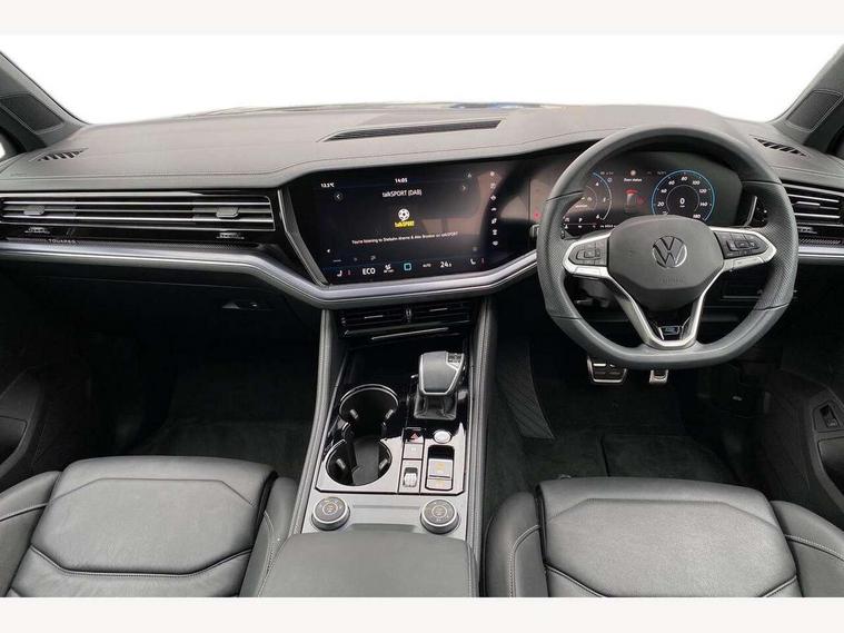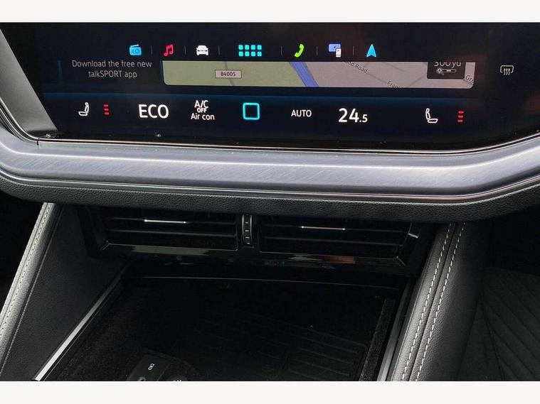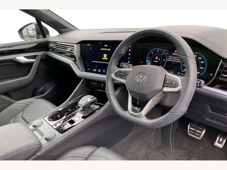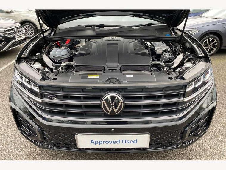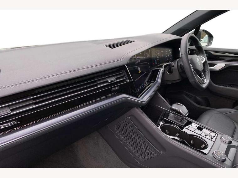 15" Screen Top infotainment system Premium (MIB3), Adaptive cruise control, Advanced driver attention and drowsiness monitor, Driver profile selection, Dynamic road sign display, E-Sim card for online connectivity, eCall emergency system, Innovision cockpit, Intelligent park assist, Mobile phone interface with inductive charging, Multi-colour Active Info display, Park Assist - Sensor controlled steering aid to assist parallel or bay parking, PAS, Warning signal and warning light for front and rear seatbelts not fastened, Wireless app connect, Adaptive chassis control, DAB Digital radio, Diversity antenna for AM/ FM reception, We Connect and We Connect Plus functionality, Automatic coming/leaving home lighting function, Automatic headlights, Black door mirrors, Black style comfort bumpers, Dynamic headlight range control with dynamic cornering light, Electric front tilt/slide panoramic sunroof and fixed rear sunroof, Electrically power adjustable, heated, folding, auto dimming, front passenger exterior door mirror lowering function, External USB type C socket and charging sockets, Gloss black roof rails, HD LED Matrix beam plus digital headlight projection with variable light distribution, Headlight washers, Highway light, LED 3rd brake light, LED daytime running lights, LED rear combination lamp with variable lighting functions and special styling, Poor weather light, Rain sensor, Rear exhaust tailpipe, Rear fog light with back up light on both sides, Rear light bar and illuminated logo, Rear side wing doors, Rear wiper, Stainless steel door sill protection, 12V socket in centre console, 3 rear headrests, 3 seat bench in 2nd row, 4 zone climate control, Airbag label on sun visor and B-pillar, Brushed stainless steel pedals, Double sun visors with illuminated vanity mirrors, Front + rear carpet mats, Front centre armrest, Leather wrapped multifunction sports steering wheel, heated, with touch control and shift paddles, Mechanical rear seat release, Power adjustable lumbar support in front, Power seats in front, right side with memory features and seat cushion depth adjustment, Rear seat backrest and split folding with center armrest, Single front passenger seat, Memory pack plus - Touareg, 3 point seatbelts, outer rear with ECE lable, ABS, Child locks on rear doors, Curtain airbags, Driver and front passenger safety-optimised head restraints, Driver/Front Passenger airbags, Extended pedestrian protection measures, Front assist, Front seat side impact airbags, Generative braking with start and stop system, Height adjustable 3 point front seatbelts with pre tensioners, Passenger airbag deactivate switch, Three 3 point rear seatbelts, Two tone horn, Tyre pressure loss indicator, Warning triangle and first aid kit, Alarm system with interior protection, Easy open and close sensor controlled luggage compartment opening and closing with remote unlocking, Keyless Access Keyless locking and starting system with SAFELOCK, Aluminium decorative inserts, Black decorative trims, Gloss black decorative inserts in centre console, Tool kit,