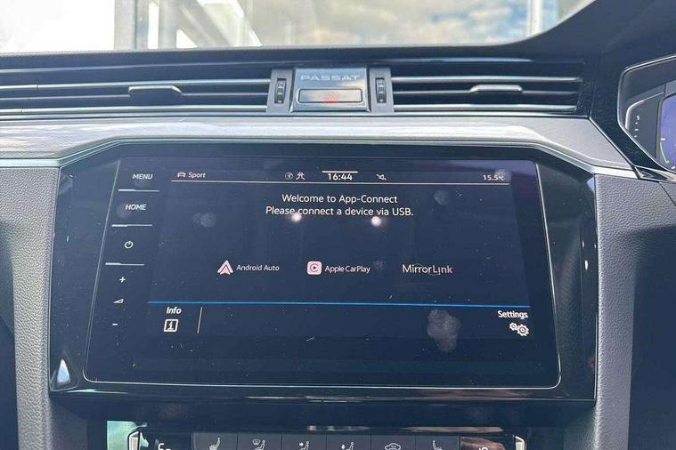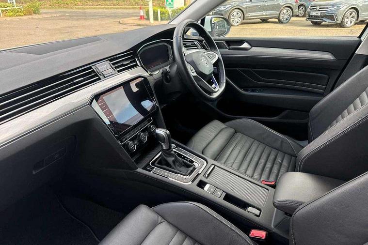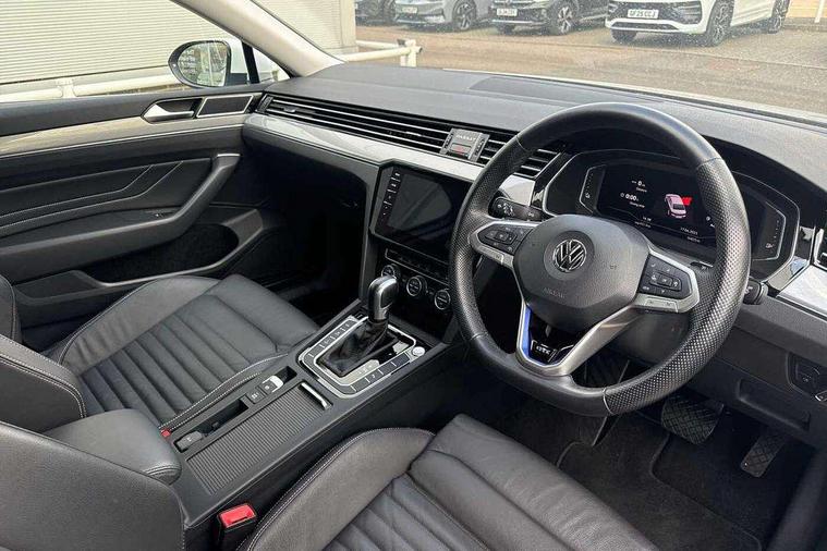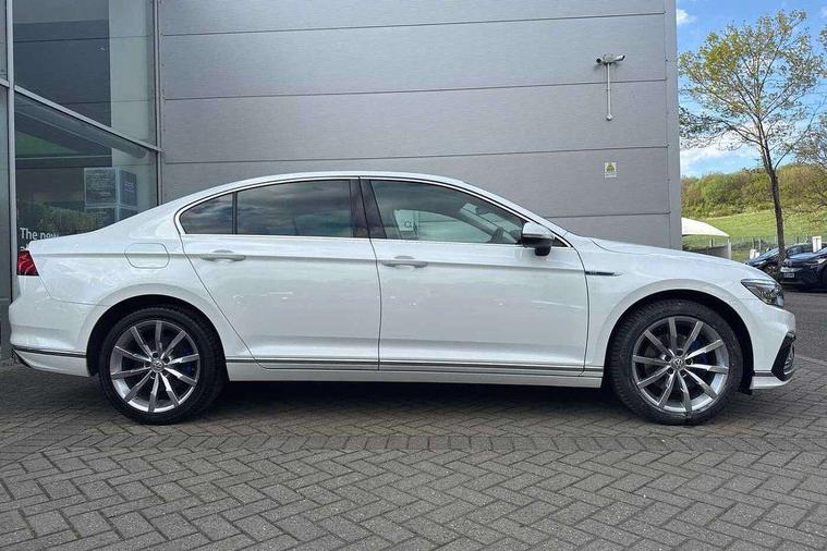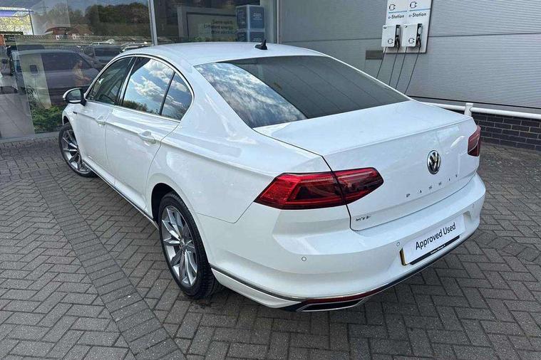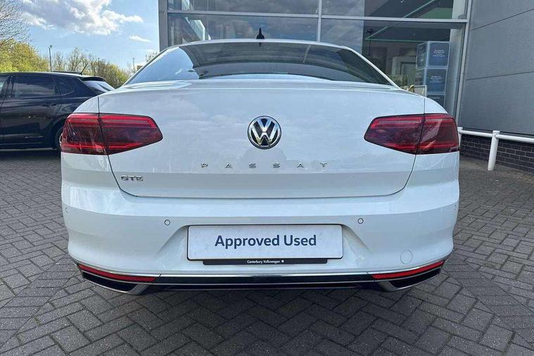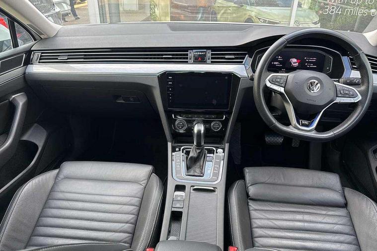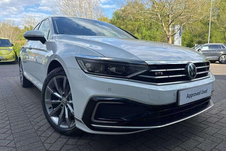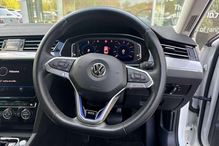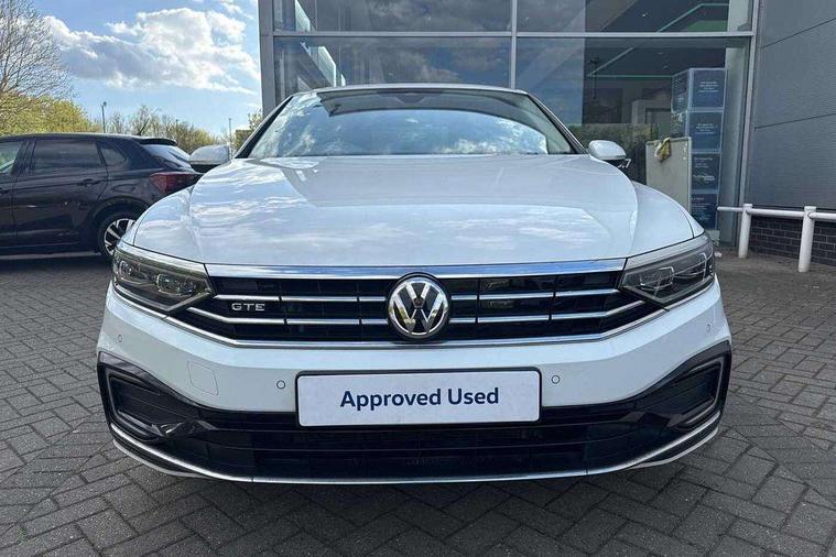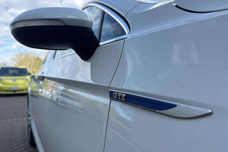 Chrome air vent and instrument surround, Cross hatch decorative inserts in dash and door panels, Unique GTE instrument cluster, Discover navigation pro pack - Passat, Easy open package with full electric tailgate/ boot - Passat, 3x3 point rear seatbelts, ABS (Anti locking brake system) includes BAS (Brake assist) and EBD (Electronic brake pressure distribution), Automatic post collision braking, Blue brake callipers, Disc brakes front and rear, Door open warning reflectors, Driver/Front Passenger airbags, Drivers and front passengers safety optimised head restraints, longitudinal and height adjustable, Drivers knee airbag, Electronic parking brake with auto hold, First aid kit, Front airbags with deactivation switch, Front and rear passenger curtain airbags, Front side impact airbag, Height adjustable front 3 point seatbelts + pretensioners, Hill hold function, Pre crash preventive occupant protection, Rear seat side impact airbags, Rigid safety cell with front and rear crumple zones, Volkswagen roadside assistance, Warning light for rear seat belts if unfastened, Tyre mobility kit, Alarm with interior protection and deactivation via infotainment system, Electronic engine immobiliser, Battery regeneration during braking, Exterior e-sound, Misfuel prevention device, Petrol Particulate Filter, Aerial for radio integrated into rear windscreen, DAB Digital radio receiver, Auto dimming interior rear view mirror, Automatic headlights with dusk sensor, Automatic leaving home and manual coming home lighting functions, Black radiator grille with chrome louvres, Body colour bumpers, Body colour door handles, Body coloured door mirrors with intergrated indicators, Charging point inlet on radiator grille, Chrome side window surrounds, Front and rear electric windows, Fully galvanised body, Gloss black finish on B pillar, Heated rear window, High level 3rd brake light, IQ.LED matrix headlights with dynamic curve + light assist, LED daytime running lights, front fog lights with static cornering, animated indicator, LED rear lights, LED rear number plate lights, Rain sensor, Rear tinted glass from B pillar backwards, approx 65% tinted, Remote electrically adjustable and foldable heated door mirrors including automatic dimming function on drivers side door mirror puddle lights, Trapezoid exhaust tailpipes, left and right, Unique GTE badging, Unique GTE radiator grille with blue strip, Warning lights for open tailgate and doors, White instrument lighting, 12V socket in front centre console, 12V socket in luggage compartment, 60:40 split folding rear seat with backrest, Climate control - 3 Zone electronic air conditioning with automatic air recirculation, Driver's door storage compartment for 1.0 litre bottle, Driver/front passenger seat height adjustment, ergoComfort seat with seat cushion tilt adjustment, thigh support and electric backrest adjustment on the driver side, Front + rear carpet mats, Front and rear interior lighting with delay and dimming function, Front centre armrest with storage compartment and two rear air vents, Front cupholders x2 with covers, Front passenger storage compartment for 1.5 litre bottle, Front seats with lumbar adjustment, Height adjustable rear seat head restraints (x3), Height/reach adjust steering wheel, Illuminated vanity mirrors, Isofix child seat preparation, outer rear seats, Leather trimmed three spoke multifunction steering wheel and gear knob with blue contrast stitching, Load lashing points x 4 in luggage compartment, Load through provision, Lockable, illuminated, cooled glovebox, Luggage compartment lighting, Rear seat centre armrest with storage compartment, Storage compartment in rear doors, Storage compartment in roof console with cover, Two charging cables 16amp for wallbox/chargepoints (mode 3) and 10amp mains charge cable (mode 2), Vienna leather upholstery + heated front seats + heated windscreen washer jets, Adaptive cruise control including Front Assist, radar sensor controlled distance monitoring system, City emergency braking system, Driver alert system, Driver profile selection, Exterior temperature gauge with frost alarm, Lane assist, Low washer fluid warning light, Multifunction computer includes visual gear, One touch indicator turn signal, Proactive occupant protection, Security and service including e-call, Socket AC Type 2, Speed sensitive power steering, Speedo and rev counter, electronic odometer, trip, service interval display and fuel gauge, Start/Stop function, Traffic jam assist, Warning buzzer and light for front seatbelts unfastened, Wireless app connect,