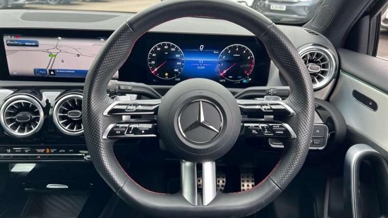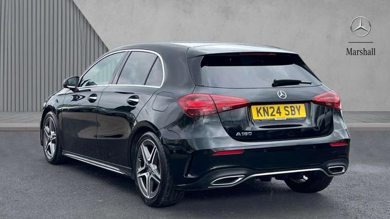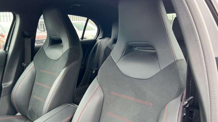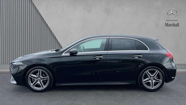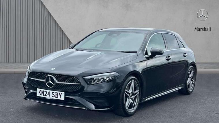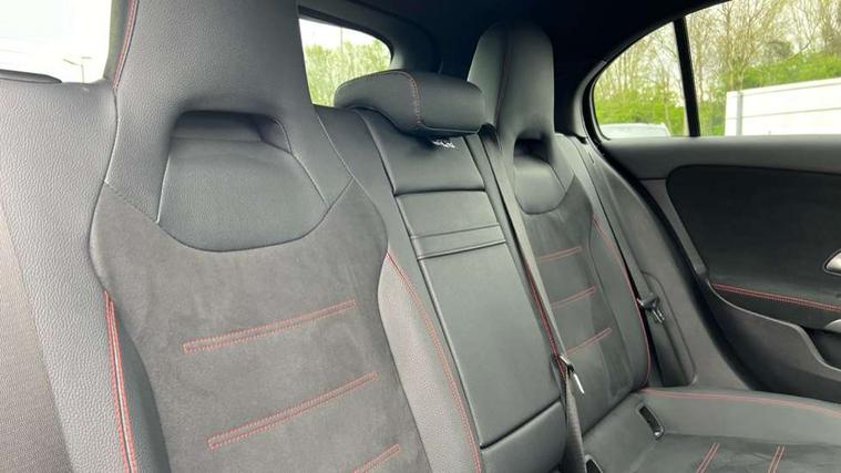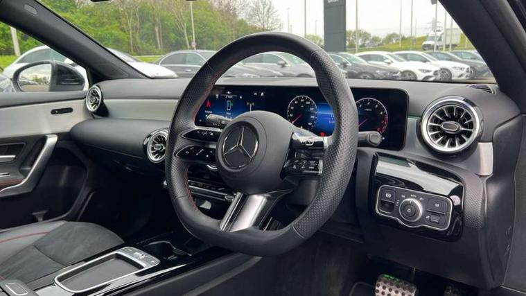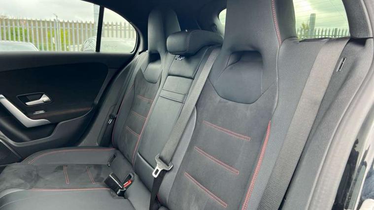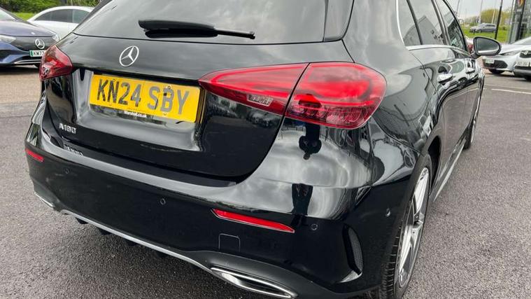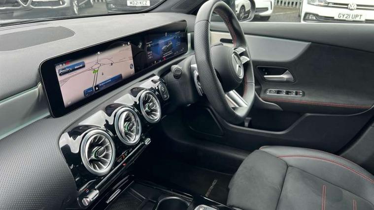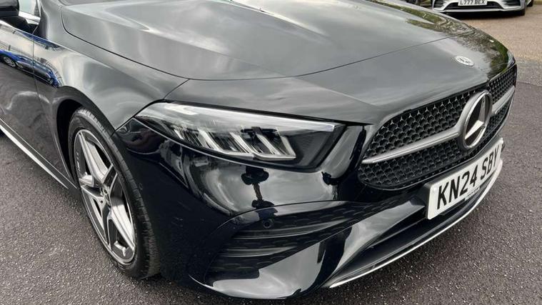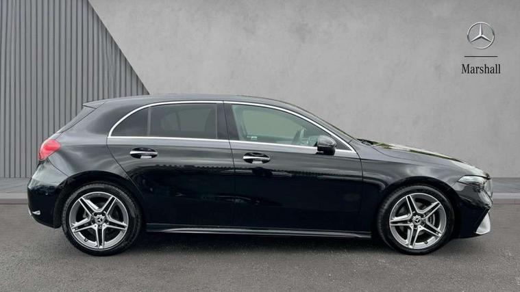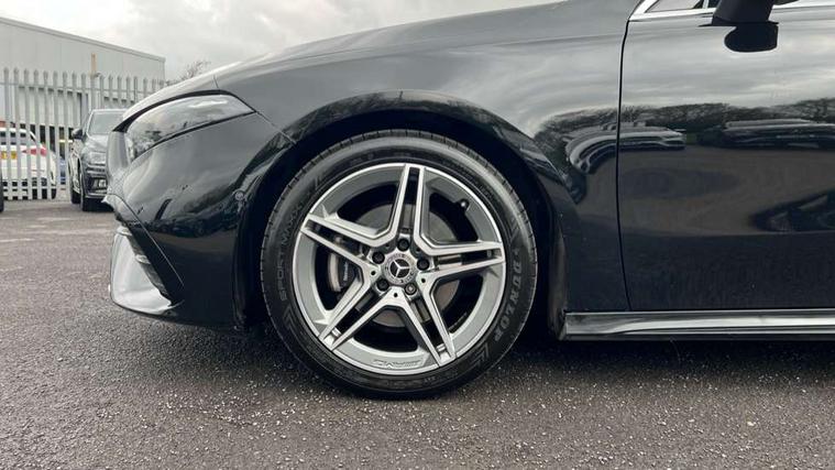 10.25 inch touchscreen central media display, 10.25" Digital instrument cluster display screen, Attention assist, Brake pad wear indicator warning light, Car wash mode, Cruise control + speed limiter, Direct steering, Direction indicators with lane change function, Dual bluetooth interfaces, DYNAMIC SELECT with a choice of driving modes (ECO, Comfort, Sport and Individual), Easy pack tailgate hands-free access, ECO start/stop function, Engine start/stop button, Fluid level warning indicator for fuel, oil, coolant and washer fluid, Fluorescent jacket for driver, Hard-disk navigation, Hey Mercedes Voice activation, Lamp failure indicator, Lane keeping system, Mercedes me connect including emergency call system, accident recovery, breakdown management and maintenance, Mercedes me remote services, Outside temperature gauge, Owners manual in English, Pre-installation of private car share, Preinstallation for Mercedes Benz link, Remote boot closing, Service indicator (ASSYST), Smartphone integration with Apple CarPlay and Android auto, Speed limit assist, Speed sensitive power steering, Tailgate, Trip computer in multifunction display with current consumption indicator, Wireless charging, Lowered comfort suspension, DAB Digital radio, MBUX multimedia system, Mercedes Benz sound system (100 W) with 6 speakers, 4 Electric Front and Rear windows, Adaptive brake lights, AMG body styling - AMG front apron with front splitter and AMG rear apron and visible exhaust tailpipe trim elements, Body colour bumpers, Body colour door handles with chrome inserts, Body colour side skirt, Body coloured door mirrors, Chrome beltline strips, Diamond radiator grille with pins in fine star pattern, Electric adjustable and heated door mirrors with integrated LED side indicators, Exhaust system with 2 visible tailpipe trim elements and rear apron, Headlamp assist automatic headlamp activation, Heat insulating dark tinted rear and rear side windows, Heated glass rear windscreen + timer control, LED High level third brake light, LED High Performance headlamps including integral LED daytime running lamps and adaptive highbeam assist, LED tail lamp, Privacy glass, Radio aerial, Rain sensing windscreen wipers with two sensitivity settings, Rear fog lights, Rear side wing doors, Rear windscreen wiper, Window line trim strip in chrome, 3 seat bench in 2nd row, 3 Spoke flat bottom leather multi function steering wheel with perforated leather in grip area, 4 way lumbar support, 40:20:40 split folding rear seats, Air conditioning - One zone thermatic automatic climate control with automatically controlled air distribution, AMG floor mats, Automatic child seat recognition sensor, Black air vents with surround in silver chrome, Black roof lining, Brushed stainless steel sports pedals with rubber studs, Front centre armrest with stowage, Front door sills with Mercedes Benz lettering, Front seat backs luggage nets, Galvanished gear shift paddles on steering wheel, Heated front seats, Height/reach adjustable steering column, Interior lighting - 64 colour Ambient lighting, Interior mirror with reading lamps in black and frameless, ISOFIX and top tether child seat fixing points in two outer rear seats, Rear armrest with 2 cupholders, Seat occupancy sensor for front passenger seat, Single front passenger seat, Sports seats with integrated headrests, Stowage compartment in centre console with retractable cover, Sunvisors with illuminated vanity mirrors, Twin front cupholders, Light and sight pack - A Class, Mirror package - A Class, Parking pack - A Class, Seat comfort pack - A Class, USB pack plus - A Class, 3 rear 3 point seatbelts, ABS with Brake Assist, Active bonnet, Active brake assist includes forward collision warning system with autonomous braking, Adaptive brake assist with hold function and hill start assist, Black seatbelts, Bonnet with power domes, Childproof locks manually operated for rear doors and electrically operated for rear power windows, Crash responsive emergency lighting, Driver and passenger head and side airbags, Drivers knee airbag, Dual stage driver/passenger airbags, Electronic parking brake, ESP curve dynamic assist, ESP with ASR, Front and rear seatbelt reminder, Tyre pressure monitoring system, Warning triangle and first aid kit, Window airbags, Alarm system/interior protection/immobiliser, Guard 360 degree vehicle protection, Keyless entry lock/unlock, Keyless Go, Remote central locking and crash sensor with emergency opening function, Light longitudinal grain aluminium trim, 18" AMG 5 twin spoke light alloy wheels, aerodynamically optimised, painted in termolite grey with high sheen finish, Summer tyres, Tirefit sealant kit,