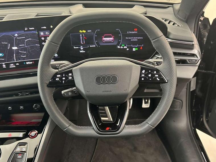 Adaptive cruise control, Advanced driver attention and fatigue montior, Audi application store, Audi assistant, Audi connect emergency call and service, Audi drive select, Audi smartphone interface, Audi virtual cockpit plus with 11.9" OLED colour display, Automatic start/stop system with coasting functionality, Camera based traffic sign recognition, Intersection assist, Lane change assistant with exit warning system, rear cross traffic alert and rear turn assist, Lane departure warning with emergency assist, MMI 10.9" front passenger touch display, MMI navigation plus with high resolution 14.5" OLED touchscreen colour display, Park assist plus, Parking system plus with 360 display, Progressive steering with servotronic, Swerve assist and turn assist, Top view camera, Traffic sign based speed limiter, Sports suspension lowered by 20mm, 2 USB-C ports in both the front and rear, Audi sound system impressive sound with 10 loudspeakers including centre speaker and subwoofer, 6-channel amplifier with a total output of 180 watts, DAB digital radio reception, Smartphone compartment with wireless charging, Aluminium window trims, Auto dimming rear view mirror, Black door handles, Black door mirrors, Black roof rails, Dark chrome-plated tailpipe trims, Door mirrors - electrically adjustable, heated, folding and auto dimming on both sides, Front and rear electric windows, Front door sill trims with aluminium inlays, illuminated with 'S' logo, Headlight cleaning system, High beam assist, LED daytime running lights, LED rear lights pro incl. dynamic rear indicators and illuminated light strip with animated coming and leaving home function, LED third brake light, Matrix LED headlights with eight light signatures selectable via the MMI or the myAudi app, Privacy glass, Rear and side windows with heat insulating glass, Rear side wing doors, Rear wash/wipe, Red S line rhombus badging on rear, S line bumpers, radiator grille and diffuser in phantom black and diffuser insert in matt anthracite, White rhombus logo projection light in exterior mirrors, Windscreen with acoustic glazing, 3 rear headrests, 3 seat rear bench, 3 spoke leather steering wheel with multi-function buttons with touch control, flattened on top and bottom, with S badging and contrast stitching, 3-zone automatic climate control, 40:20:40 split folding rear seat bench with centre armrest and cup holders, Comfort front centre armrest, Electrically adjustable front seats, Front and rear floor mats, Front sport seats with integrated headrest and S embossed logo, Headlining in black cloth, Heated front seats, i-Size child seat mounting on the front passenger side and i-Size and top tether on the outer rear seats, Luggage compartment lid, electrically opening and closing, Manual steering column height and depth adjustment, Memory function for driver seat, Single front passenger seat, Stainless steel pedals and footrest, Steering wheel grips in perforated leather and shift paddles, Ambient lighting package plus - A5, Black styling package plus - A5, 3x3 point rear seat belts, Acoustic vehicle alerting system, Convenience key with safelock, Driver airbag, Electric child safety locks, First aid kit with warning triangle and vests, Front emergency brake assist, Front passenger airbag, Front passenger airbag deactivation, Hill hold assist, Occupant detection in rear seat area, Proactive passenger protection system for front, sides and rear, Red brake calipers, Seat belt monitoring with rear seat occupant reminder, Side airbags in front and rear with head airbag system and front interaction airbag, Tyre pressure loss indicator, Anti theft alarm, Anti-theft wheel bolts, Keyless Go, Accent surfaces and control buttons in gloss black, Black dashboard with contrast stitching, Softwrap in Dinamica with contrast stitching, Upper and lower interior elements in dinamica microfiber, 20" 5 arm fold design Audi sport alloy wheels in silk matt grey and gloss turned finish, Tyre repair kit,