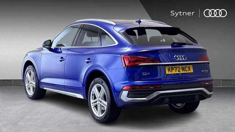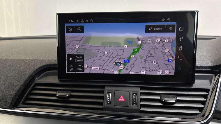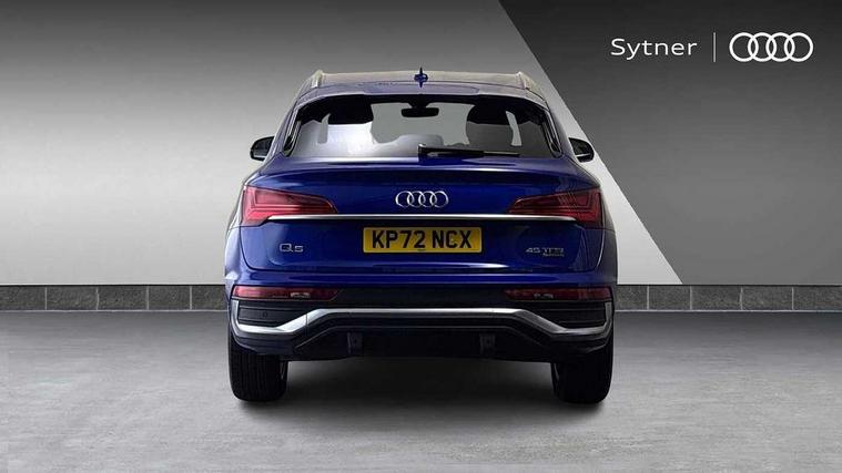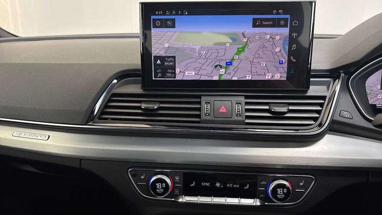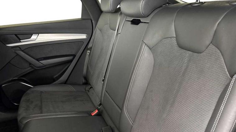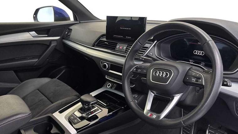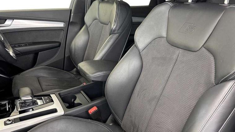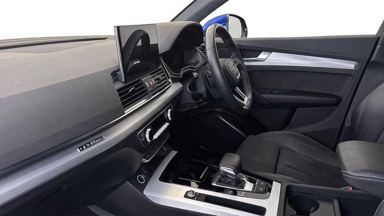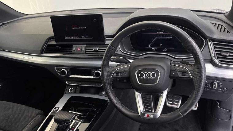 Audi connect safety and service (e-call), Audi connect with Amazon Alexa Integration, Audi drive select, Audi virtual cockpit plus with 12.3" screen and three different layout designs, Audi wireless smartphone interface, Automatic start-stop system with coasting functionality and efficiency programme, Bluetooth interface, Electro - mechanical power assisted steering, MMI navigation plus with 10.1" touch screen, Power tailgate, Reversing camera, Service interval indicator, Voice control system with Audi hotword activation "Hey Audi", Quattro on demand, S line sports suspension, DAB Digital radio, Acoustic windscreen, Aluminium roof rails, Audi matrix LED headlights with dynamic front and rear indicators, Auto dimming door mirrors, Auto dimming rear view mirror, Automatic headlight adjustment, Automatic headlights and windscreen wipers, Body colour door mirrors, Body colour rear diffuser with matt aluminium silver surrounds, Body colour underbody protection, Chrome plated exhaust trims, Daytime running lights, Door sills in Selenite silver, Electric adjustable/heated/folding door mirrors, Front air inlet surrounds in aluminium, Front and rear electric windows, Front radiator grille in honeycomb design, Headlight washers, High level LED brake light, Lower bumpers painted in contrast Manhattan grey, Rear chrome trim strip below lights, Rear privacy glass and rear side windows, Rear side wing doors, Rear wiper, Roof bars, S Line badges on the front wings, S Line front and rear bumpers, S Line rear spoiler, S Line side skirts, 2 x USB charging port with aux input socket, 3 rear headrests, 40:20:40 split folding 3 rear bench seat in 2nd row with rear centre armrest, Black cloth headlining, Comfort front centre armrest, Contrast stitching on seats, steering wheel and gear lever gaiter, Deluxe 3 zone electronic climate control, Front head restraints, Front/rear floor mats, Gear lever in black leather, Heated front seats, Height/reach adjustable steering column, Illuminated door sill trims with S logo, ISOFIX child seat mounting and top tether, Manual seat adjustment with 4-way electric lumbar support, Removable luggage compartment floor, Single front passenger seat, Stainless steel pedals, Sunvisors with vanity mirrors, Trunk roller cover, High gloss pack - Q5, LED interior light pack - Q5, 3 point seatbelts on all seats, 6 airbags - Driver, front passenger, curtain and side airbags, Electrically operated child locks on rear doors, Electromechanical parking brake, Electronic stabilisation control including ABS, ASR and EDL, Front passenger airbag deactivation, Hill descent control, Hill hold assist, Multi collision brake assist, Pop-up bonnet for pedestrian protection, Pre sense city, Seat belt force limiter, Seatbelt monitoring, Tyre pressure warning, Warning triangle and first aid kit, Anti theft alarm, Anti-theft wheel bolts, Keyless Go access/ignition system, Remote central locking, Matt brushed aluminium inlays,