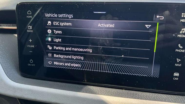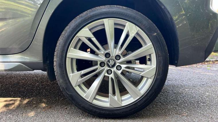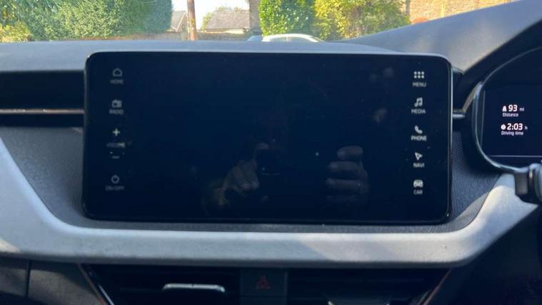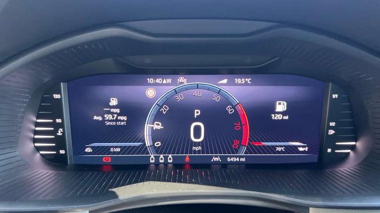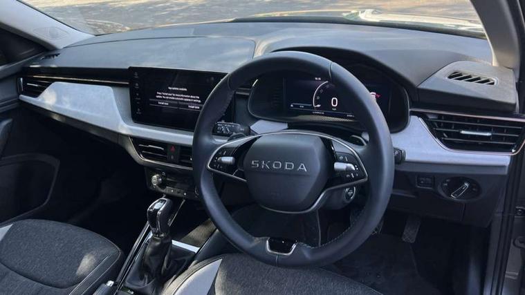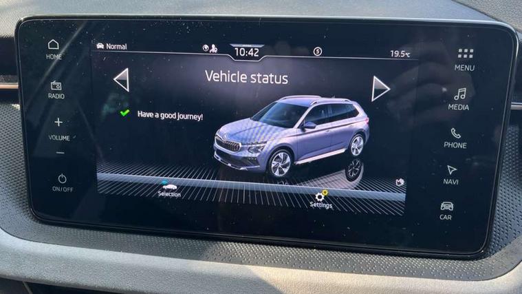 Advanced driver attention and drowsiness monitor, Bluetooth system, E-call, Front assist system, PAS, Rear parking sensors, Rear view camera, Service indicator, Speed limiter, Traffic sign recognition, Virtual cockpit with 10.25" display, Voice control system, Wireless smartlink, 4 USB C ports, 8 Speakers, 9.2" Skoda navigation display, DAB Digital radio, Auto dimming rear view mirror, Automatic headlight control with coming home and leaving home feature, Body colour bumpers, Body colour door mirrors and handles, Chrome grille surround, Chrome roof rails with chrome window surround, Front and rear electric windows, Heated rear window, LED daytime running lights, LED high beam, LED low beam, LED third brake light, Light sensors, Privacy glass, Rear side wing doors, Rear wiper, Ticket holder inside windscreen, 12V socket in luggage compartment, 3 seat bench in 2nd row, Accent black door inserts, Ambient lighting in white/red, Cargo elements, Chrome inner door handles, Copper hotstamping, Driver and passenger sun visors with vanity mirror, Dual zone climate control, Front and rear roof lights, Front centre armrest, Front head restraints, Glove compartment with illumination, Height adjustable driver seat, Height adjustable front passenger seat, Ice scraper, Inner circulation control with pollen filter, ISOFIX on front passenger seat, Isofix preparation for back seats, Leather gearknob and handbrake lever, Lodge cloth upholstery, Manual lumbar support for front seats, Net package and top tether hooks in boot space, Net under rear shelf, Overhead glasses storage compartment, Pocket on the back of both front seats include mobile phone pockets, Rake/reach adjustable steering wheel, Reading lights, Rear centre armrests, Single front passenger seat, Suedia grey decor inserts, Textile floor mats, Third rear headrest, Top tether for front passenger seat, Umbrella in driver's door, Convenience pack - Kamiq, 3x3 point rear seatbelts, Airbags - driver and front passenger, Disc brakes, ESP, Extended and predictive pedestrian/cyclist protection, Front passenger airbag deactivation switch, Front side airbags with curtain airbags, Hill hold control, Manual leather parking brake, Manual rear child locks, One tone horn, Seatbelt reminder for driver an co-driver, Traction control, Tyre pressure monitor, Anti-theft alarm system with interior monitoring, backup horn, towing protection and remote central locking with SAFE system, Anti-theft wheel bolts, Electronic engine immobilizer,