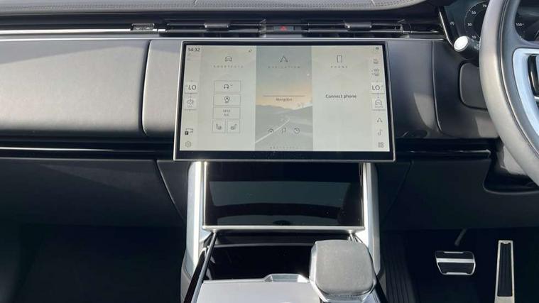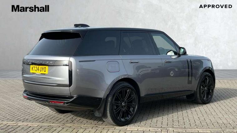 13.1" Touchscreen, 3D surround camera inc frwd traffic detection, vehicle clearance guidance, 3D view, clearsight ground view, manoevure light, 360 parking aid, wade sensing, All Terrain Info Centre, All wheel steering, Android Auto, Apple car play, Blind spot assist, Bluetooth connectivity streaming, Driver condition response, Eco mode, Electric power assisted steering (EPAS), Emergency call service, Front and rear parking aid, Interactive driver display, Lane keep assist, Park assist, Rear collision monitor, Rear traffic monitor, Remote, Traffic sign recognition with adaptive speed limiter, Wi-Fi Enabled with data plan, Wireless device charging with phone signal booster, 8 speed automatic transmission, Active damper technology system, Adaptive dynamics, All terrain progress control, All Wheel Drive (AWD), Automatic access height, Terrain Response 2 Auto, Twin speed transfer box, Digital Audio Broadcast radio-DAB, Pivi pro including smart settings, Connected navigation pro, nuance speech, USB socket, Acoustic laminated windscreen, Animated directional indicators, Automatic headlights, Automatic levelling headlights, Centre high mounted stop light, Electric windows with one touch open/close and anti trap, Engine cover, Flush deployable exterior door handles, Front and rear recovery eyes, Front fog lights, Headlamp power wash, Heated rear window, Heated washer jets, Illuminated aluminum treadplates with Range Rover script, LED tail lights, No badges, Pixel LED headlights with signature DRL, Power fold, auto-dimming, heated door mirrors with approach lights, Rain sensing windscreen wipers, Rear boot, Rear fog lights, Rear side wing doors, Side repeater indicators in mirror, Trailer stability assist, Winter wiper park position, 12V power sockets, 3 seat bench in 2nd row, Air quality sensor, Bright metal pedals, Cabin lighting, Customer configurable single point entry, Driver and passenger front seat armrests, Easy boot loading, Ebony Carpet, Front and rear cupholders, Front and rear grab handles, Front head restraints, Gearshift paddles, Heated steering wheel, Hook in load space, Loadspace light, Luggage tie down in loadspace, Multifunction steering wheel, Rear centre armrest, Rear head restraints, Rear ISOFIX, Single front passenger seat, Soft close doors, Upper and lower glovebox, Online pack with data plan - Range Rover, 3x3 point rear seat belts, Anti-lock braking system (ABS), Brake hold function, Cornering brake control (CBC), Customer configurable autolock, DSC - Dynamic Stability Control, Electronic brake force distribution, Electronic parking brake, Electronic traction control, Emergency brake assist, Emergency braking, Front airbags with passenger seat occupant detector, Front side airbags, Hill descent control, Hill launch assist, Low traction launch, Occupant protection assist, Power operated child locks, Roll stability control, Tyre pressure monitoring system (TPMS), Immobiliser, Intrusion sensor and alarm, Keyless entry, Locking wheel nuts, Remote central locking, Noble chrome controls,