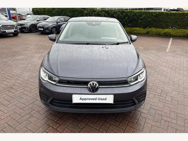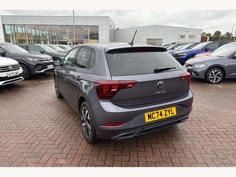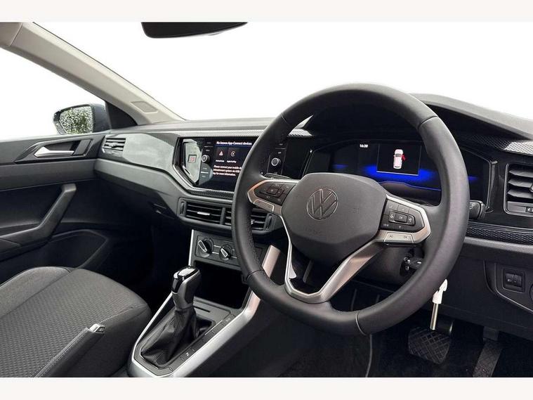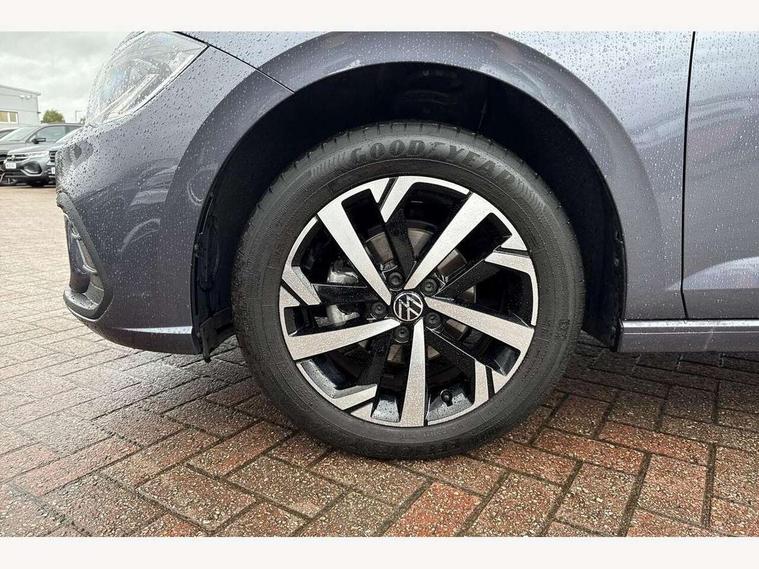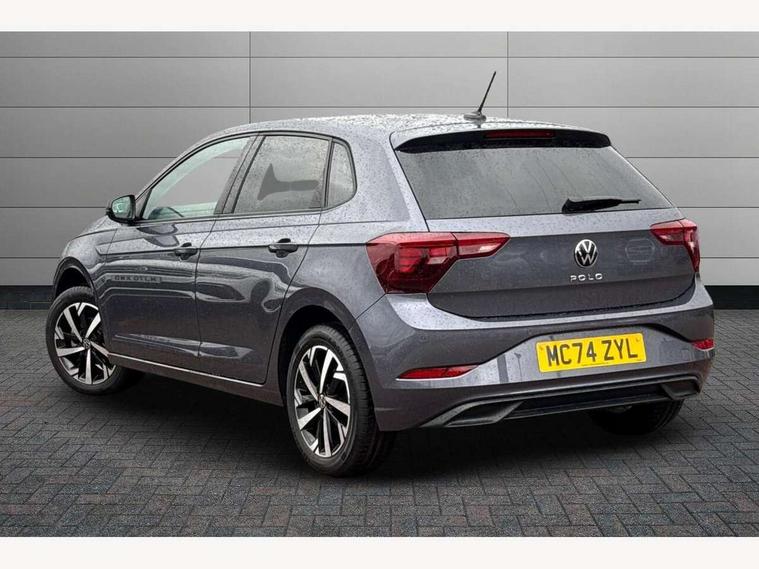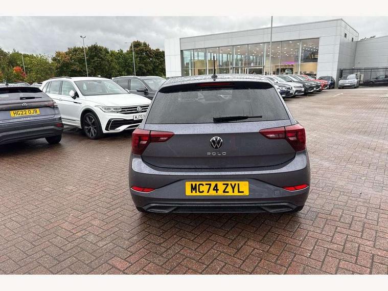 Advanced driver attention and drowsiness monitor, Bluetooth mobile phone interface, Dynamic road sign display, Emergency call service, Multifunction front facing camera for distance control, Park distance control, Power assisted speed sensitive steering, Predictive adaptive cruise control without follow-to-stop and speed limiter, Preparation for navigation system with media and internet package, Preparation for We connect and We connect plus, Rear view camera, Speedo and rev counter, electronic odometer, trip, service interval display and exterior temperature gauge, Standard rear axle, Travel Assist - Lane keeping system and traffic jam assist, Travel assist including emergency assist, Trip computer, Warning signal and warning light for front and rear seatbelts not fastened, Washer fluid level indicator, Wireless app connect, Front wheel drive, Rear shock absorpion, Start-stop system with battery regeneration (recuperation - energy recovery during braking), DAB Digital radio, Diversity antenna for FM reception, Front and rear 6 speakers, Automatic dimming interior rear view mirror, Automatic headlight control with LED separate daytime running lights with coming/leaving home function, Body colour bumpers with chrome inserts, Body colour door handles, Body colour door mirrors, Electric front windows, Engine badge deletion, Headlight range adjustment, Heat insulating and laminated safety glass windshield, LED Headlights, LED rear combination lamps, Power folding adjustable/heated exterior mirrors and front passenger exterior mirror lowering function, Rain sensor, Rear electric windows, Rear fog light, Rear side wing doors, Rear tinted glass from B-pillar backwards approx 65% tinted, Rear windscreen washer and wiper with interval delay, Third brake light, 12V power socket in centre console, 2 front and 2 rear reading lights with switch off delay and dimmer, 2 USB-C ports in the front, 2 USB-C charging sockets on the center console in the rear, 3 rear head restraints, 60/40 split folding rear seat and rear seat bench not split, Ceramique roof lining, Chrome plated radiator grille inserts, air vent surrounds and light switch surrounds, Door and side trim panel, Driver and front passenger seat height adjustment, Driver/passenger sunvisors with illuminated vanity mirrors, Front centre armrest, Front seat backrest storage pockets, Front standard seats, Handbrake lever handle in leather, Hartley/Thomas cloth upholstery, Headliner in recycled material, Isofix child seat preparation easy-fit (for two outer rear seats, and front passenger seat) compatible with I-size, Leather trimmed gear knob, Luggage compartment cover, Luggage compartment lighting, Removable luggage compartment floor, Single front passenger seat, Standard climatic zones, Standard pedal cluster, Three spoke leather wrapped multifunction steering wheel with shifting paddles, Light and vision pack - Polo, 3 point height adj front seatbelts + pretensioners, 3 point seat belt for centre rear seat, 3 point seatbelts, outer rear with ECE lable, ABS, Driver and front passenger airbag with front passenger airbag deactivation, Drivers and front passengers safety optimised head restraints, ESC (Electronic stability control) + EDL (Electronic Differntial lock) and ASR (Traction control), Extended and predictive pedestrian/ cyclist protection, Front assist with autonomous emergency braking (for Adaptive Cruise Control ACC up to 130 mph), Front curtain and side airbags with center airbag, Front disc brakes, Hill hold control, Manual child lock in rear doors, Rear drum brakes, Single tone horn, Tyre pressure loss indicator, Alarm with interior protection, Anti-theft alarm system with interior monitoring, backup horn, and towing protection, Anti-theft wheel bolts, Electronic engine immobiliser, Lava stone black gloss/matt decorative inserts in dash and front door panels, 16" Torsby alloy wheels, Low rolling resistance tyres,