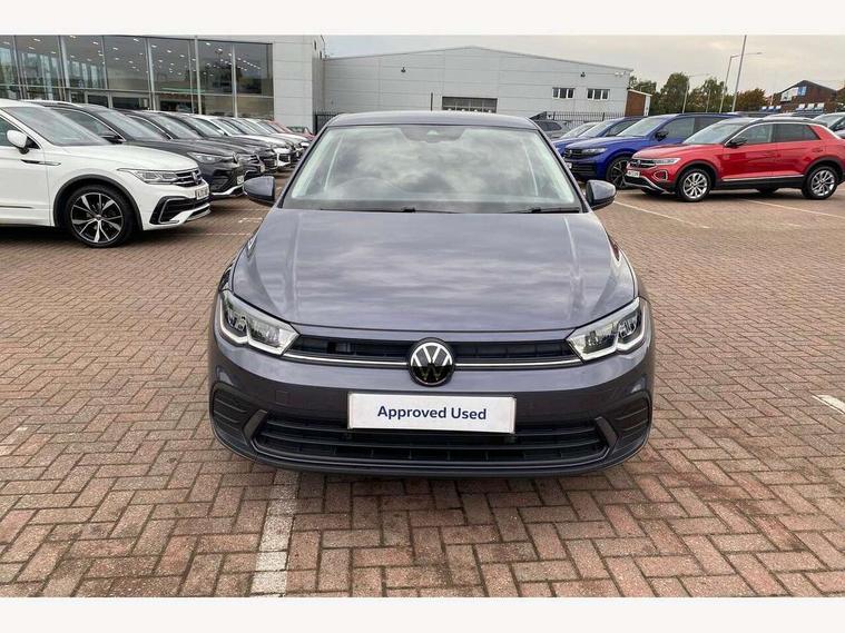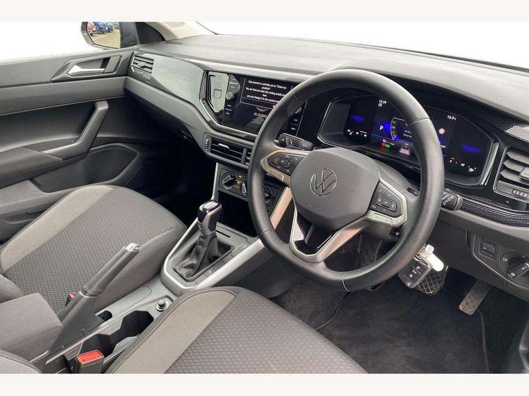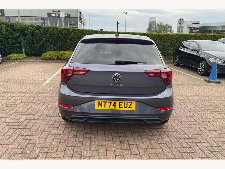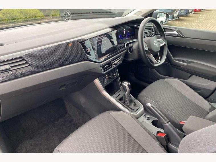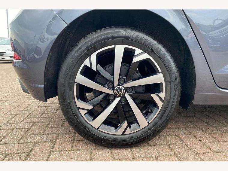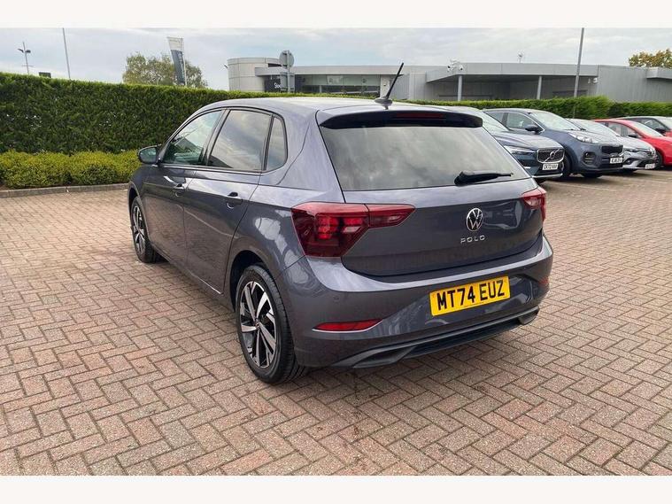 Advanced driver attention and drowsiness monitor, Bluetooth mobile phone interface, Dynamic road sign display, Emergency call service, Multifunction front facing camera for distance control, Park distance control, Power assisted speed sensitive steering, Predictive adaptive cruise control without follow-to-stop and speed limiter, Preparation for navigation system with media and internet package, Preparation for We connect and We connect plus, Rear view camera, Speedo and rev counter, electronic odometer, trip, service interval display and exterior temperature gauge, Standard rear axle, Travel Assist - Lane keeping system and traffic jam assist, Travel assist including emergency assist, Trip computer, Warning signal and warning light for front and rear seatbelts not fastened, Washer fluid level indicator, Wireless app connect, Front wheel drive, Rear shock absorpion, Start-stop system with battery regeneration (recuperation - energy recovery during braking), DAB Digital radio, Diversity antenna for FM reception, Front and rear 6 speakers, Automatic dimming interior rear view mirror, Automatic headlight control with LED separate daytime running lights with coming/leaving home function, Body colour bumpers with chrome inserts, Body colour door handles, Body colour door mirrors, Electric front windows, Engine badge deletion, Headlight range adjustment, Heat insulating and laminated safety glass windshield, LED Headlights, LED rear combination lamps, Power folding adjustable/heated exterior mirrors and front passenger exterior mirror lowering function, Rain sensor, Rear electric windows, Rear fog light, Rear side wing doors, Rear tinted glass from B-pillar backwards approx 65% tinted, Rear windscreen washer and wiper with interval delay, Third brake light, 12V power socket in centre console, 2 front and 2 rear reading lights with switch off delay and dimmer, 2 USB-C ports in the front, 2 USB-C charging sockets on the center console in the rear, 3 rear head restraints, 60/40 split folding rear seat and rear seat bench not split, Ceramique roof lining, Chrome plated radiator grille inserts, air vent surrounds and light switch surrounds, Door and side trim panel, Driver and front passenger seat height adjustment, Driver/passenger sunvisors with illuminated vanity mirrors, Front centre armrest, Front seat backrest storage pockets, Front standard seats, Handbrake lever handle in leather, Hartley/Thomas cloth upholstery, Headliner in recycled material, Isofix child seat preparation easy-fit (for two outer rear seats, and front passenger seat) compatible with I-size, Leather trimmed gear knob, Luggage compartment cover, Luggage compartment lighting, Removable luggage compartment floor, Single front passenger seat, Standard climatic zones, Standard pedal cluster, Three spoke leather wrapped multifunction steering wheel with shifting paddles, Light and vision pack - Polo, 3 point height adj front seatbelts + pretensioners, 3 point seat belt for centre rear seat, 3 point seatbelts, outer rear with ECE lable, ABS, Driver and front passenger airbag with front passenger airbag deactivation, Drivers and front passengers safety optimised head restraints, ESC (Electronic stability control) + EDL (Electronic Differntial lock) and ASR (Traction control), Extended and predictive pedestrian/ cyclist protection, Front assist with autonomous emergency braking (for Adaptive Cruise Control ACC up to 130 mph), Front curtain and side airbags with center airbag, Front disc brakes, Hill hold control, Manual child lock in rear doors, Rear drum brakes, Single tone horn, Tyre pressure loss indicator, Alarm with interior protection, Anti-theft alarm system with interior monitoring, backup horn, and towing protection, Anti-theft wheel bolts, Electronic engine immobiliser, Lava stone black gloss/matt decorative inserts in dash and front door panels, 16" Torsby alloy wheels, Low rolling resistance tyres,