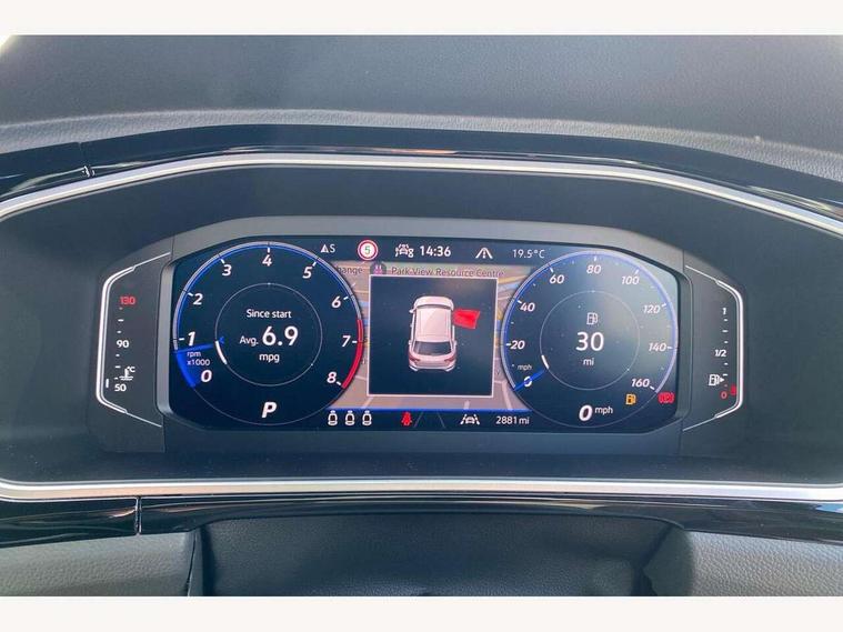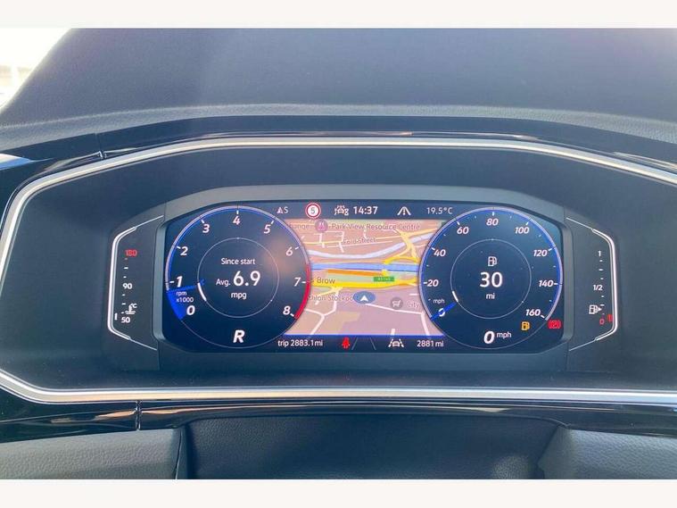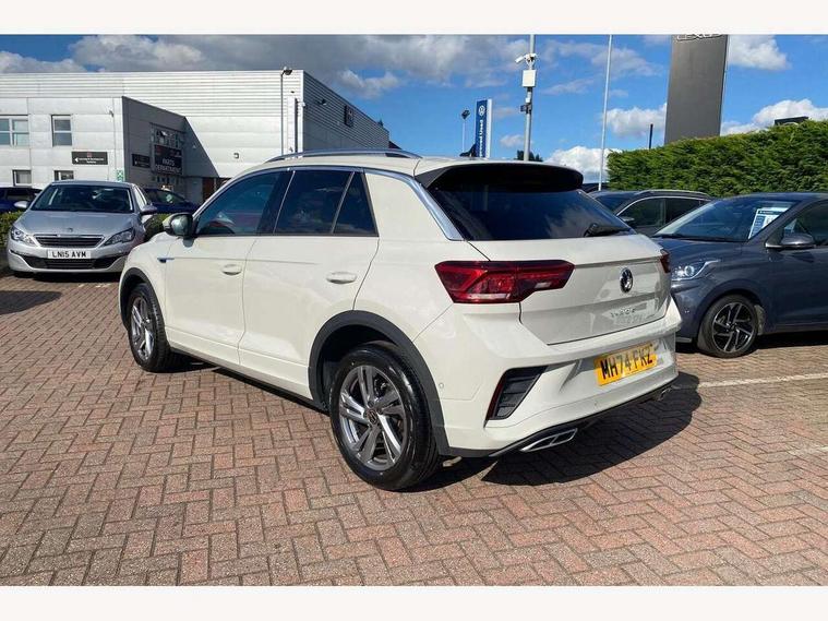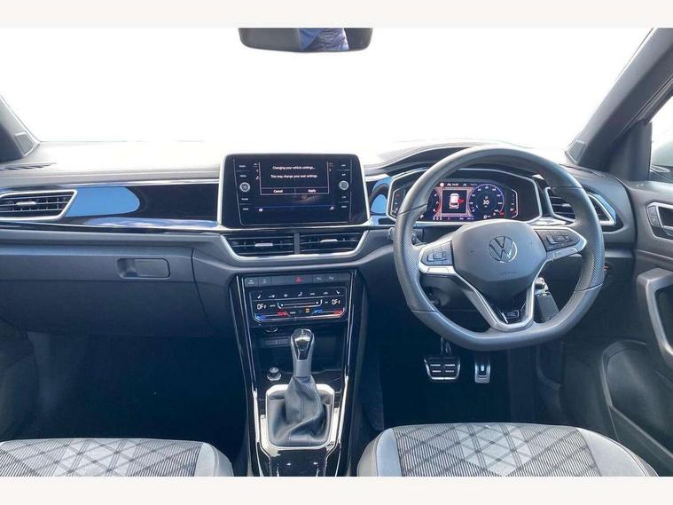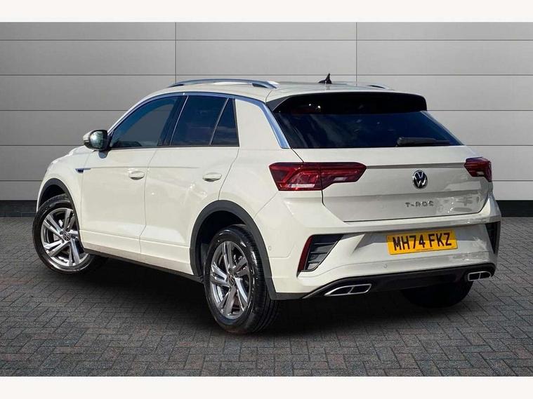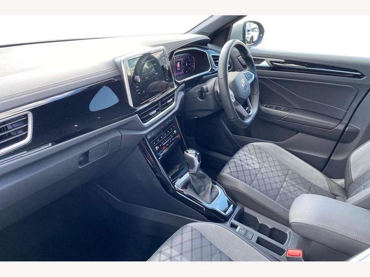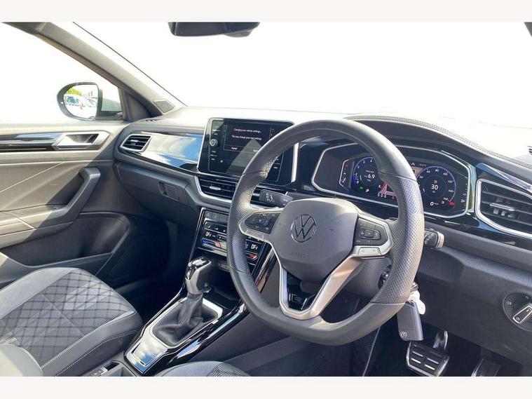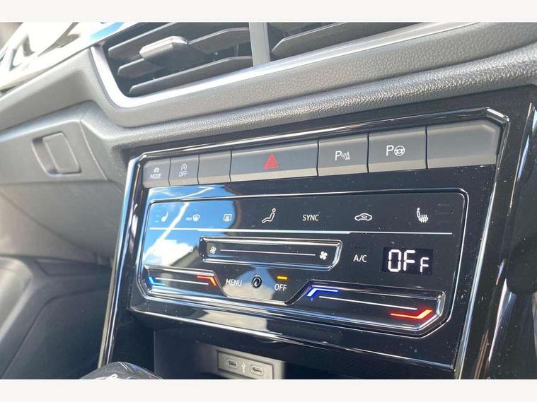 10.25" Digital cockpit pro, Advanced driver attention and drowsiness monitor, Emergency call service, Lane keeping system Lane Assist, Mobile phone interface, Modified key software - reduce switch off time for key status change to Long no motion, Online services, Park assist including front and rear parking sensors, Service interval indicator, Tailgate/trunk lid release from outside, Think blue trainer driver tips and journey analysis, Warning sound and light for front seatbelts unfastened, Wireless app connect, Battery regeneration during braking, Start/stop function with battery regeneration, DAB Digital radio, Diversity antenna for FM reception, Front and rear 6 speakers, Music playback - MP3, WMA and AAC files, Premium USB cable in choice of either Apple or Android smartphone compatibility, SD card slot, Simultaneous pairing of 2 compatible mobile devices, Title and cover art display, We Connect and We Connect Plus functionality, Auto dimming interior rear view mirror, Automatic hazard lights activation under emergency braking, Automatic headlight control with LED separate daytime running lights with coming/leaving home function, Body coloured exterior mirror housings and door handles, Electrically adjustable and heated door mirrors, Extended roof spoiler, Exterior mirrors aspherical on driver side, convex on front passenger side, External USB type C socket and charging sockets, Front windscreen wiper with intermittent wipe and 4 position delay, Heated rear window, LED 3rd brake light, LED rear combination lamps, LED rear number plate lights, Power windows with comfort operation and circuit breaker, Privacy glass for rear side windows and rear window, R-Line design body coloured bumpers, Rain sensor, Rear exhaust tailpipe, Rear fog light on one side and reversing lights on both sides, Rear side wing doors, Rear wash/wipe with intermittent wipe setting, Remote electrically foldable door mirrors, puddle lights and reverse activated passenger's door mirror, 12V power socket in centre console, 3 rear head restraints, 3 seat bench in 2nd row, 4 load lashing points in luggage compartment, Air care climatronic air conditoning system with active combination filter and 2-zone temperature control, Black roof lining, Chrome plated decorative trims, Chrome plated radiator grille inserts, air vent surrounds and light switch surrounds, Door and side trim panel with leatherette insert, Front + rear carpet mats, Front centre armrest, Front cupholders x 2, Front footwell illumination, Front reading light, Front scuff plates with R Line logo, Front seat back storage pockets, Glove compartment door with light, Instrument lighting, white adjustable panel illumination, Interior ambient lighting and surround lighting, Interior light delay, Isofix child seat preparation, Leather gearshift handle, Load-through provision with cup holder when folded down ('Unsplit rear seat bench, split folding backrest, with centre armrest), Luggage compartment lighting, Single front passenger seat, Stainless steel pedals, Storage compartment in left and right luggage area, Storage compartment in rear doors, Storage compartments in driver and front passenger doors, Sunvisors with illuminated vanity mirrors, Variable boot floor, height adjustable and removable, Driver assistance pack without proactive passenger protection - T-Roc, 3 point height adj front seatbelts + pretensioners, 3 point seatbelts in outer rear with ECE label, ABS, Child locks on rear doors, City emergency braking and pedestrian monitoring, Driver and front passenger airbag with front passenger airbag deactivation, Driver and front passenger safety-optimised head restraints, Drivers seatbelt reminder, Electronic parking brake, Electronic Stability Control (ESC) inc EDL (Electronic Differential Lock) and ASR (Traction Control), Front and rear passengers curtain airbag system including front side airbags, Hill start assist, Predictive pedestrian protection, Rear disc brakes, Two tone horn, Tyre pressure loss indicator, Volkswagen roadside assistance, Piano black decorative inserts in dashboard and front door trim panels, Trims for alloy wheels,