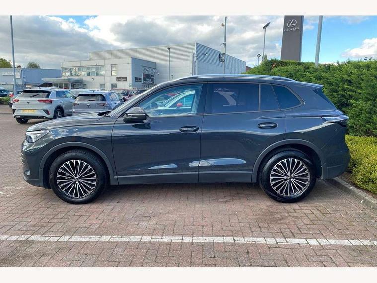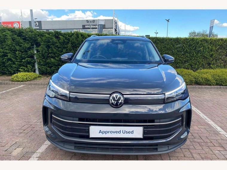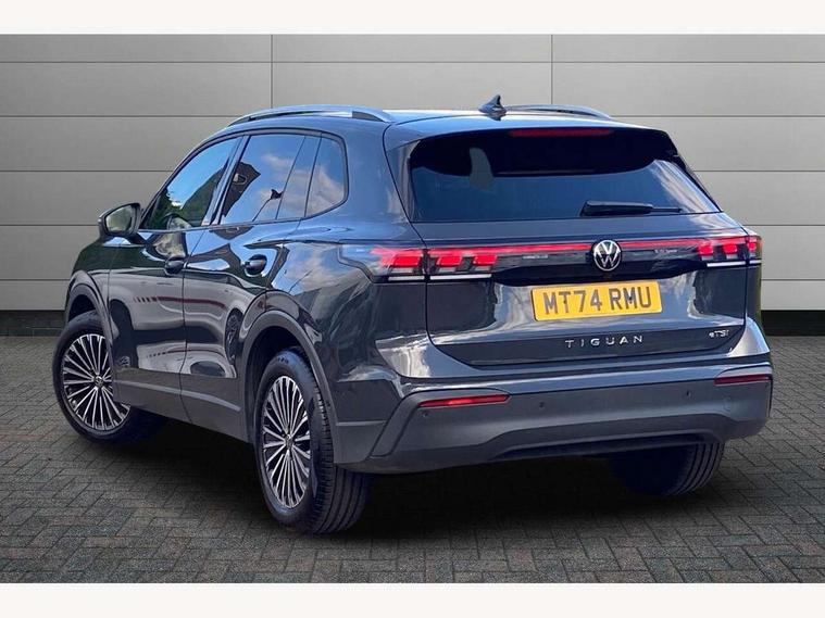 Adaptive cruise control (ACC), Advanced driver attention and drowsiness monitor, Bluetooth mobile phone interface, Car2X technology, Digital Cockpit Pro - 10.25" high resolution dash display screen with customisable menus and information, Dynamic road sign display, E-Sim card for online connectivity, eCall emergency call service, Front Assist - Autonomous emergency braking with pedestrian and cyclist monitoring, Lane change system, Side assist, Rear traffic alert and Exit warning system, Lane keeping system Lane Assist, Multifunction front facing camera, Oncoming vehicle braking when turning including swerve support, Park assistance plus with front and rear parking sensors, Power assisted steering with speed sensitive, Start/stop system with regenerative braking, Warning signal and warning light for front and rear seatbelts not fastened, Wireless App-Connect, Front wheel drive, Digital radio reception (DAB), Diversity antenna for FM reception, Ambient lighting with logo projection, Auto dimming interior rear view mirror, Automatic headlight control system, Body coloured bumpers and air intake with chrome trim, Body coloured door handles, Body-coloured exterior mirror housings, Coming/leaving home lighting function, Heat insulating glass in side and rear windows, Heat insulating windshield, Heated rear window, High level 3rd brake light, Illuminated door handle recesses, Illuminated lightline between headlamps, Rain sensor windscreen wipers, Rear fog light on one side, reversing light on both sides, Rear side wing doors, Rear wiper, 12V outlet in center console rear and in luggage compartment, 12V socket in centre console, 3 bench rear seats in 2nd row, Air care climatronic 3 zone air conditioning system with rear air conditioning control panel, Carpet mats, front and rear, Centre console with illuminated storage compartment with sliding cover and two drinks holders, Ceramique headlining, Door and side trim panel in foam film and woven fabric, Front centre armrest, ISOFIX anchors for child seats on outer rear seats and front passenger seat. Compatible with i-Size, Mechanical rear seat release, Power adjustable lumbar support in front, Rear bench seat, split folding, longitudinally movable and folding with load-through hatch and centre armrest, Safety optimised front head restraints, Single front passenger seat, Sun visors with illuminated vanity mirrors, Three rear head restraints, Variable luggage compartment floor, Comfort package with park assist pro - Tiguan, Design package - Tiguan, 3 point seat belt for centre rear seats, 3 Point seat belts in front with pretensioners, 3 point seatbelts in outer rear with ECE label, Driver and front passenger airbag with front passenger airbag deactivation, Electronic parking brake with auto hold, Front and rear curtain airbags, Front and rear side airbags, Front centre airbag, Front disc brakes, Manual child proof rear door locks, Rear disc brakes, Two tone horn, Warning triangle, Anti theft wheel bolts, Soul instrument panel, Airstop tyres,
