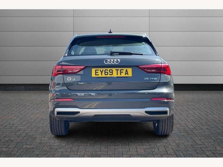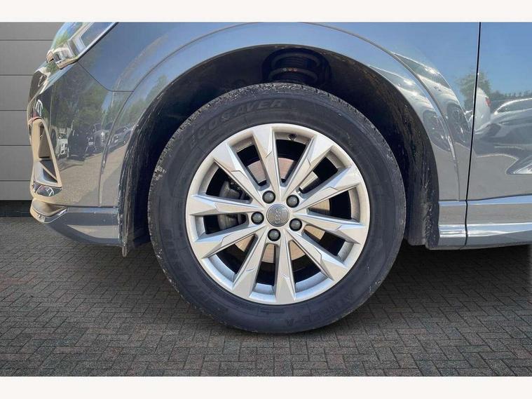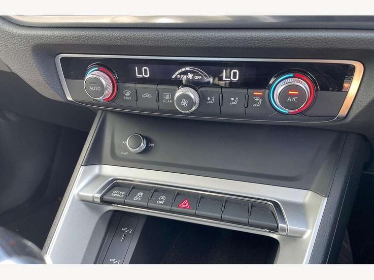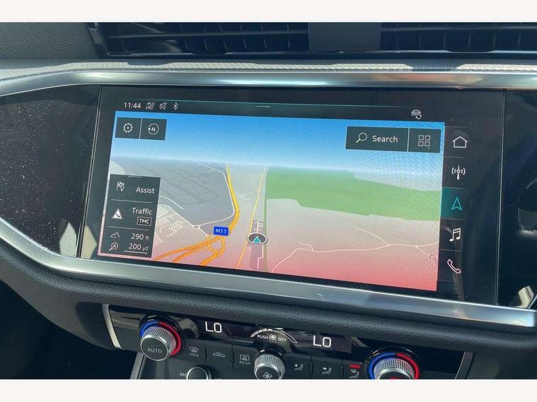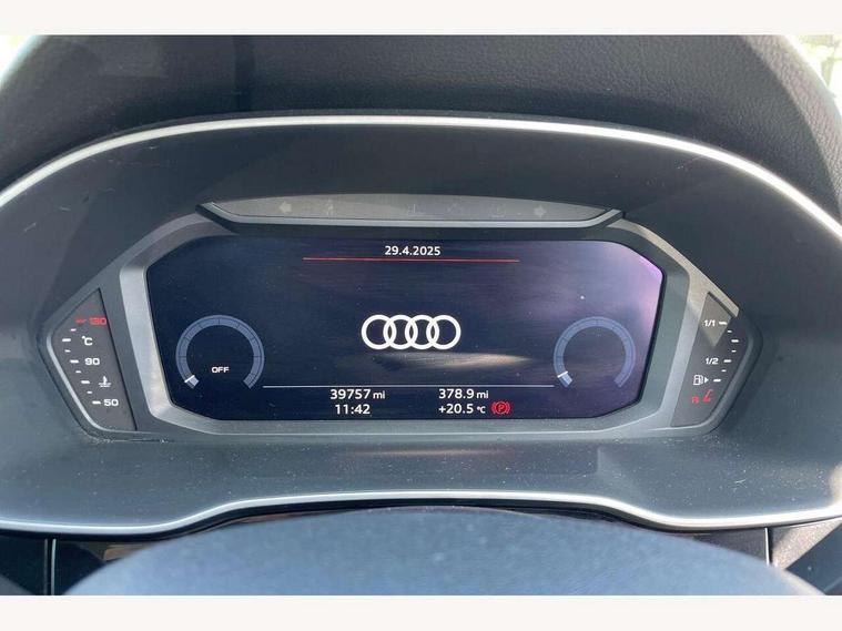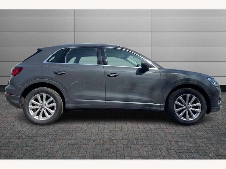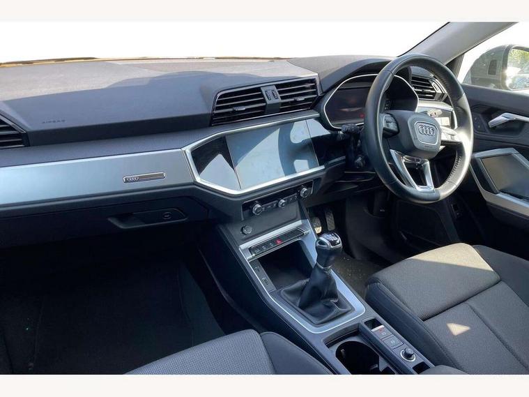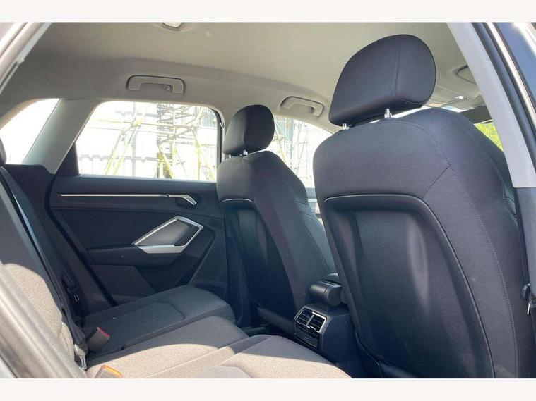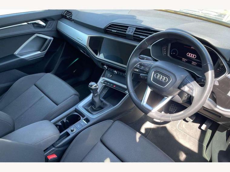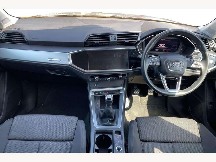 Audi connect safety and service (e-call), Audi drive select, Audi lane departure warning, Audi side assist, Audi smartphone interface, Audi Virtual Cockpit - 10.25" display, Bluetooth interface, Camera based traffic sign recognition, Cruise control + speed limiter, MMI navigation plus with MMI touch, Power opening/closing tailgate, Progressive steering, Rear parking sensors, Service interval indicator, Stop/start system, Voice control system, Standard suspension, 1 x USB type C and 1 USB type A charging points, 6 speakers, DAB digital radio module, Acoustic windscreen, Aluminium roof rails, Aluminium window trim, Auto dimming rear view mirror, Body coloured bumpers, Electrically adjustable and heated door mirrors with integrated LED side indicators, Front and rear electric windows, Front fog lights, Front side air inlets in matt selenite silver, Front spoiler in matt selenite silver, Grille vertical bars in aluminium silver/Matt, High gloss black finish B and C pillars, LED headlights with LED daytime running lights and dynamic rear indicator, LED rear lights, Rain and light sensors, Rear diffuser strip in selenite silver, Titanium black radiator grille, 12V socket in rear centre console, 40:20:40 split folding rear bench seat, Adjustable rear seat bench/backrest, Aluminium door sill trims, Dual zone climate control, Front and rear headrests, Front and rear roof module including reading lights, Front and rear velour floor mats, Front centre armrest with storage compartment and angle adjustment, Glove compartment lighting, Height and reach adjustable steering wheel, ISOFIX child seat mounting and Top Tether with front passenger airbag deactivation, Luggage compartment light, Lunar silver cloth headlining, Manual front seats with height adjustment, Stainless steel luggage compartment sill finisher, Non smoking pack - Q3, 3x3 point rear seatbelts, 6 airbags - Driver, front passenger, curtain and side windows, Audi pre-sense front with pedestrain and cyclist recognition, Electrically operated child locks on rear doors, Electromechanical parking brake, Electronic stabilisation control including ABS, ASR and EDL, Hill descent control, Hill hold assist, Pre sense basic, Seatbelt monitoring, Tyre pressure warning, Warning triangle and first aid kit, Anti theft alarm, Anti theft wheel bolts, Remote central locking, MMI touch colour display in gloss black with aluminium surround,