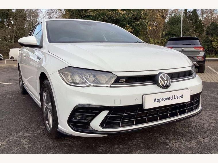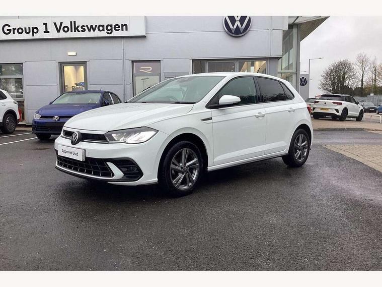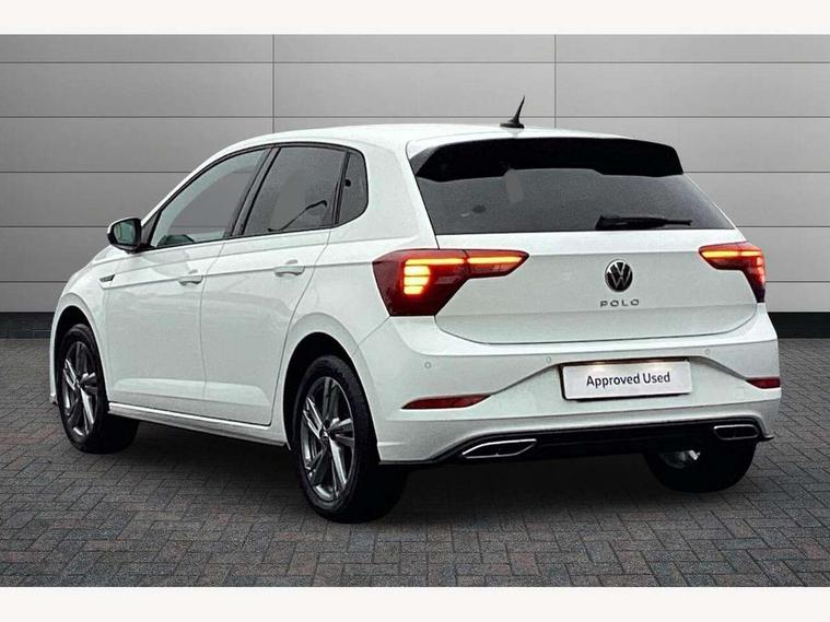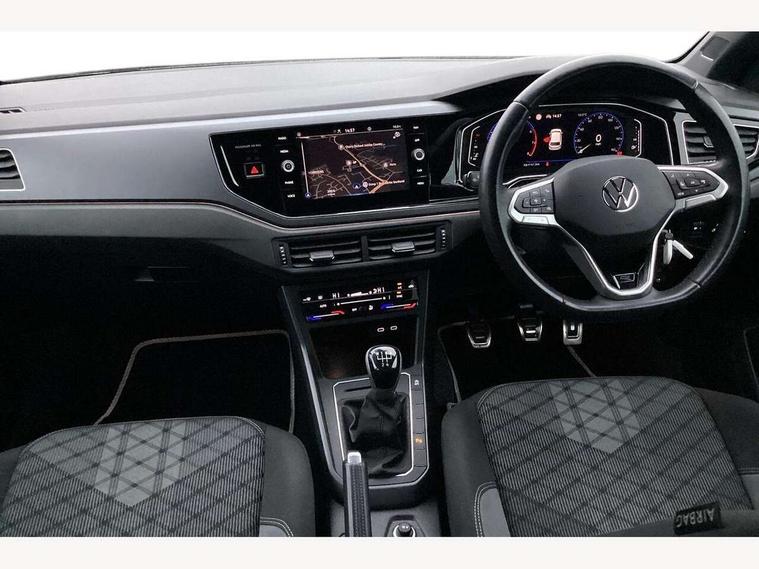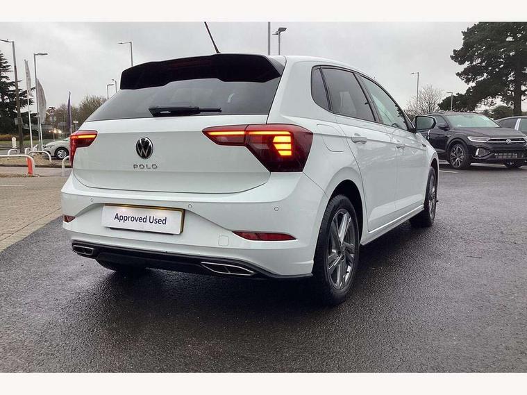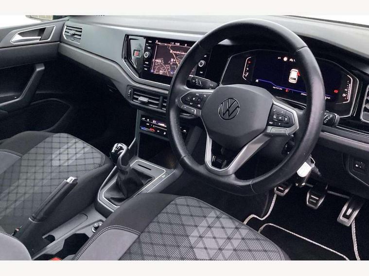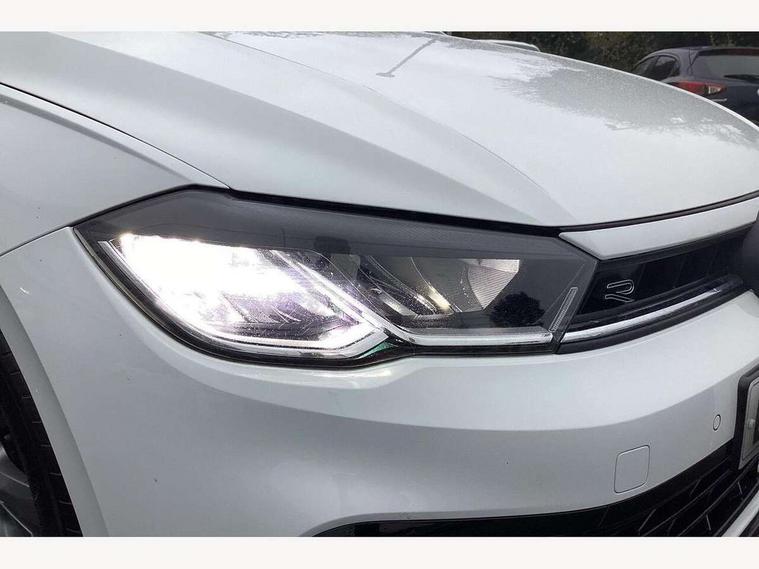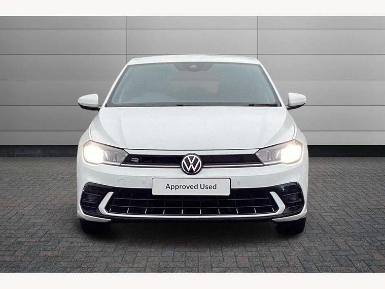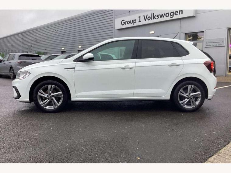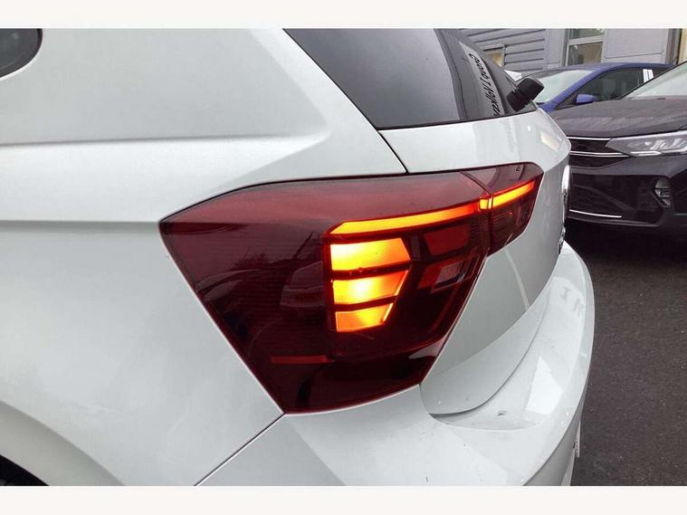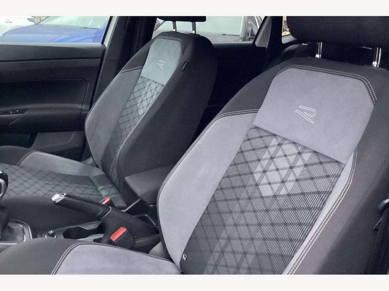 Adaptive cruise control without follow-to-stop and speed limiter, Bluetooth mobile phone interface, Digital Cockpit Pro with 10.25" Display, Driver alert system, Dynamic road sign display, Emergency call service, Power assisted speed sensitive steering, Preparation for We connect and We connect plus, Speedo and rev counter, electronic odometer, trip, service interval display and fuel gauge, Standard rear axle, Travel Assist - Lane keeping system and traffic jam assist, Travel assist including emergency assist, Trip computer, Warning signal and warning light for front and rear seatbelts not fastened, Washer fluid level indicator, Wireless app connect, Front wheel drive, Rear shock absorpion, Start-stop system with battery regeneration (recuperation - energy recovery during braking), DAB Digital radio, Diversity antenna for FM reception, Front and rear 6 speakers, Body colour bumpers, Body colour door handles, Body colour door mirrors, Electric front windows, Front scuff plates with R-Line logo, Heat insulating darkened glass in side and rear windows, Heat insulating glass windscreen, Power folding adjustable/heated exterior mirrors and front passenger exterior mirror lowering function, Rear electric windows, Rear fog light, Rear side wing doors, Rear tinted glass from B-pillar backwards approx 65% tinted, Rear windscreen washer and wiper with interval delay, Third brake light, 12V power socket in centre console, 2 USB-C ports in the front, 2 USB-C charging sockets on the center console in the rear, 3 rear head restraints, 60/40 split folding rear seat and rear seat bench not split, Air care climatronic air conditoning system with active combination filter and 2-zone temperature control, Black roof lining, Ceramique headliner, Chrome plated radiator grille inserts, air vent surrounds and light switch surrounds, Door and side trim panel, Driver and front passenger seat height adjustment, Driver/passenger sunvisors with illuminated vanity mirrors, Front + rear carpet mats, Front centre armrest, Front footwell illumination, Front seat backrest storage pockets, Front sports comfort seats, Handbrake lever handle in leather, Isofix child seat preparation easy-fit (for two outer rear seats, and front passenger seat) compatible with I-size, Karoso artvelours cloth upholstery, Leather trimmed gear knob, LED interior light with switch off delay and dimmer, 2 reading lights front and rear, Luggage compartment cover, Luggage compartment floor, Luggage compartment lighting, Lumbar adjustment for front seats, Multifunction steering wheel, Single front passenger seat, Stainless steel pedals, Standard pedal cluster, Light and sight pack - Polo R-Line/Black Edition, 3 point height adj front seatbelts + pretensioners, 3x3 point rear seatbelts, ABS, Driver and front passenger airbag with front passenger airbag deactivation, Drivers and front passengers safety optimised head restraints, ESC (Electronic stability control) + EDL (Electronic Differntial lock) and ASR (Traction control), Extended and predictive pedestrian/ cyclist protection, Front curtain and side airbags with center airbag, Hill hold control, Manual child lock in rear doors, Single tone horn, Tyre pressure loss indicator, Alarm with interior protection, Anti-theft alarm system with interior monitoring, backup horn, and towing protection, Anti-theft wheel bolts, Electronic engine immobiliser, Chrome applications on rotary light, mirror adjustment, window regulator switches, outlet with frame in black, Dark grey anodised matt decorative inserts in dash and front door panels, Low rolling resistance tyres,