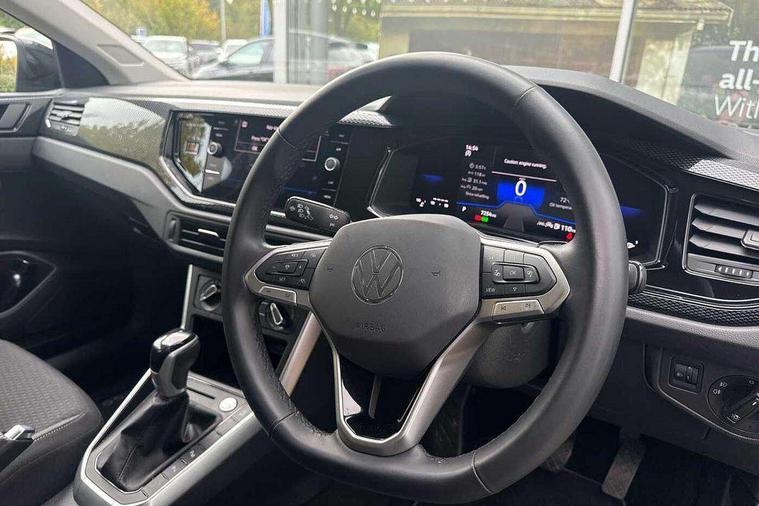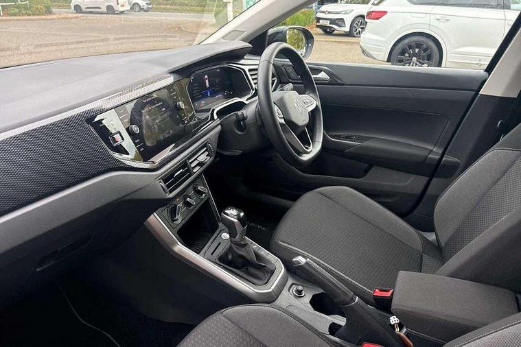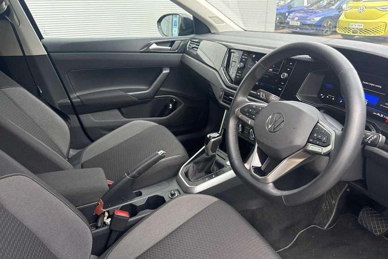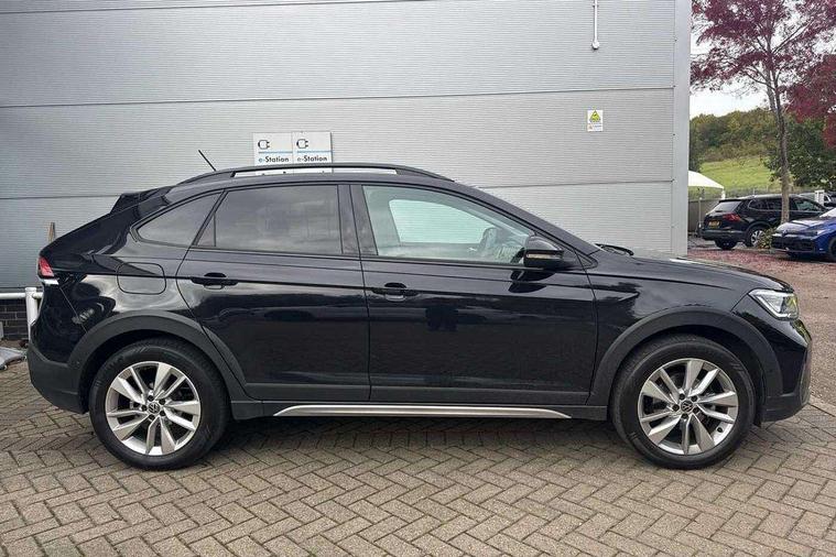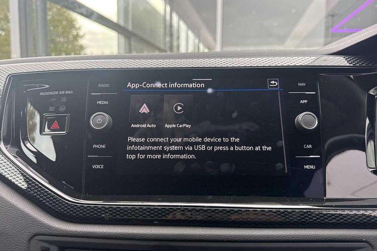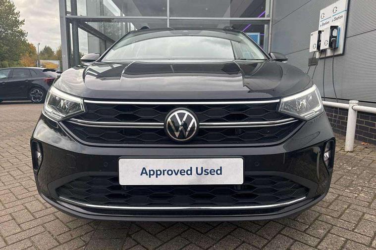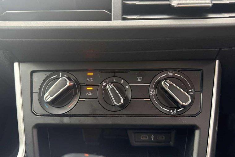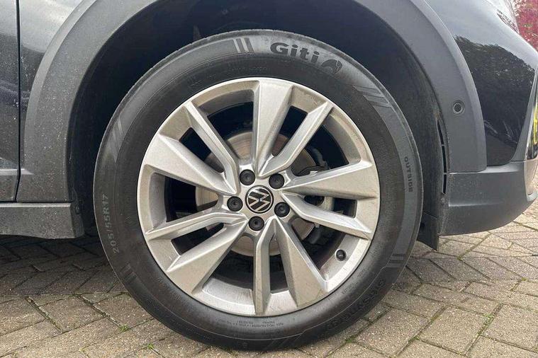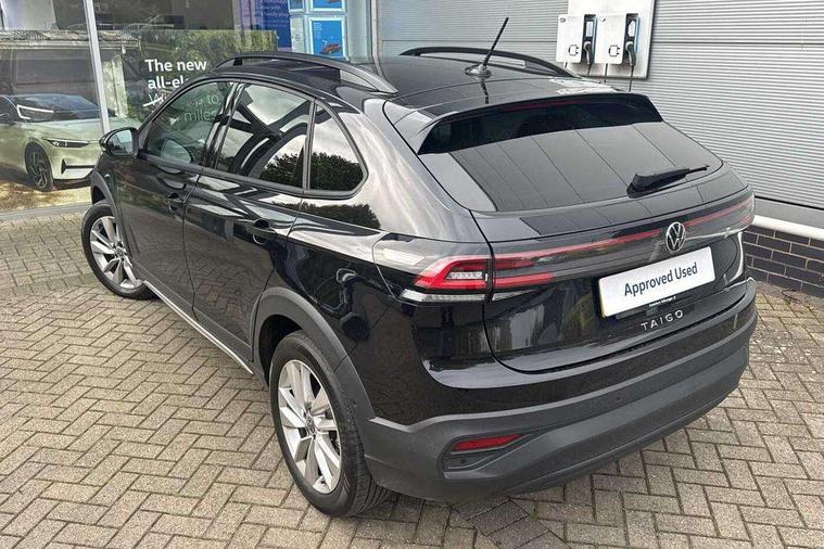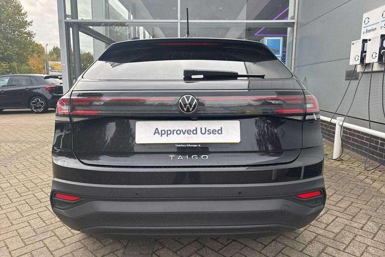 Adaptive cruise control, Advanced driver attention and drowsiness monitor, Dynamic road sign display, e-Call (emergency call), Power Steering, Rear view camera, Travel assist including emergency assist, Washer fluid level indicator, Wireless Charging including Bluetooth, Start-stop system with battery regeneration (recuperation - energy recovery during braking), WeConnect plus, Ambient lighting with logo projection, Aspherical driver's exterior mirror, Body coloured bumpers, Body coloured exterior mirror housings and door handles, Electric windows, External USB type C socket and charging sockets, Heat insulating glass windscreen, LED rear combination lamp, LED third brake light, Left convex exterior mirror, Power folding adjustable/heated exterior mirrors and front passenger exterior mirror lowering function, Rear fog light on one side, reversing light on both sides, Rear side wing doors, Rear wash/wipe with intermittent wipe setting, Side windows in heat-insulating glass, from B-pillar and rear window dark tinted, 'Slash/ Austin' Cloth upholstery, 12V socket in centre console, 2 front reading lights, 3 rear head restraints, 3 seat bench in 2nd row, Black carpets, Ceramique headliner, Child seat anchor for child seat system i-Size, 2x top tether and child seat anchor in front on front passenger side, Door and side trim panels in titan black, Driver and front passenger seat height adjustment, Front centre armrest, Handbrake lever handle in leather, Height and reach adjustable steering wheel, Leather trimmed gear knob, Leather wrapped multifunction steering wheel with paddle shift, Luggage compartment floor, Luggage compartment light, Lumbar support for driver's and front passengers seat, Seat covers in titanium black, Single front passenger seat, Split folding backrest with centre armrest and unsplit rear seat bench, Storage compartment under front seats, Sun visors with illuminated vanity mirrors, Titanium black instrument panel, Chrome Package - Taigo, Drivers assistance package - Taigo, Light and sight pack - Taigo, 2 x 3-point seatbelts/outer rear seats with ECE label, 3-point seat belts in front with pretensioner and height adjustment, 3-point seatbelt for centre rear seat, Driver and front passenger airbag with front passenger airbag deactivation, Driver and front passenger safety-optimised head restraints, Electronic stability control, Extended and predictive pedestrian/ cyclist protection, Front and rear disc brakes, Front curtain and side airbags with center airbag, Hill start assist, Manual rear child locks, Single tone horn, Tyre pressure loss indicator, Anti-theft alarm system with interior monitoring, backup horn, and towing protection, Keyless locking and starting system keyless access with safelock, Black (slush) Dashboard, Lava stone black gloss/matt decorative inserts in dash and front door panels, Low rolling resistance tyres,