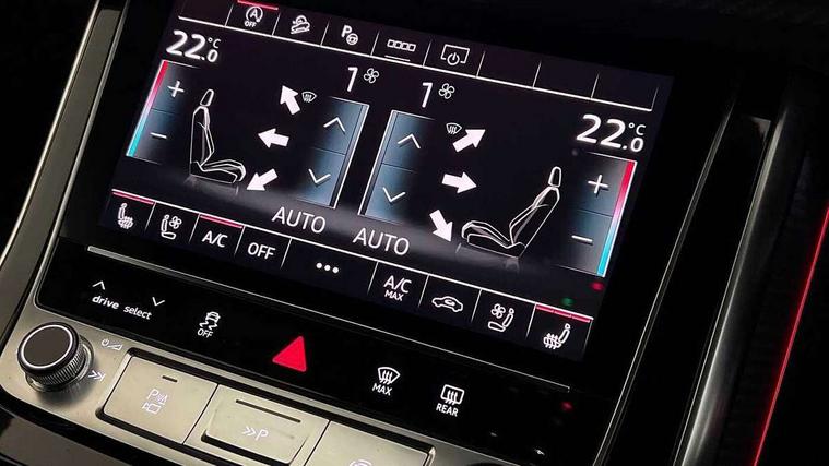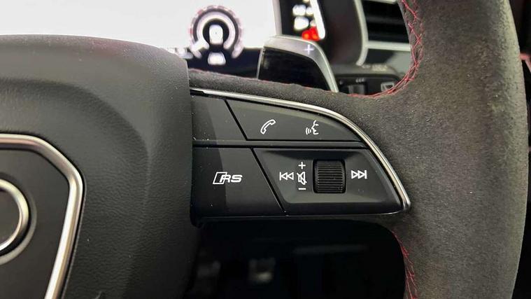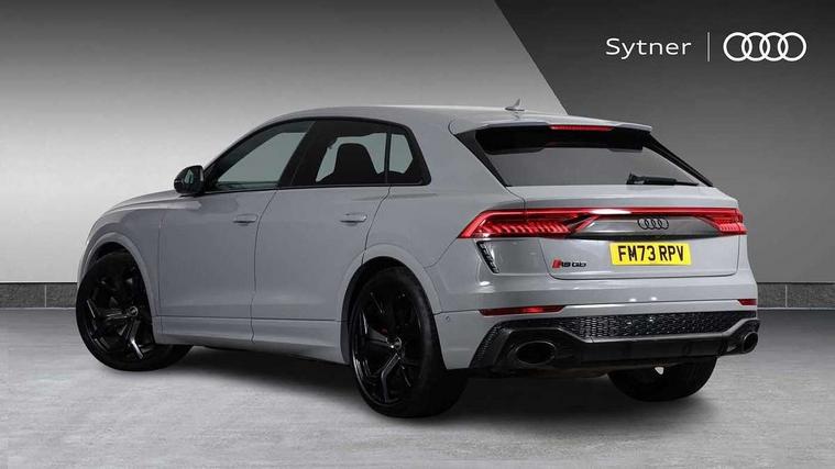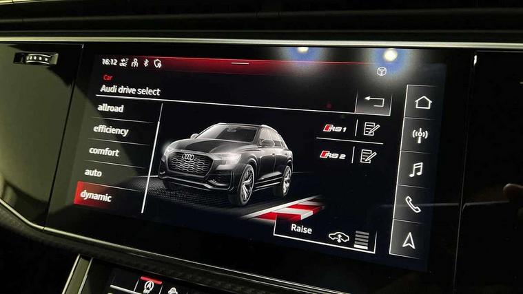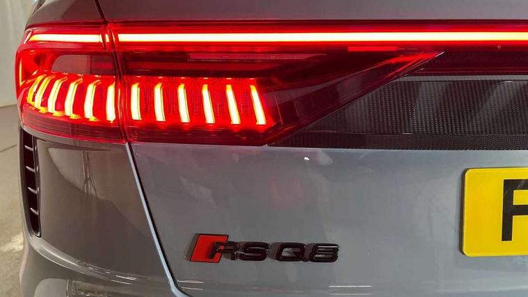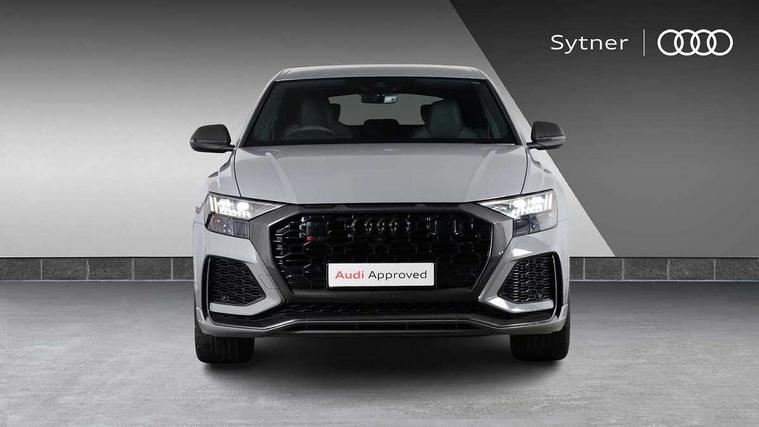 10.1" and 8.6" Dual colour touchscreens, All wheel steering, Audi connect safety and service (e-call), Audi connect with Amazon Alexa Integration, Audi parking system plus includes 360 degree display with front and rear sensors, Audi smartphone interface includes wireless Apple carplay/Android Auto, Audi virtual cockpit - 12.3" high resolution LCD display with fully customisable instrument cluster and RS specific menus and options, Automatic start/stop system, Bluetooth interface, Electro-mechanical PAS, MMI navigation plus with MMI touch, Natural voice recognition, On board computer, Operating buttons in black, glass look with haptic feedback, Power operated tailgate, Rear view camera, RS Audi drive select, Service interval indicator, 48V Mild hybrid technology, Electromechanical active roll stabilisation, Quattro all wheel drive with sport differential, RS specific Adaptive air suspension, Audi music interface in rear - 2 USB ports with charger and data functions in rear, Audi sound system with 6 channel amplifier, 180 watt amplifying capacity and 10 loudspeakers including subwoofer, Aux-in socket, DAB Digital radio, Audi Beam uses LEDs to project the Audi logo, Audi HD Matrix LED headlights in RS specific design with dynamic front and rear indicators, Auto dimming frameless rear view mirror, Carbon exterior door mirrors, Electric front+rear windows, Electrically folding auto dimming/adjustable/heated door mirrors with memory function, LED side indicators and kerb view function for passenger side, Gloss black finish for exterior Audi rings and RS Q8 logo, Headlight washers, Heat insulating glass in windshield, Illuminated door sill trims with RS logo, LED 3rd brake light, LED signature daytime running lights, Privacy glass - dark tinted rear and rear side windows from B-pillar backwards, Rain and light sensors, Rear side wing doors, Rear wiper, RS badges on front wings, RS coming/leaving home animations in front and rear, RS manhattan grey front spoiler lip and rear diffuser insert, RS manhattan grey grille surround with honeycomb grille insert in black, RS specific bumpers in full body colour paint finish, RS sport exhaust system with black exhaust tips, 3 bench rear seats in 2nd row, 4 zone automatic climate control, 4-way lumbar support for front seats, 40:20:40 split folding rear bench seat, Black cloth headlining, Comfort front centre armrest, Double sun visor with illuminated vanity mirror on driver and passenger side extendable, Driver and front passenger seat memory function for electrically adjustable front seats, Electric adjustable steering column with memory functionality, Electric sunblind for the rear side windows and manual sunblind for the rear window, Front head restraints, Front seat ventilation operated through MMI system, Heated front seats, ISOFIX child seat mounting for front passenger seat and 2 outer rear seats with top tether child seat mounting for all 3 rear seats, Luggage compartment sill protection in stainless steel, Perforated Valcona leather upholstery + RS front super sports seats + honeycomb pattern with RS embossed logo, Rear headrests, Rear seat bench plus, Single front passenger seat, Stainless steel pedals, Air quality package - RS Q8, Carbon styling pack - RS Q8, Multi-coloured extended LED interior lighting pack - RS Q8, RS specific styling pack - RS Q8, 3 point seatbelts on all seats, Audi pre sense front, Child locks on rear doors, Driver and front passenger, front side and curtain airbags, Electromechanical parking brake, Electronic Stability Control (ESC) including ABS, ASR and EDL, Front passenger airbag deactivation, Hill descent control, Hill hold assist, Predictive pedestrian protection, Seatbelt monitoring, Tyre pressure loss indicator, Warning triangle and first aid kit, Advanced key, Anti theft alarm with tow away protection, Anti-theft wheel bolts and wheel loosening detection, Immobiliser, Matte carbon twill inlays, 23" x 10.5J 5 Y spoke rotor design Audi sport alloy wheels in gloss black, Tool kit, Tyre repair kit,