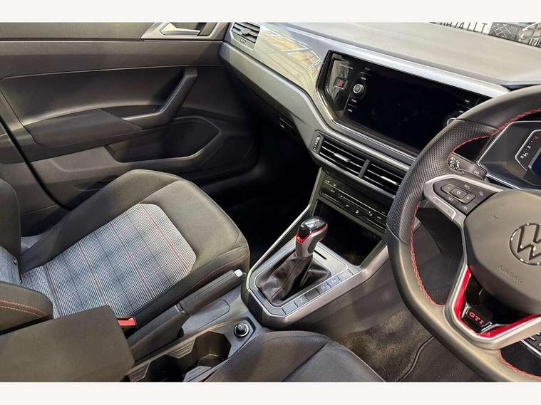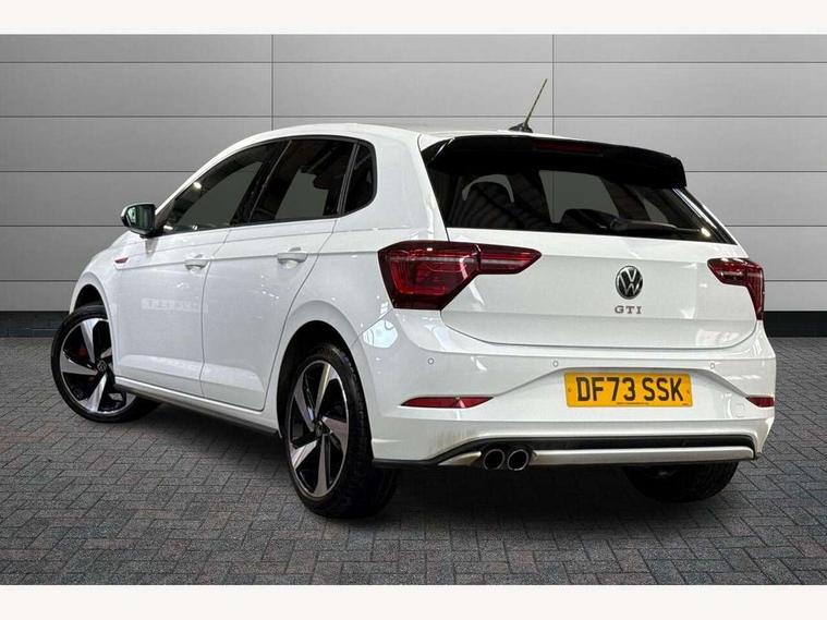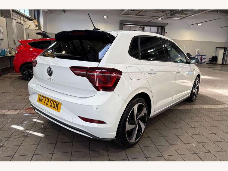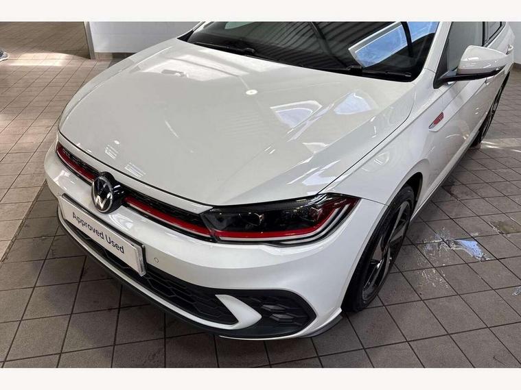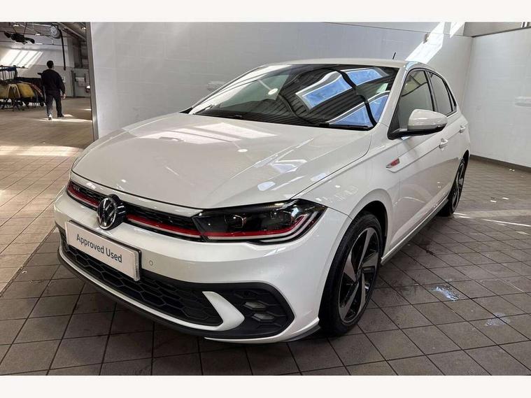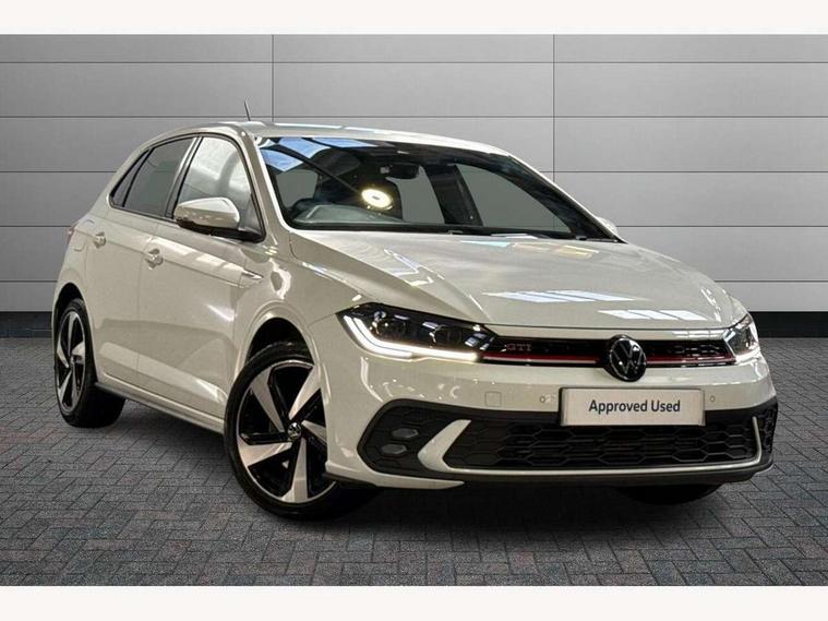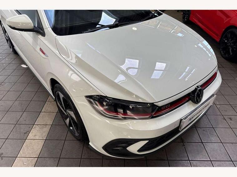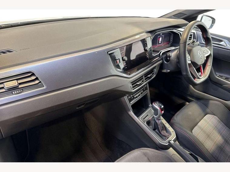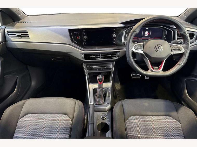 Adaptive cruise control with follow-to-stop and speed limiter, Bluetooth mobile phone interface, Digital Cockpit Pro with 10.25" Display, Driver alert system, Dynamic road sign display, Eco mode, Emergency call service, Power assisted speed sensitive steering, Preparation for We connect and We connect plus, Speedo and rev counter, electronic odometer, trip, service interval display and fuel gauge, Travel Assist - Lane keeping system and traffic jam assist, Travel assist including emergency assist, Trip computer, Warning signal and warning light for front and rear seatbelts not fastened, Washer fluid level indicator, Wireless app connect, Adaptive chassis control, Front wheel drive, Heavy duty rear axle, Rear shock absorpion sports version, Sports select suspension lowered by 15mm, Start-stop system with battery regeneration (recuperation - energy recovery during braking), DAB Digital radio, Diversity antenna for FM reception, Front and rear 6 speakers, Body colour bumpers, Body colour door handles, Electric front windows, Front scuff plates in aluminium with GTI logo, Heat insulating darkened glass in side and rear windows, Heat insulating glass windscreen, Power folding adjustable/heated exterior mirrors and front passenger exterior mirror lowering function, Rain sensor, Rear electric windows, Rear fog light, Rear side wing doors, Rear windscreen washer and wiper with interval delay, Sport bumpers with air intakes with honeycomb structure, Third brake light, Twin chrome exhaust tailpipes, 12V power socket in centre console, 2 USB-C ports in the front, 2 USB-C charging sockets on the center console in the rear, 3 rear head restraints, 60/40 split folding rear seat and rear seat bench not split, Air care climatronic air conditoning system with active combination filter and 2-zone temperature control, Black roof lining, Chrome plated radiator grille inserts, air vent surrounds and light switch surrounds, Door and side trim panel, Driver and front passenger seat height adjustment, Driver/passenger sunvisors with illuminated vanity mirrors, Front + rear carpet mats in recycled material, Front centre armrest, Front footwell illumination, Front seat backrest storage pockets, GTI sports gearshift knob in aluminium leather, Handbrake lever handle in leather, Headliner in recycled material, Isofix child seat preparation easy-fit (for two outer rear seats, and front passenger seat) compatible with I-size, LED interior light with switch off delay and dimmer, 2 reading lights front and rear, Luggage compartment cover, Luggage compartment floor, Luggage compartment lighting, Single front passenger seat, Stainless steel pedals, Standard pedal cluster, Three spoke leather wrapped multifunction sports steering wheel with shifting paddles, IQ LED matrix headlights pack - Polo, Light and sight pack - Polo GTI, 3 point height adj front seatbelts + pretensioners, 3x3 point rear seatbelts, ABS, Driver and front passenger airbag with front passenger airbag deactivation, Drivers and front passengers safety optimised head restraints, ESC (Electronic stability control) + EDL (Electronic Differntial lock) and ASR (Traction control), Extended and predictive pedestrian/ cyclist protection, Front and rear disc brakes with red brake calipers, Front curtain and side airbags with center airbag, Hill hold control, Manual child lock in rear doors, Two tone horn, Tyre pressure loss indicator, Alarm with interior protection, Anti-theft alarm system with interior monitoring, backup horn, and towing protection, Anti-theft wheel bolts, Electronic engine immobiliser, Chrome applications on rotary light, mirror adjustment, window regulator switches, outlet with frame in black, Low rolling resistance tyres,