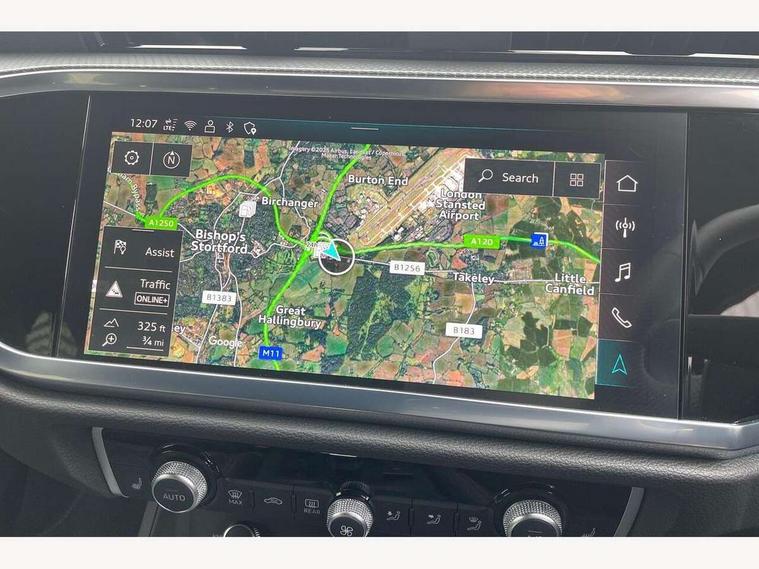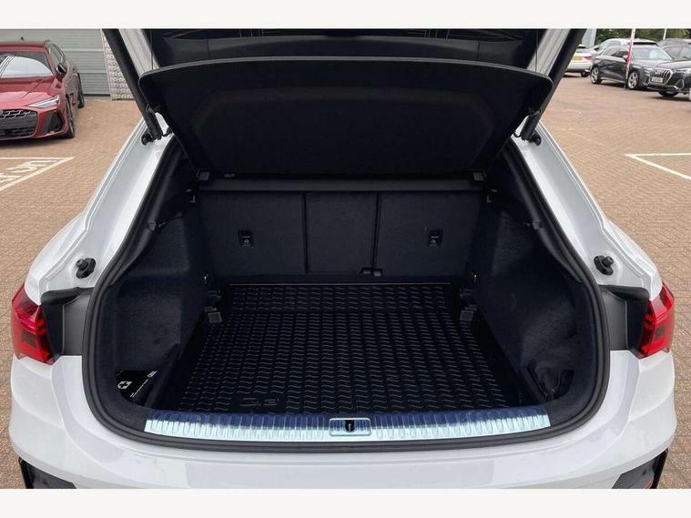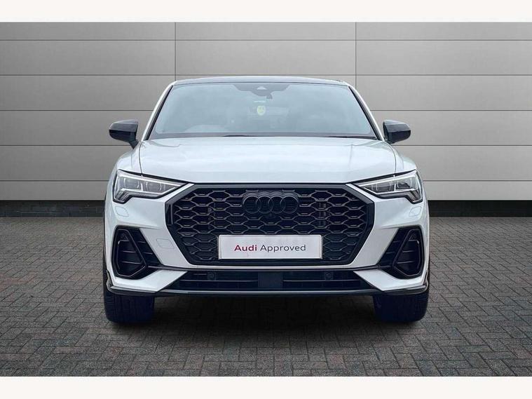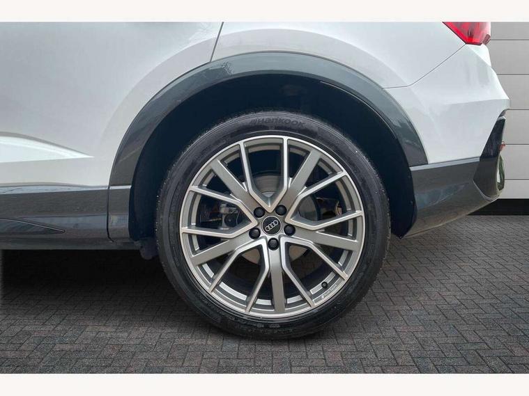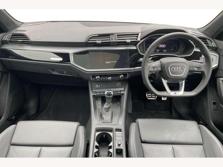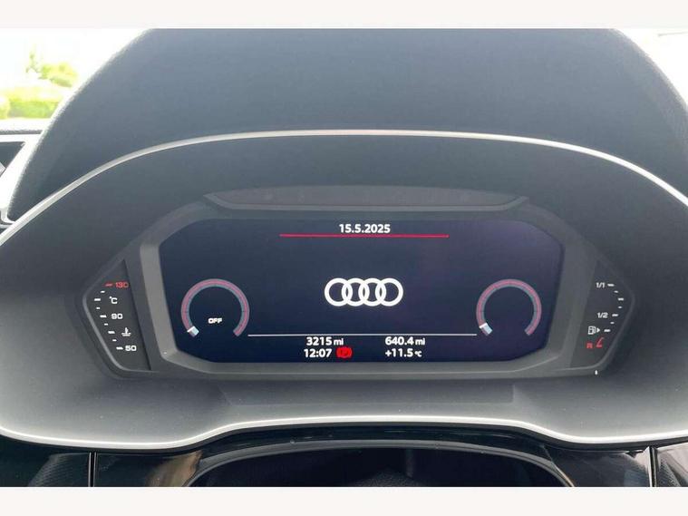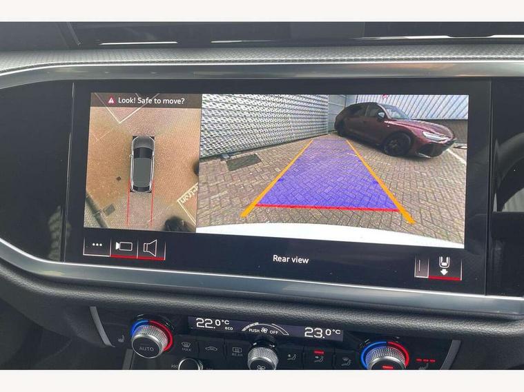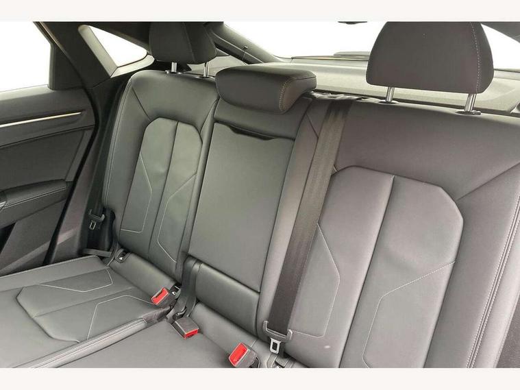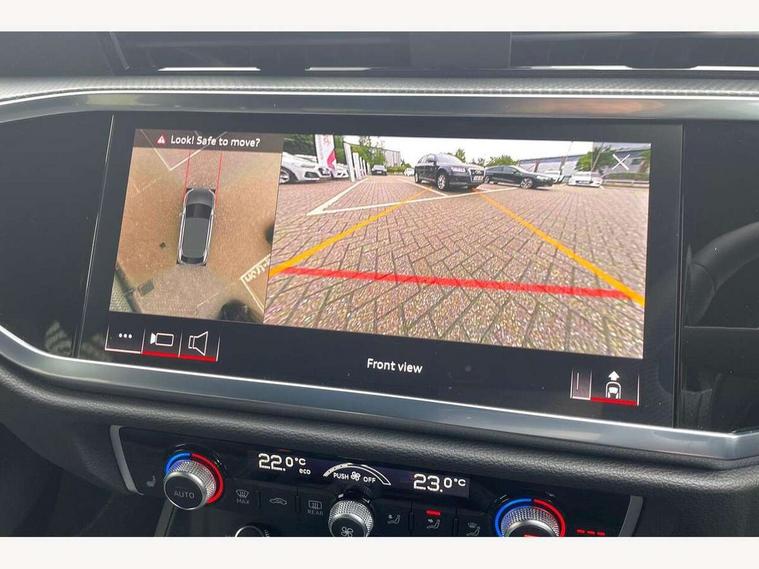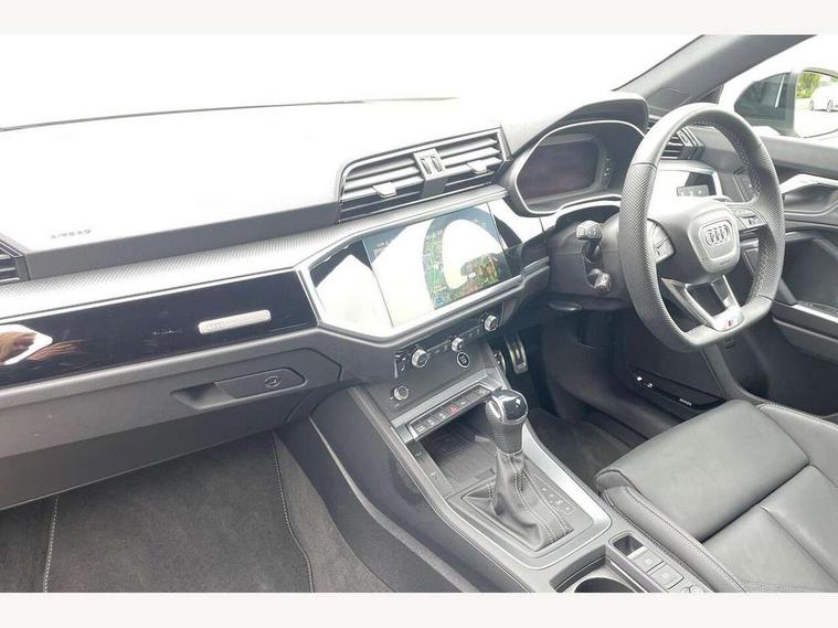 Audi connect safety and service, Audi drive select, Audi lane departure warning, Audi smartphone interface includes wireless Apple carplay/Android Auto, Audi Virtual Cockpit - 10.25" display, Bluetooth interface, Camera based traffic sign recognition, Distraction and Fatigue warning, Legal emergency call, MMI Navigation Plus with high resolution 10.1 inch touchscreen colour display, Power operated tailgate, Progressive steering, Service interval indicator, Start stop system with recuperation, Voice control system with natural language interaction, Sports suspension, 2 USB-C ports with charge and data functions, 6 passive loudspeakers, DAB digital radio module, Acoustic windscreen, Audi Beam uses LEDs to project the Audi logo onto the ground as you exit your Q3, Auto dimming door mirrors, Auto dimming frameless rear view mirror, Diffuser grille in grained matt black, Diffuser trim in selenite silver, Electrically folding, adjustable and heated door mirrors with integrated LED side indicators and kerb view function for passenger side, Front and rear electric windows, Front fog lights, Front underbody protection in manhattan grey paint finish, High gloss black finish B and C pillars, LED Dynamic rear indicators, LED headlights with LED daytime running lights, LED rear lights, LED third brake light, Privacy glass dark tinted rear and rear-side windows (from B-pillar backwards), Rain and light sensors, Rear side wing doors, Rear underbody protection in matt black, Rear wiper, S line front and rear bumpers and side skirts in contrasting Manhattan grey paint finish, Variable front intermittent wipers, 12V socket in rear centre console, 3 seat bench in 2nd row, 40:20:40 folding with manual adjustment for 60:40 forwards/backwards position and backrest angle, Adjustable rear seat bench/backrest with centre armrest and cupholder, Black cloth headlining, Dual zone electronic climate control, Electric lumbar support, Front and rear black floor mats with contrast stitching, Front and rear headrests, Front centre armrest, Height and reach adjustable steering wheel, Illuminated door sill trims with S logo, ISOFIX child seat mounting for front passenger with airbag deactivation and outer rear seat including top tether attachment point for outer rear seats, Luggage compartment sill protection in stainless steel, Manual front seats with height adjustment, Perforated leather gearknob, Single front passenger seat, Stainless steel pedals, Twin leather upholstery with front sport seats + S embossing, Black styling pack - Q3, Non smoking pack - Q3, 3x3 point rear seatbelts, 6 airbags - Driver, front passenger, curtain and side windows, Audi pre-sense front with pedestrain and cyclist recognition, Electrically operated child locks on rear doors, Electromechanical parking brake, Electronic stabilisation control including ABS, ASR and EDL, Front seatbelt reminder, Hill descent control, Hill hold assist, Pre sense basic, Seatbelt monitoring, Tyre pressure warning, Warning triangle and first aid kit, Anti theft alarm, Anti theft wheel bolts, Immobiliser, Remote central locking, Aluminium look interior elements, Detail dashboard around MMI touch colour display in glass look, black with surround in aluminium look, Leatherette door armrest, Piano black inlay,