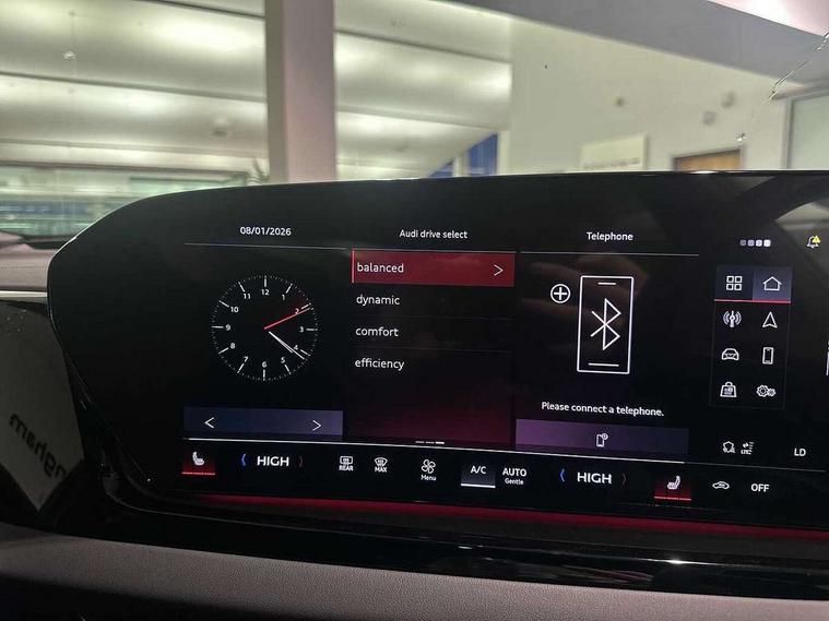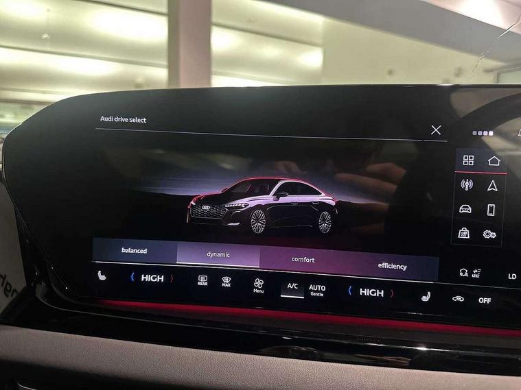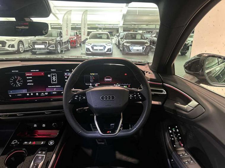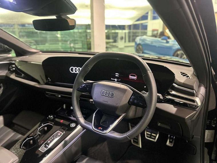 Adaptive cruise control, Advanced driver attention and fatigue montior, Audi application store, Audi assistant, Audi connect emergency call and service, Audi drive select, Audi smartphone interface, Audi virtual cockpit plus with 11.9" OLED colour display, Automatic start/stop system with coasting functionality, Camera based traffic sign recognition, Intersection assist, Lane departure warning, MMI navigation plus with high resolution 14.5" OLED touchscreen colour display, Park assist plus, Parking system plus with 360 display, Progressive steering with servotronic, Rear view camera, Swerve assist and turn assist, Traffic sign based speed limiter, Sports suspension lowered by 20mm, 2 USB-C ports in both the front and rear, Audi sound system impressive sound with 10 loudspeakers including centre speaker and subwoofer, 6-channel amplifier with a total output of 180 watts, DAB digital radio reception, Smartphone compartment with wireless charging, Aluminium window trims, Auto dimming rear view mirror, Body colour door mirrors, Door mirrors - electrically adjustable, heated, folding and auto dimming on both sides, Front and rear electric windows, Front door sill trims with aluminium inlays, illuminated with 'S' logo, High beam assist, LED headlights Plus incl. digital daytime running lights, turning light, all-weather light, motorway light, manouevring light and intersection light, LED rear lights pro incl. dynamic rear indicators and illuminated light strip with animated coming and leaving home function, LED third brake light, Privacy glass, Rear and side windows with heat insulating glass, Rear boot, Rear side wing doors, S Line badges on the front wings, S line bumpers, radiator grille and diffuser in phantom black and diffuser insert in matt anthracite, White rhombus logo projection light in exterior mirrors, Windscreen with acoustic glazing, 3 rear headrests, 3 seat rear bench, 3 spoke leather steering wheel with multi-function buttons with touch control, flattened on top and bottom, with S badging and contrast stitching, 3-zone automatic climate control, 40:20:40 split folding rear seat bench with centre armrest and cup holders, Comfort front centre armrest, Front and rear floor mats, Front seats with manual adjustment for position and 4-way electric lumbar support, Front sport seats with integrated headrest and S embossed logo, Headlining in black cloth, Heated front seats, i-Size child seat mounting on the front passenger side and i-Size and top tether on the outer rear seats, Luggage compartment lid, electrically opening and closing, Manual steering column height and depth adjustment, Single front passenger seat, Stainless steel pedals and footrest, Steering wheel grips in perforated leather and shift paddles, Ambient lighting package plus - A5, 3x3 point rear seat belts, Driver airbag, Electric child safety locks, First aid kit with warning triangle and vests, Front emergency brake assist, Front passenger airbag, Front passenger airbag deactivation, Front side airbags with head airbag system and front interaction airbag, Hill hold assist, Seat belt monitoring with rear seat occupant reminder, Tyre pressure loss indicator, Anti theft alarm, Anti-theft wheel bolts, Keyless Go, Accent surfaces and control buttons in gloss black, Black dashboard with contrast stitching, Inlays in matt brushed aluminium with linear embossing, anthracite, Softwrap in leatherette with contrast stitching, Upper and lower interior elements in leatherette, Tyre repair kit,