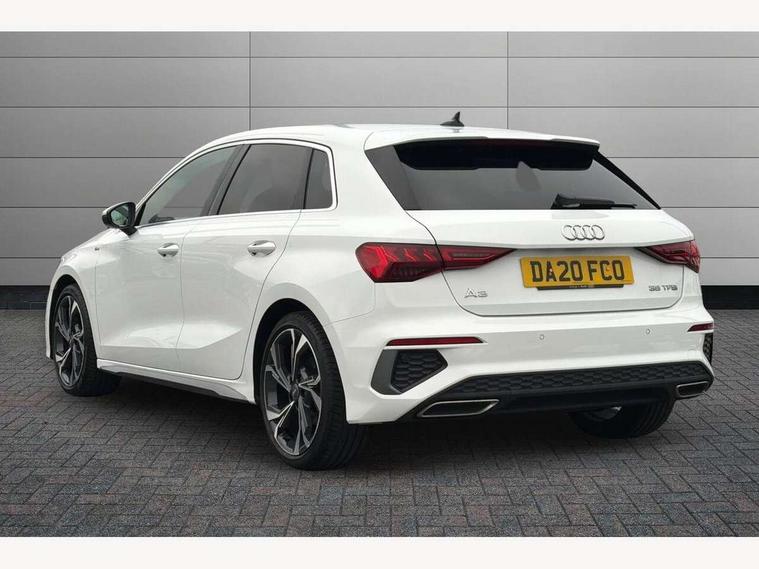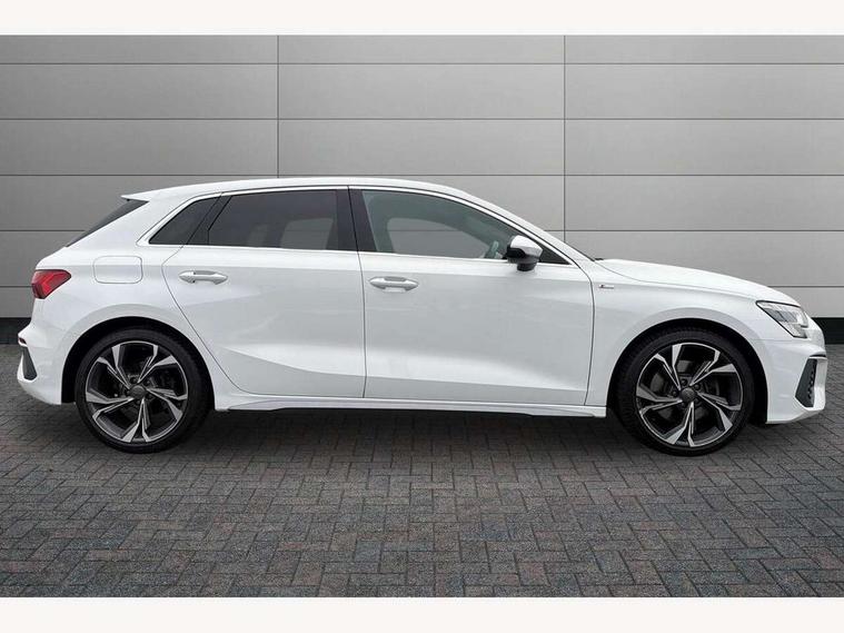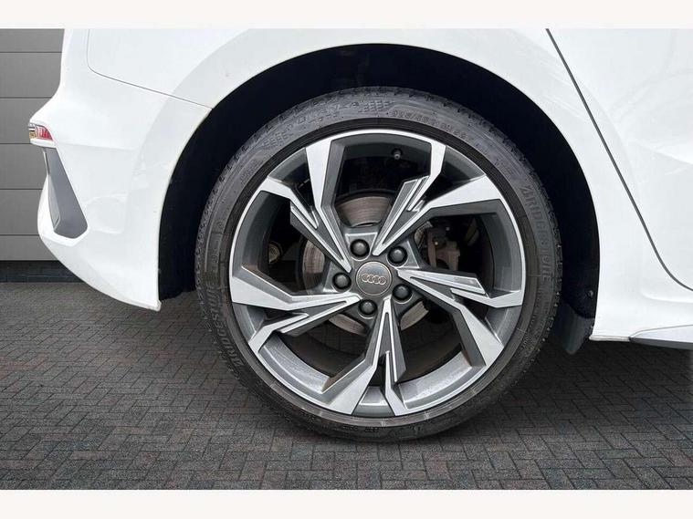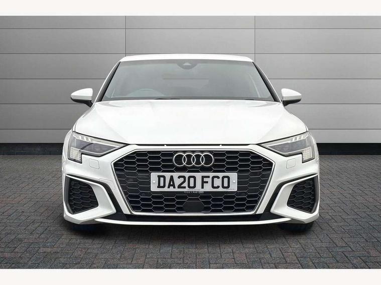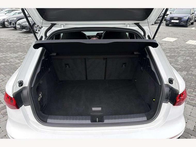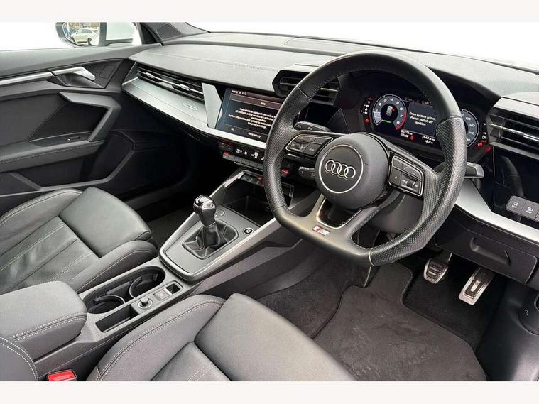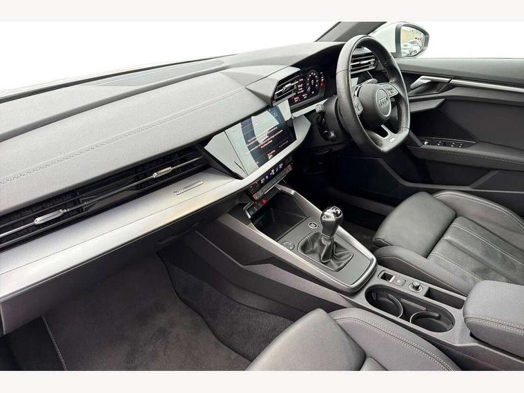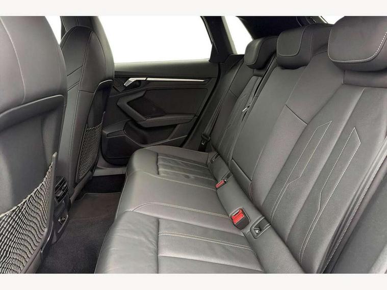 Audi connect emergency call and service, Audi drive select (Auto, Comfort, Dynamic, Efficiency and Individual), Audi smartphone interface, Audi Virtual Cockpit - 10.25" digital and colour instrument cluster, Automatic start/stop system with recuperation, Bluetooth interface, Collision avoidance assistant, Cruise control, Electromechanical power speed sensitive steering, Lane departure warning system, MMI Navigation Plus with high resolution 10.1" colour touch screen display, Rear parking sensors, Service indicator, Trip computer, Voice control system with natural language interaction, 1xUSB-A and 1xUSB-C connection, 6 passive loudspeakers, DAB Digital radio, Acoustic glass windscreen, Aluminium window trim, Auto dimming frameless rear view mirror, Body colour exterior mirrors, Electrically adjustable/heated/folding/dimming door mirrors with kerb view includes integrated LED indications + kerb view function for passenger side, Front electric windows, Illuminated aluminium inserts front door sills with S logo, LED daytime running lights, Light and rain sensors, Privacy glass - dark tinted rear window, rear door and side windows, Rear electric windows, Rear side air outlets in grained matt black, Rear wiper, S line bumpers, S roof spoiler, 12V socket and storage compartment in front centre console, 40/20/40 split folding rear seat bench with cupholder, Black cloth headlining, Dual zone electronic climate control, Front and rear centre armrest in leather, Front and rear headrests, Front/rear floor mats, Height and reach adjustable steering wheel, Interior lighting - glove compartment light and right hand side, Luggage compartment floor covering, Manual boot compartment lid, Manually adjustable front seats, Seat side bolsters, Stainless steel pedals and front footrest, Twin leather upholstery with front sports seats S embossed logo, Aluminium interior elements pack - A3 Sportback, S line styling pack - A3 Sportback, 3x3 point rear seat belts, Driver and front passenger airbag with passenger airbag deactivation, Electronic Stabilisation Control (ESC) including ABS, ASR and EDL, First aid kit with warning triangle and 2 safety vests, Hill hold assist, Pre-sense front with pedestrian and cyclist detection, Seatbelt monitoring, Tyre pressure loss indicator, Anti theft alarm, Anti-theft wheel bolts, Electronically operated child lock, Immobiliser, Remote control central locking, Accent surfaces in the dashboard and centre console in platinum grey silk effect paint finish, Dark spectrum aluminium inlays,