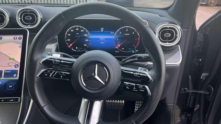 11.9" high resolution multimedia colour display, 12.3" Digital individually configurable instrument display, Acoustic presence indicator, Active lane keeping assist, Attention assist, Blind spot assist, Bluetooth interface for hands free telephone, Collision prevention assist plus, Cruise control with speedtronic variable speed limiter, Dashcam - front camera for video recording, Direct steer speed sensitive steering, DYNAMIC SELECT with a choice of driving modes (ECO, Comfort, Sport, Sport+ and Individual), eCall emergency call system, ECO start/stop function, Fingerprint scanner, Fluorescent jacket for driver, Hard disc navigation, Instrument display in miles with English lettering, MBUX augmented reality for navigation, MBUX navigation premium, MBUX voice control activated by keywords "Hey Mercedes", Mercedes me connect, Outside temperature display, Remote boot release, Remote services, Road sign recognition system, Service indicator (ASSYST), Smartphone integration, Status display for rear seat belts in instrument cluster, Traffic sign assist, Trip computer, Wireless charging, 48V Mild hybrid technology, 4MATIC permanent four wheel drive, 62 litre fuel tank, 9G TRONIC plus automatic transmission, Diesel particulate filter, Sport suspension, DAB digital radio tuner, MBUX extended functions, Mercedes benz sound system, Pre installation for Mercedes Benz Link, Adaptive brake lights, Adaptive high beam assist plus, Aluminium look running boards with rubber studs, Aluminium roof rails, AMG bodystyling front apron, rear apron and side skirts, AMG Line exterior, Auto headlights, Body colour bumpers, Body colour door mirrors, Digital light LED headlights, Electrically adjustable door mirrors, Front and rear electric windows, Headlight washers, Heat insulating dark tinted glass, Heated rear window, High level LED brake light, Integrated LED daytime running lights, LED indicator lights, LED rear fog lights, LED tail lamp, Motor way mode function and locator lighting, Noise acoustic glass, Radiator grille with Mercedes Benz pattern and integreated Mercedes star and louvre in dark grey matt with chrome inlay and black frame, Rain sensor windscreen wipers, Range adjustable headlights, Rear side wing doors, Rear wiper, Transparent Bonnet, Two chrome plated tailpipe trim elements, Variable front intermittent wipers, Welcome and follow-me home light functionality, Wider wheel arch for AMG wheels, 3 seat bench in 2nd row, 40:20:40 split folding rear seats, Ambient lighting premium, AMG line interior, Artico man-made leather upholstery, Audio and onboard settings control on multifunction steering wheel, Automatic child seat recognition sensor, Black fabric roof lining, Black floor mats with AMG lettering, Double cup holder in centre console, Easy-pack removable load compartment cover, Electrically height/reach adjustable steering column, Front centre armrest with stowage compartment, Front head restraints, Galvanised steering wheel gearshift paddles, Heated front seats, Illuminated door sill panels with Mercedes Benz lettering, Illuminated glove compartment, Instrument panel and beltlines in ARTICO manmade leather in nappa look, Multifunction sports steering wheel in nappa leather, Rear centre headrest, Rear head restraints, Rear top tether child seat ISOFIX attachment, Single front passenger seat, Sports pedals with stainless steel surfaces and rubber studs, Sports seats, Sun visors, THERMATIC 2 zone automatic climate control, Anti theft protection package - GLC, Boot comfort package - GLC, Exterior chrome package - GLC, Interior chrome package - GLC, Interior lighting pack - GLC, Keyless-Go comfort package - GLC, Memory pack - GLC, Mirror pack - GLC, Parking package with 360 degree camera - GLC, Seat comfort package - GLC, Stowage space package - GLC, USB Plus Pack - GLC, 3 rear 3 point seatbelts, Active braking assist, Anti-lock braking system (ABS), ASR traction control, Automatic front passenger airbag deactivation, Black seat belts, Brake calipers with Mercedes-Benz lettering + perforated brake discs, Braking system with larger brake discs on the front axle, Child proof door locks, Dual-stage airbags - driver and front passenger, driver knee bag and window bags for driver, front passenger and rear passengers, Electronic parking brake, Electronic stability programme (ESP) with curve dynamic assist and cross wind assist, Front and rear seatbelt reminder, Front passenger seat occupancy sensor, Front seatbelt pretensioners, Hill start assist, Tyre pressure monitoring system, Warning triangle and first aid kit, Automatic door locking, Guard 360 degree vehicle protection plus, Interior protection/immobiliser, Remote central locking, Centre console in metal structure finish, Metal structure trim, 20" AMG 5 spoke aerodynamically optimised light alloy wheels in painted black with high sheen finish, Summer tyres, TIREFIT with tyre inflation compressor,