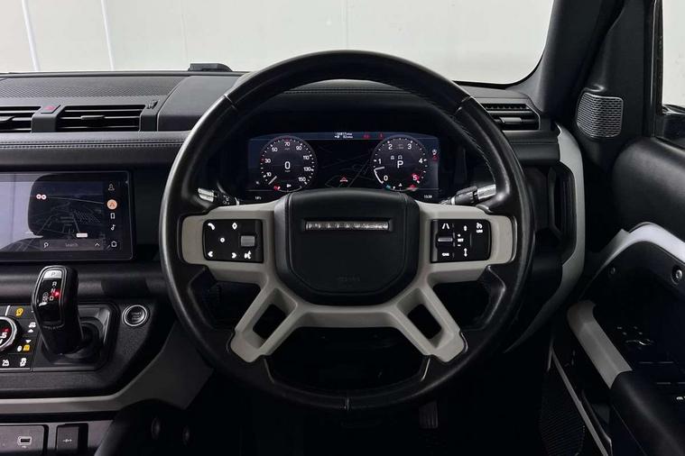 360 degree parking aid, 3D Surround Camera with 360 View, 180 Rear View, Front Traffic Detection, Forward Vehicle Guidance, Tow Hitch Assist and clear sight Ground View, Android Auto, Apple CarPlay, Assisted tailgate with soft close, Blind spot assist, Bluetooth system, Brake pad wear indicator, Clear exit monitor, Click and go integrated base unit, Connected navigation pro, Driver condition monitor, Electric power assisted steering (EPAS), Interactive driver display, Lane keep assist, Push button start, Rear traffic monitor, Traffic sign recognition with adaptive speed limiter, Trip computer, Wade Sensing, Adaptive dynamics, DAB Radio (Digital Audio Broadcasting), Meridian 400w sound audio system with 11 speakers and subwoofer, Pivi pro connected, Automatic headlight levelling, Automatic headlights, Centre high mounted stop light, D300 badge, Electric heated/power fold door mirrors with approach lights and auto dimming driver side, Electric windows with one touch open/close and anti-trap, Follow me home lighting, Front fog lights, Heated rear window with timer, Heated windscreen, LED tail lights, Matrix LED headlights with signature DRL, Puddle lights, Rain sensing windscreen wipers, Rear fog lights, Standard tread plates, Trailer stability assist, 12V power socket in loadspace, Cabin lighting, Carpet mats, Durable rubber cabin flooring, Durable rubber loadspace flooring, Electric reach + rake adjustable steering column, Footwell lights, Front passenger isofix child seat attachment, Loadspace cover, Loadspace Hook, Multifunction steering wheel, Overhead stowage for sunglasses, Rear headrests, Rear ISOFIX, Rear reading lights, Storage glovebox, Sunvisors with illuminated vanity mirrors, Online pack with data plan - Defender, 5 x 3 point seatbelts, ABS, Brake hold function, CBC - (Cornering brake control), Customer configurable autolock, Driver and passenger airbags, DSC - Dynamic Stability Control, EBD - Electronic brakeforce distribution, Electric parking brake (EPB), Emergency braking, ESP + traction control, Front airbags with passenger seat occupant detector, HDC - Hill descent control, Hill launch assist, Low traction launch, Power operated child locks, Remote for (e-Call, Optimised assistance call, InControl app, Climate, beep and flash and door), RSC - Roll stability control, Seat belt reminder, TPMS (Tyre pressure monitoring system), Alarm, Immobiliser, Intrusion sensor, Keyless entry and go, Locking wheel nuts,