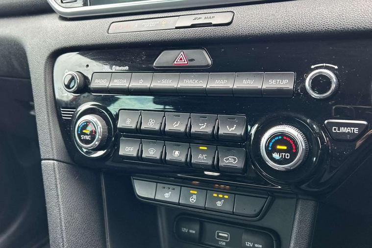 360 degree surround camera, 4.2" supervision colour cluster display, 8" touchscreen satellite navigation with European mapping and traffic messaging channel, Android auto with voice control, Apple car play with voice control, Blind spot collision warning, Bluetooth connectivity with voice control, Cruise control + speed limiter, Digital clock, Driver attention warning, Emergency stop signalling system, Forward collision avoidance assist, Front parking sensor, Kia connected services featuring TomTom live, Lane keep assist, Rear parking sensor, Speed limit information, Speed sensitive power steering, Trip computer, Windscreen washer level indicator, Intelligent Stop and Go, Bluetooth audio streaming, DAB Radio with MP3, JBL Premium sound system with 8 speakers, external amp, subwoofer and front centre speaker, Steering wheel mounted audio controls, USB/iPod/auxiliary input connections, All round electric windows with drivers auto up/down function, Auto dimming rear view mirror, Automatic defog system, Automatic headlights, Black wheel arch body mouldings and side sills with chrome insert, Body colour door handles with chrome inserts, Body colour door mirrors, Chrome front bumper insert, Chrome grille surround, Chrome window surround, Cornering light, Electrically adjustable/heated/folding door mirrors with LED indicators, Front fog lights, High beam assist, High gloss black diamond mesh radiator grille, LED Bi-Function headlights, LED daytime running lights, LED rear lights, Metallic paint, Privacy glass (rear side windows and rear screen), Rain sensing front wipers, Rear spoiler, Rear wiper, Roof rails, Shark fin antenna, Silver painted front and rear skid plates, Speed sensitive front wipers, Tinted glass, Trailer stability assist, Welcome and follow-me home light functionality, Wide view drivers door mirror, Windscreen wiper de-icer, 10 way driver/8 way passenger electrically power adjustable seats, 12V power in front and rear centre console, 3 x passenger assist grips, 60/40 split folding rear seat, Air filter, All-round height adjustable headrests, Centre cabin light, Centre console storage box, Cloth/leather upholstery, Door armrest in leather, Driver and front passenger side sunvisors with illuminated vanity mirrors, Drivers seat power lumbar support, Dual zone automatic air conditioning, Front and rear door storage, Front cabin LED map light with sunglasses case, Front door courtesy reflectors, Front seat and rear pockets, Front/rear centre armrests, Gear shift indicator, Glovebox illumination, Heated front and outer rear seats, Heated steering wheel, Illuminated glovebox, Interior door lock/unlock function, ISOFIX Child seat top tethers and anchor fixings, Leather steering wheel, Leather trimmed gearshift, Light grey headlining, Luggage area light, Luggage area load cover, Luggage net with hooks, Rear centre armrest with cupholder, Rear coat hooks, Rear headrests, Satin chrome interior door handles, Stainless Steel Scuff Plates, Tilt/telescopic adjustable steering wheel, Ventilation ducts to rear compartment, 3x3 point rear seatbelts, Active front headrests, All round 3-point seatbelts, Anti-lock braking system with electronic brakeforce distribution, Dual front side airbags, Electronic parking brake, Electronic stability control with downhill brake control, ESP + traction control, Front passenger airbag cut-off switch, Front seatbelt pretensioners + load limiters, Height adjustable front seatbelts, Hill start assist control (HAC), Impact sensing auto door unlocking, Rear door child safety locks, Twin curtain airbags with roll over sensor, Twin front airbags, Tyre pressure monitoring system, Advanced anti-theft system including immobiliser and alarm, Door deadlocks, Engine Start/Stop Button with Smart Entry System, Locking wheel nuts, Speed sensitive auto door locking, Visible vehicle identification number, High gloss black centre fascia, 17" Alloy wheels, Tyre mobility system,