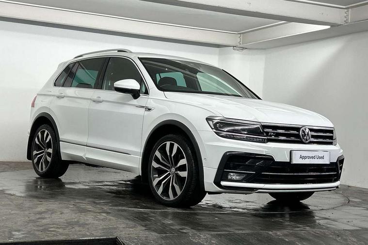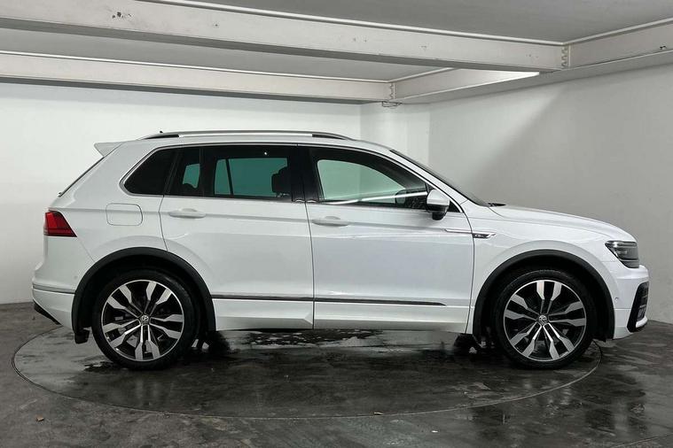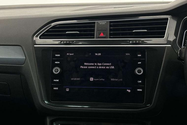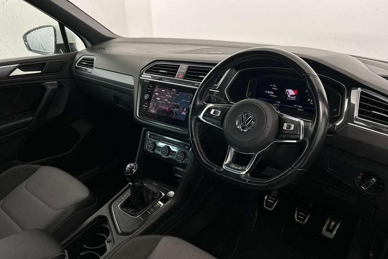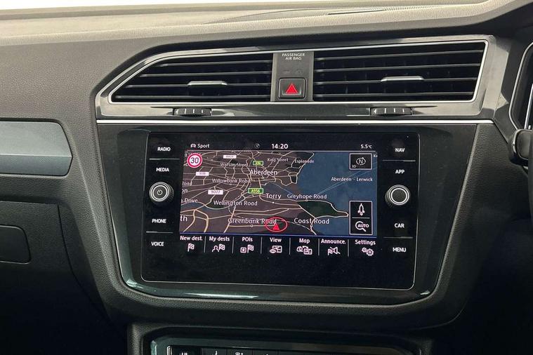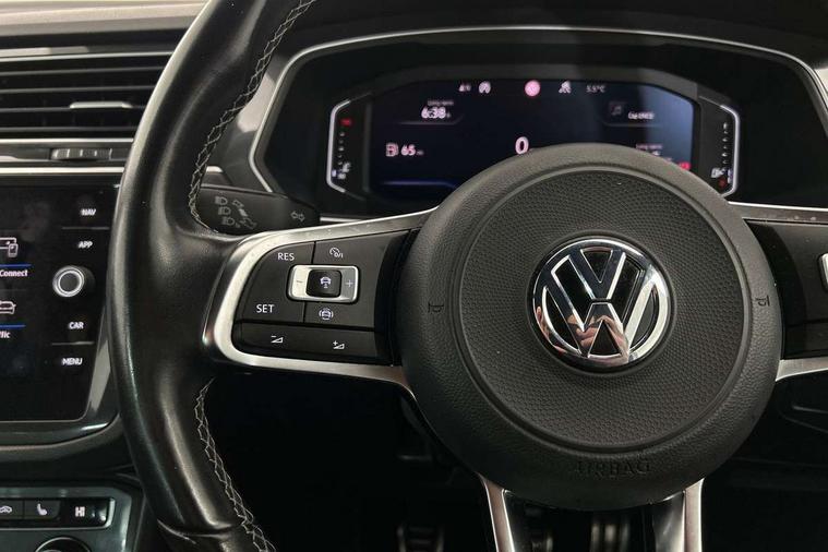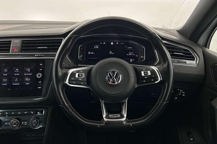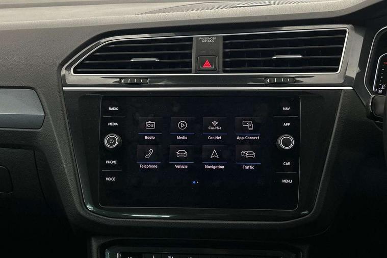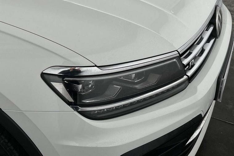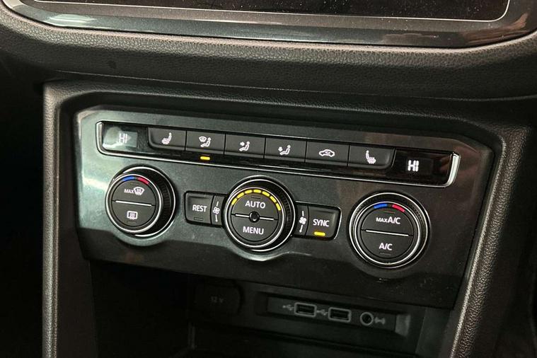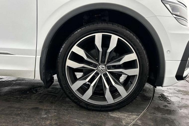 Active information display, Adaptive cruise control, App-Connect, Bluetooth phone integration system, Car-Net Security and Service, Distance control assist, Driver profile selection, Fatigue detection system, Front assist, radar sensor controlled distance monitor, city emergency braking + predictive pedestrian protection, Instrument cluster, Lane assist, Low washer fluid warning light, Outside temperature display, Service interval indicator, Speed limiter, Start/Stop function, Warning lights, Misfuel prevention device for diesel engine, XDS electronic differential lock, 2x USB sockets in front, 4 X 20 watt output, DAB Digital radio, SD card slot, Simultaneous pairing of 2 compatible mobile devices, SMS functionality - read, compose and send SMS messages using touch-screen display, Title and cover art display, 3D effect cherry red LED rear tail lights, Auto dimming interior mirror, Automatic activation of hazard warning lights, Black door protector with chrome inserts, Body colour door handles, Body colour door mirrors, Body coloured bumpers, Chrome side body trim, Chrome side window surrounds, Chrome trimmed radiator grille, Coming/leaving home lighting function, Dusk sensor + auto driving lights, Electric folding door mirrors, Electric heated + adjustable door mirrors, Electric panoramic sunroof with sunblind, Front air intake with chrome strip, Front and rear electric windows, Heated rear window, High level 3rd brake light, LED headlights with dynamic light assist daytime running lights and cornering front fog lights, LED rear number plate lights, Rain sensor windscreen wipers, Rear tinted glass from B-pillar backwards approx 65% tinted, Rear windscreen washer and wiper with interval delay, Side door sills with chrome inserts, Side skirts and rear bumper with chrome insert, Silver rear diffuser trim, Silver roof rails, Silver under body guard, Windscreen wipers/ intermittent wipe + 4 position delay, 12V Accessory socket in centre console, 3 rear headrests, 3 zone climate control, 4 load lashing points, 40:20:40 split folding rear seats, Bag hook in luggage compartment, Foldable passenger seatback, Front + rear carpet mats, Front centre armrest with 12v socket, Front centre armrest with storage + rear 2 air vents + cupholders, Front seat back storage pockets, Front seatback folding tables, Height/reach adjust steering wheel, Illuminated driver/passenger vanity mirrors, Illuminated scuff plates, Instrument lighting white adjustable panel illumination, Interior light with delay, Isofix Preparation 2 Rear child seats, Leather gear knob, Load through provision with 2 cupholders when folded, Lockable cooled glovebox, Luggage compartment lighting, Luggage compartment side storage, Map pockets on front seats, Passenger seat height adjuster, Passenger underseat drawer, Rear cupholders, Removable luggage cover, Sliding/reclining rear seats, Storage compartment in driver's door, Storage compartment in passenger's door, Storage compartment in rear doors, Storage tray on dashboard, Sunglasses storage, Variable boot floor, Ambient lighting pack - Tiguan, Winter pack - Tiguan/Tiguan Allspace, 3 rear 3 point seatbelts, ABS+EBD+Brake assist, Active bonnet, Active pedestrian safety system, Curtain airbags, Driver/Front Passenger airbags, Driver/Passenger whiplash optimised head restraints, Drivers knee airbag, DTC - Drag torque control, Electronic parking brake with auto hold, ESP with EDL + ASR, First aid kit, Front side airbags, Front ventilated disc brakes and rear disc brakes, Head airbag system, Height adjustable front 3 point seatbelts + pretensioners, Hill hold control, Passenger airbag deactivate switch, Passenger knee airbag, Proactive preventive occupant protection, Rear side airbags, Rigid safety cell with front and rear crumple zones, Seatbelt warning lamp and buzzer, Two tone horn, Warning triangle, Alarm with interior protection, Electronic engine immobiliser, Remote central locking with 2 remote folding keys, Chrome door trim inserts, Piano black interior trim,