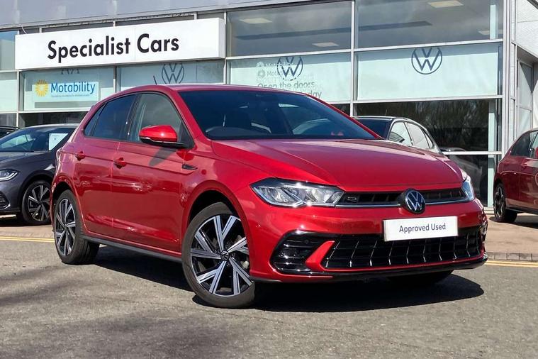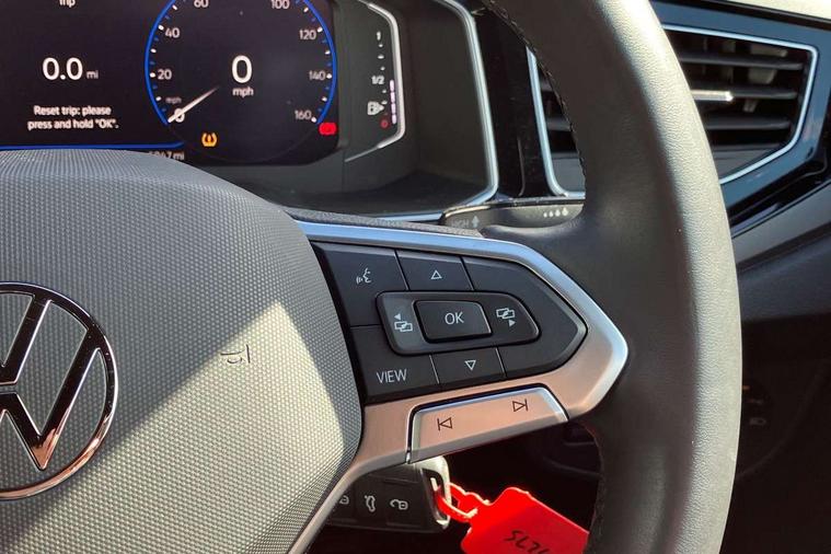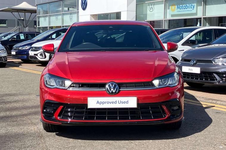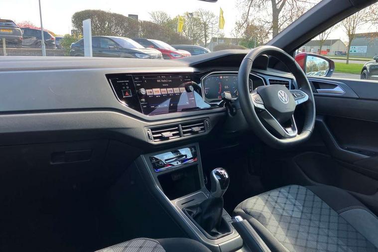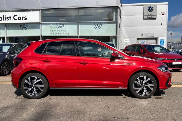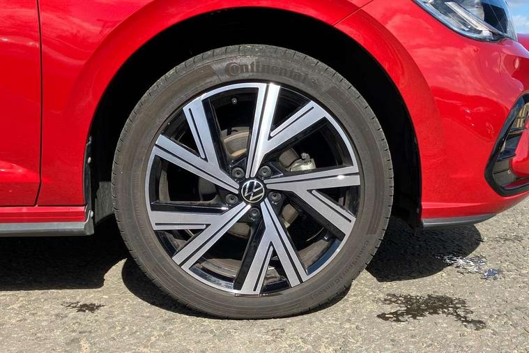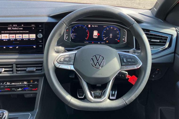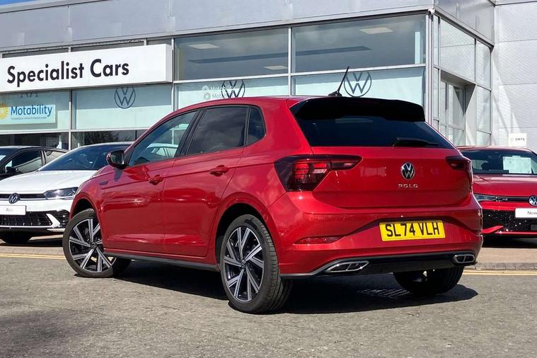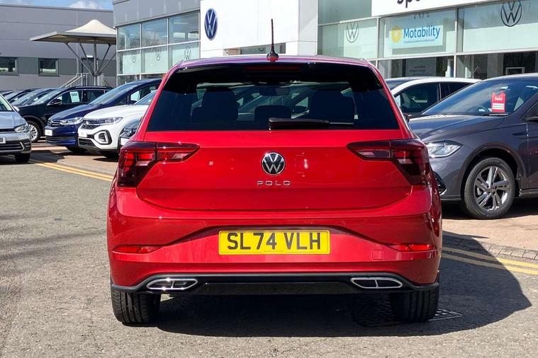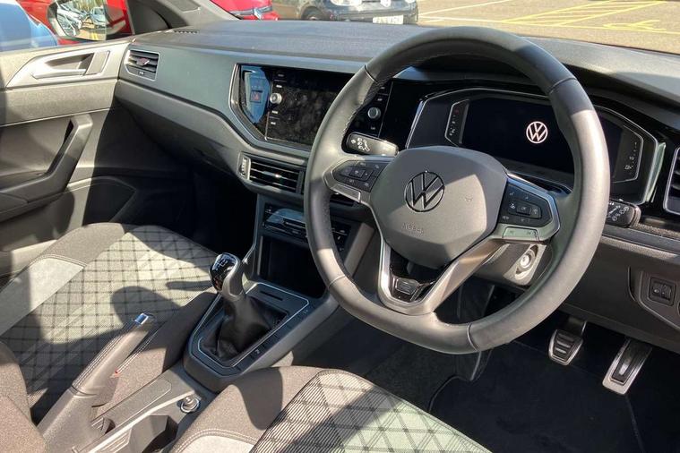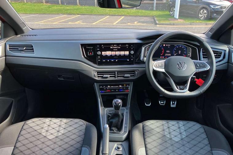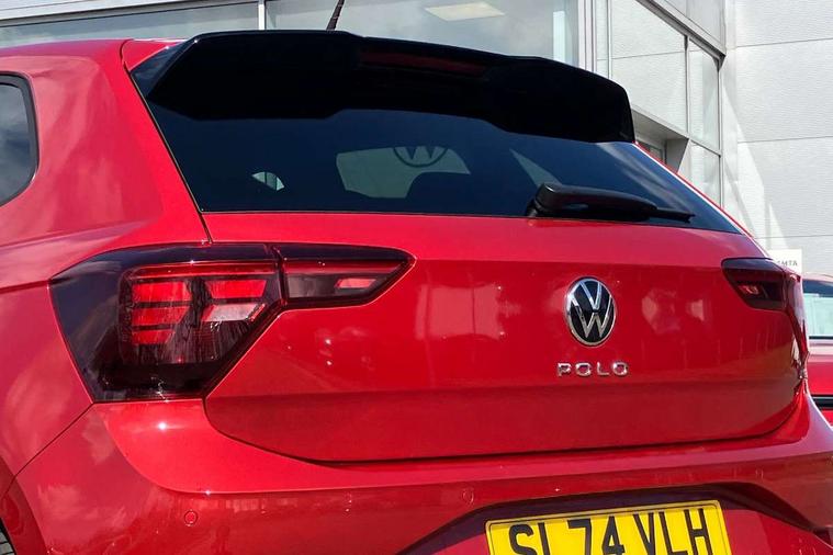 Advanced driver attention and drowsiness monitor, Bluetooth mobile phone interface, Digital Cockpit Pro with 10.25" Display, Dynamic road sign display, Emergency call service, Multifunction camera, Power assisted speed sensitive steering, Predictive adaptive cruise control without follow-to-stop and speed limiter, Preparation for We connect and We connect plus, Speedo and rev counter, electronic odometer, trip, service interval display and fuel gauge, Standard rear axle, Travel Assist - Lane keeping system and traffic jam assist, Travel assist including emergency assist, Trip computer, Warning signal and warning light for front and rear seatbelts not fastened, Washer fluid level indicator, Wireless app connect, Front wheel drive, Rear shock absorpion, Start-stop system with battery regeneration (recuperation - energy recovery during braking), DAB Digital radio, Diversity antenna for FM reception, Front and rear 6 speakers, Body colour bumpers, Body colour door handles, Electric front windows, Front scuff plates with R-Line logo, Heat insulating darkened glass in side and rear windows, Heat insulating glass windscreen, Power folding adjustable/heated exterior mirrors and front passenger exterior mirror lowering function, Rear electric windows, Rear fog light, Rear side wing doors, Rear windscreen washer and wiper with interval delay, Third brake light, 12V power socket in centre console, 2 USB-C ports in the front, 2 USB-C charging sockets on the center console in the rear, 3 rear head restraints, 60/40 split folding rear seat and rear seat bench not split, Air care climatronic air conditoning system with active combination filter and 2-zone temperature control, Black roof lining, Carpet mats, front and rear, Chrome plated radiator grille inserts, air vent surrounds and light switch surrounds, Door and side trim panel, Driver and front passenger seat height adjustment, Driver/passenger sunvisors with illuminated vanity mirrors, Front centre armrest, Front footwell illumination, Front seat backrest storage pockets, Front sports comfort seats, Handbrake lever handle in leather, Headliner in recycled material, Isofix child seat preparation easy-fit (for two outer rear seats, and front passenger seat) compatible with I-size, Karoso artvelours cloth upholstery, Leather trimmed gear knob, LED interior light with switch off delay and dimmer, 2 reading lights front and rear, Luggage compartment cover, Luggage compartment floor, Luggage compartment lighting, Lumbar adjustment for front seats, Multifunction steering wheel, Single front passenger seat, Stainless steel pedals, Standard pedal cluster, Light and sight pack - Polo R-Line/Black Edition, 3 point height adj front seatbelts + pretensioners, 3x3 point rear seatbelts, ABS, Driver and front passenger airbag with front passenger airbag deactivation, Drivers and front passengers safety optimised head restraints, ESC (Electronic stability control) + EDL (Electronic Differntial lock) and ASR (Traction control), Extended and predictive pedestrian/ cyclist protection, Front curtain and side airbags with center airbag, Hill hold control, Manual child lock in rear doors, Single tone horn, Tyre pressure loss indicator, Alarm with interior protection, Anti-theft alarm system with interior monitoring, backup horn, and towing protection, Anti-theft wheel bolts, Electronic engine immobiliser, Chrome applications on rotary light, mirror adjustment, window regulator switches, outlet with frame in black, Dark grey anodised matt decorative inserts in dash and front door panels, 16" Valencia alloy wheels, Low rolling resistance tyres,
