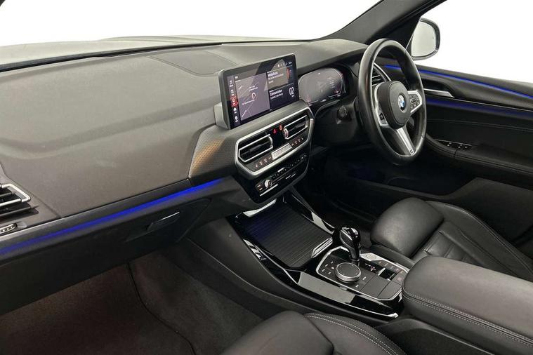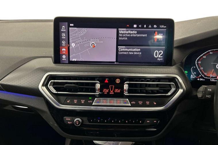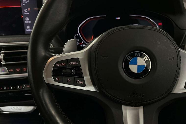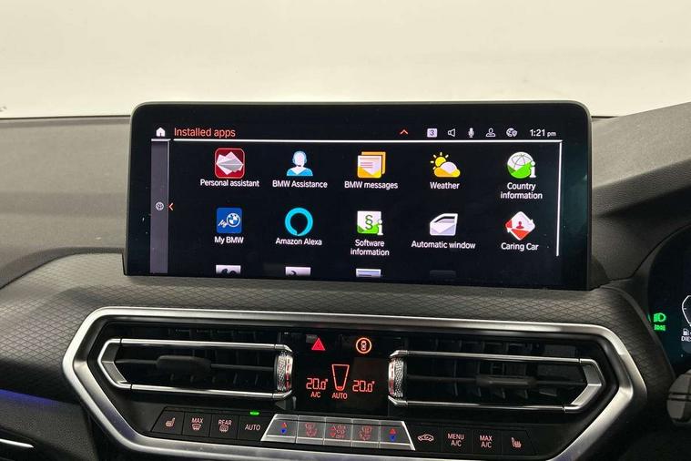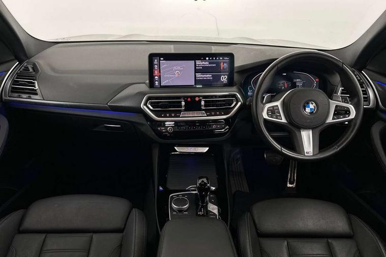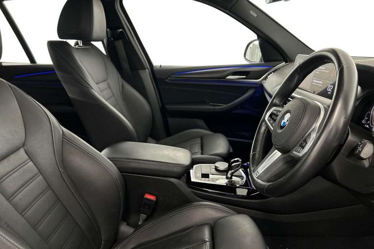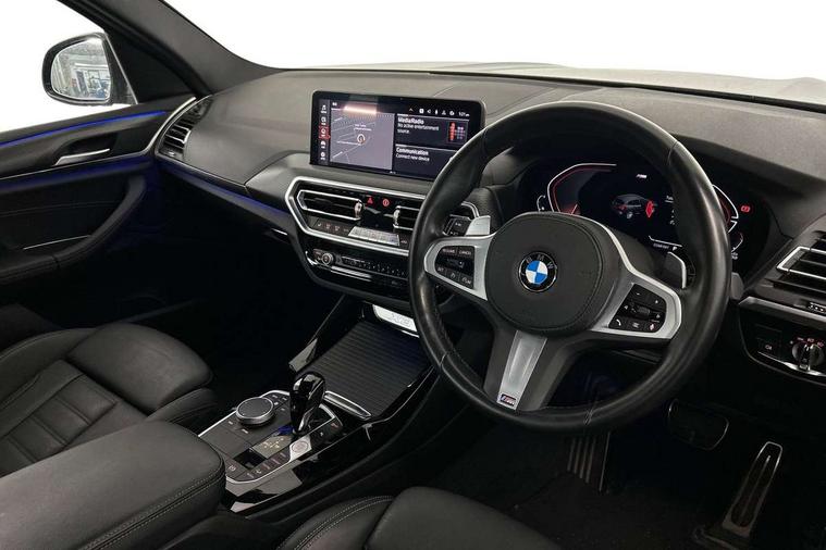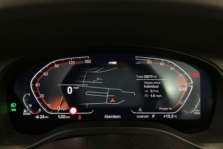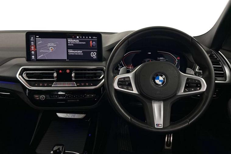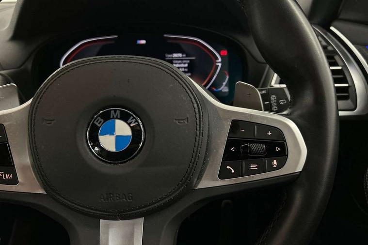 Active Guard, Attentiveness assist, BMW Live Cockpit Professional nav system including 12.3" instrument display + 12.3 high resolution control display, BMW Online services, BMW Teleservices, Brake pad wear indicator in front and rear, Check Control warning system for monitoring of lights and door/luggage compartment open warning, Condition based service - BMW service history, electronic service booklet, integrated owner's handbook, Connected drive services, Cruise control with brake function + speed limiter, Electric boot lid, Front/rear Parking distance control, iDrive Controller with 8 favourite buttons, Instrument cluster with speedometer with mph readout, tachometer, fuel gauge and oil temperature gauge, Lights on warning by audio warning signal when ignition is switched off, Oil sensor for level and grade, warning by check control system, On board computer - average speed+fuel consumption, service interval, clock/date, odometer/trip meter, outside temperature display and ice warning, Optimum shift indicator, Personal Profile - automatic lock when driving away selectable, Stop/start system, Variable sports power steering, Automatic transmission with gearshift paddles, Diesel particulate filter, Drive performance control with ECO PRO comfort + sport mode, Incorrect fuelling protection, Larger capacity fuel tank, M sport suspension, Multi-link rear suspension, Performance Control, BMW professional radio/CD/MP3, DAB tuner, Acoustic glazing, Automatic windscreen wipers and automatic headlight, Black finish on B pillars, Body colour door handles, Body colour electric adjust heated aspherical door mirrors, Body colour roof mouldings, Body coloured bumpers, Direction indicator, side repeaters, integrated in exterior mirrors, Dynamic brake lights, Exhaust tailpipes - dual, round, split left and right with chrome finisher, Fingertip control / anti-trap function on electric window, Folding wing mirrors with auto dimming, Follow me home headlights, Front and rear bumper system with replaceable deformation elements, Front and rear electric windows, Gloss chrome tailpipes finishers, Green tinted heat insulating glass, Heated windscreen washer jets, High beam assistant, High gloss black shadow line roof rails, High gloss shadowline exterior trim in decorative moulding side frame/recess cover/guide rail/B, C pillars/mirror frame and triangle with mirror base, High level 3rd brake light incorporating LED Technology, Interior rear view electrochromatic mirror with automatic anti dazzle function, LED tail lights, Lightweight engineering, M aerodynamic bodystyling, Model designation, Rear side wing doors, Rear wing door, Rear wiper, Shark fin antenna, Side exterior M designation badges, Visible VIN plate, Welcome lighting, Windscreen wipers with adjustable interval, 12V power socket in front centre console, 3 rear headrests, 3 zone automatic air conditioning, 4 lashing points to secure luggage, 40:20:40 split folding rear seat with loading system, 5 seats, Ambient lighting, Anthracite headlining, Automatic interior light when door is opened/ignition switched off or via remote key, Foldable storage floor with compartment, Four grab handles integrated in roof lining, Front and rear bottle holders integrated into door trim storage compartments, Front and rear side armrests integrated into door trim, Front centre armrest with storage compartment, Front footwell lights, Front head restraints, Front sports seats, Front/rear courtesy lights with soft on/off dimming, Front/rear reading lights, Heated front seats, Isofix rear child seat preparation, Leather gear knob, Luggage area underfloor compartment, Luggage compartment lighting, M sport leather steering wheel, Multifunction steering wheel, Parcel shelf removeable and storable under boot floor, Reach and rake adjustable steering column, Rear centre armrest with 2 cupholders, Removable / retractable luggage cover, Seat backrest width adjustment, Slope adjustable rear seats, Storage compartment in rear centre console and front/rear door trims, Sun visors with vanity mirrors and ticket pocket, Toolkit located in luggage compartment, Two front cupholders with removable oddments tray/lid, Vernasca leather upholstery, Connected pro pack - X3, Driving assistant pack - X3, ADB - Automatic Differential Brake, Anti-lock braking system (ABS) with brake assist, Automatic Stability Control (ASC), Battery safety cut-off, BMW emergency call, Brake drying, Brake energy regeneration, Braking pre-tensioning, Child locks on rear doors, Cornering brake control (CBC), Crash Sensor - activation of central locking release, hazard warning light and interior lighting, Deactivation of fuel pump in the event of a crash, Driver and front passenger front and side airbags with passenger deactivation and ITS front and rear head airbags, DSC+, Dynamic brake control, Dynamic Traction Control - DTC, Electromechanical parking brake, Hill descent control, Hill start assist, Seatbelt security check for front seats, Side impact protection, Three point seatbelts to all seats with front and outer rear pyrotechnic belt tensioners and seat belt force limiters, Two tone horn, Tyre pressure sensor, Ventilated front and rear disc brakes, Warning triangle and first aid kit, Central locking switch for all doors, fuel filler cap and luggage compartment, Electronic engine immobiliser, Locking wheel nuts, Remote control including two integrated key - one button for open/close all lockable content, windows and separate button for open luggage compartment, Remote control Thatcham category 1 alarm, Start/stop button with Comfort Go keyless engine start and auto Start/stop deactivation button, Low rolling resistance tyres,