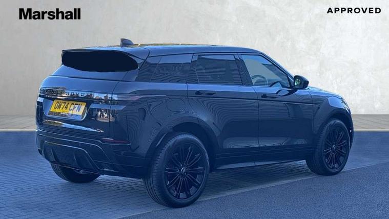 11.4" touch screen, Adaptive cruise control, Android Auto, Apple car play, Blind spot assist, Bluetooth connectivity, Brake pad wear indicator warning light, Driver condition monitor, eCall emergency system, Eco mode, Electronic power assisted steering (EPAS), Front and rear parking aid, InControl remote, Interactive driver display, Land Rover InControl apps, Lane keep assist, Pivi pro connected includes diamond pivi variant, smart settings, connected navigation pro, nuance speech licence, Powered tailgate/boot lid, Rear collision monitor, Rear traffic monitor, Traffic sign recognition with adaptive speed limiter, Voice control system, Wireless device charging, All terrain progress control, Diesel exhaust fluid (DEF) large tank, Efficient Driveline, Large fuel tank, Passive suspension, Terrain Response 2, Digital Audio Broadcast radio-DAB, Steering wheel mounted controls, Acoustic laminated windscreen, Auto headlights, Automatic headlight levelling, Electric windows with one touch open/close and anti trap, Flush deployable exterior door handles, Front and rear recovery eyes, Heated rear window with timer, Heated washer jets, Heated windscreen, Pixel LED headlights with signature DRL and LED tail Lights, Power fold, auto-dimming, heated door mirrors with approach lights and auto dimming driver side, Rain sensing windscreen wipers, Rear animated directional indicators, Rear fog lights, Rear side wing doors, Rear wiper, Side repeater indicators in mirror, Tailgate spoiler, Third brake light, Winter wiper park position, 14 way driver memory electric front seats with 2 way manual headrests + 4 way lumbar support, bolsters, 40:20:40 split folding rear seats with centre headrest and armrest, Ambient interior lighting, Bright metal pedals, Carpet mats, Chrome tread plates with range rover branding Includes stainless steel loadspace scuff plate with etched graphic, Customer configurable single point entry, Electrically adjustable steering column with memory function and easy entry/exit, Front and rear cupholders, Heated steering wheel, Isofix system on outer rear seats, Overhead lighting console, Overhead stowage for sunglasses, Passive front head restraints, Rear air vents, Rear head restraints, Satin chrome gearshift paddles, Single passenger seat, Sunvisors with illuminated vanity mirrors, Twin sliding front centre armrest, Online pack with data plan - Evoque, Power socket pack 2 - Evoque, 3 rear 3 point seatbelts, Anti-lock braking system (ABS), Brake hold function, Customer configurable autolock, DSC - Dynamic Stability Control, Electronic brake force distribution, Electronic parking brake, Electronic traction control, Emergency braking, Front and rear seatbelt reminder, Hill descent control, Hill launch assist, Low traction launch, Occupant protection assist, Passenger seat occupant detector, Power operated child locks, Roll stability control, Six airbags - Driver and passenger airbags/driver knee airbag/front side airbag and curtain airbags, Torque vectoring brake, Tyre pressure monitoring system, Alarm, Immobiliser, Intrusion sensor, Keyless entry, Locking wheel nuts,