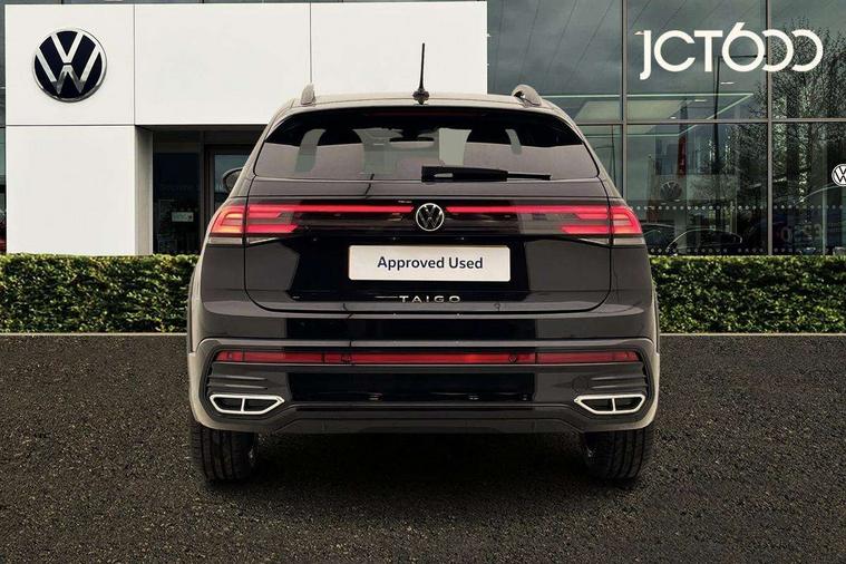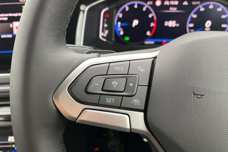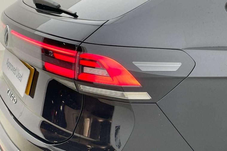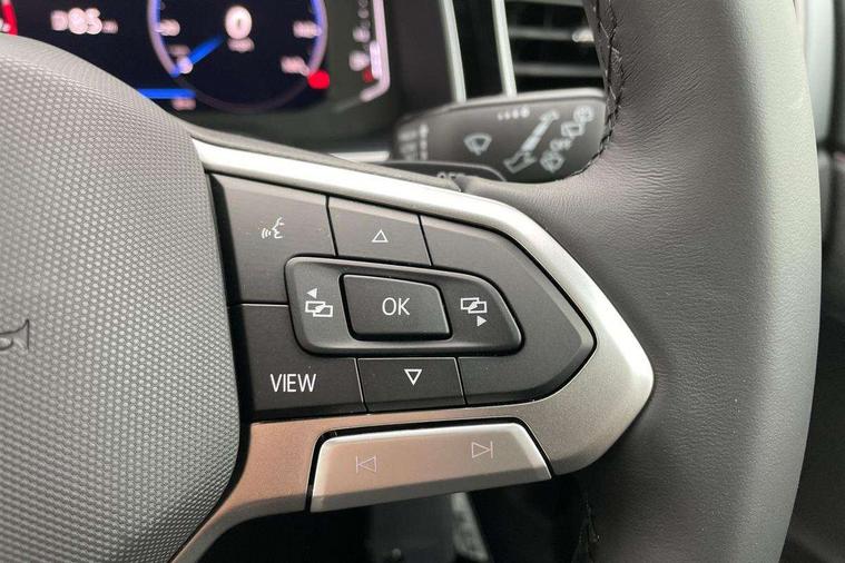 Adaptive cruise control, Advanced driver attention and drowsiness monitor, App-Connect including App-Connect Wireless, Digital cockpit pro - 10.25" high resolution TFT dash display screen with customizable menus and information, Driving profile selection, Dynamic road sign display, e-Call (emergency call), Power Steering, Travel assist including emergency assist, Washer fluid level indicator, Wireless Charging including Bluetooth, Start-stop system with battery regeneration (recuperation - energy recovery during braking), XDS electronic differential lock for improved traction and handling, Digital radio reception (DAB+), Diversity antenna for FM reception, WeConnect plus, Ambient lighting with logo projection, Aspherical driver's exterior mirror, Auto headlights, Body coloured bumpers, Bumpers in R-Line style, Electric windows, External USB type C socket and charging sockets, Front scuff plates with R-Line logo, LED rear combination lamp, LED third brake light, Left convex exterior mirror, Power folding adjustable/heated exterior mirrors and front passenger exterior mirror lowering function, Rear fog light on one side, reversing light on both sides, Rear side wing doors, Rear wash/wipe with intermittent wipe setting, 12V socket in centre console, 2 front reading lights, 3 rear head restraints, 3 seat bench in 2nd row, Air care climatronic air conditoning system with active combination filter and 2-zone temperature control, Black carpets, Black roof lining, Child seat anchor for child seat system i-Size, 2x top tether and child seat anchor in front on front passenger side, Chrome bezel for instrument cluster, vents, door handles + gear shift, Driver and front passenger seat height adjustment, Front + rear carpet mats, Front centre armrest, Front footwell illumination, Front sports comfort seats, Height and reach adjustable steering wheel, Interior ambient lighting and surround lighting, Karoso artvelours cloth upholstery, Leather trimmed gear knob, Leather wrapped multifunction steering wheel, Luggage compartment floor, Luggage compartment light, Lumbar support for driver's and front passengers seat, Seat covers in grey + titanium black, Single front passenger seat, Split folding backrest with centre armrest and unsplit rear seat bench, Stainless steel pedals, Storage compartment under front seats, Sun visors with illuminated vanity mirrors, Chrome Package - Taigo, Drivers assistance pack - Taigo, Light and Sight pack including High beam assist - Taigo, 2 x 3-point seatbelts/outer rear seats with ECE label, 3-point seat belts in front with pretensioner and height adjustment, 3-point seatbelt for centre rear seat, Adaptive driver and front passenger airbags with passenger airbag deactivation function, Driver and front passenger safety-optimised head restraints, Electronic stability control, Extended and predictive pedestrian/ cyclist protection, Front and rear disc brakes, Front curtain and side airbags with center airbag, Hill start assist, Manual rear child locks, Single tone horn, Tyre pressure loss indicator, Anti-theft alarm system with interior monitoring, backup horn, and towing protection, Grey anodised matte decorative inserts in dash and front door panels, Low rolling resistance tyres,