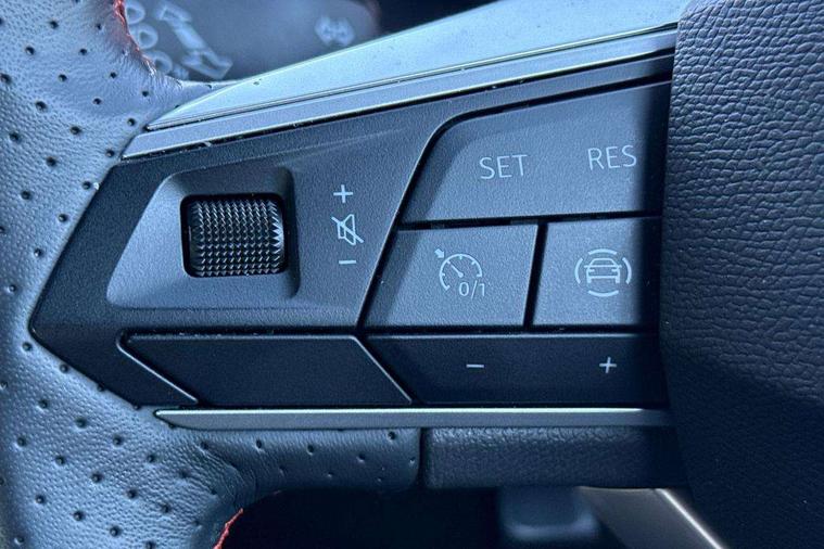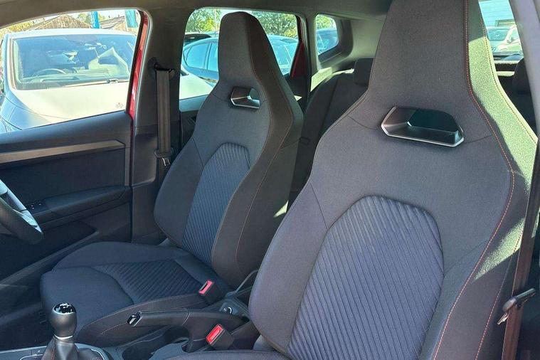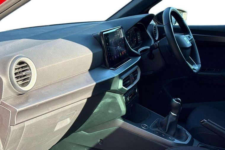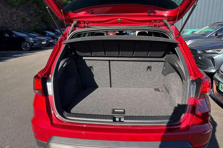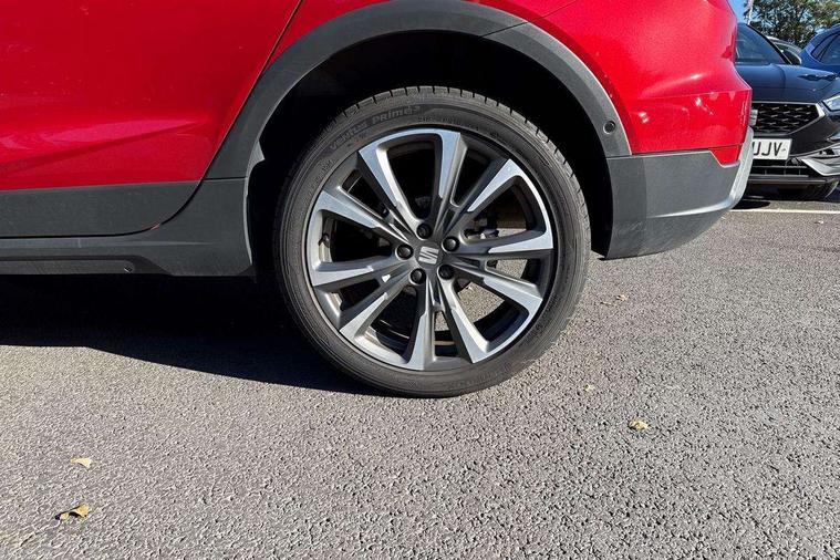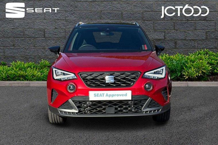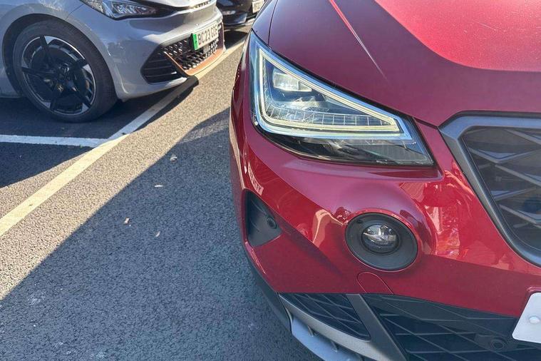 'Lights On' Reminder warning buzzer, 10" Digital cockpit, Digital clock, E-call, Electric speed sensitive power steering, Full Link Smartphone Integration with Mirror Link, Apple Car Play, Google Android Auto with USB Type C cable for Apple and Android compatibility, Lane keeping system, Low fuel warning light, Outside temperature display, Park assist system, Rear view camera, RPM counter, SEAT Drive profile - Four different models normal-sport-eco-individual, steering response, throttle response, Trip computer, Wireless phone charger, 9.2" colour touchscreen with navigation system, voice control and USB port (type c), Bluetooth interface for hands free and audio streaming, DAB digital radio and AM/FM radio, Steering wheel mounted audio controls, Anti theft roof antenna, Auto dimming interior rear view mirror, Automatic activation of hazard warning lights, Body coloured bumpers, Body coloured door handle inserts, Chrome roof rails and window surrounds, Dark tinted rear windows, Electric front/rear windows, Electrically adjustable, heated and folding door mirrors, Front fog lights with cornering function and rear fog light, FULL LED automatic headlights with dynamic headlight range control, coming and leaving home, LED daytime running lights, LED rear tail lights and licence plate lights, Protective side mouldings, Rain sensing wipers, Rear side wing doors, Rear spoiler, Rear window wash/wipe, Roof colour door mirrors, Third brake light, Twin exhaust pipe styling hidden exhaust pipe, Visible VIN plate, 2 cupholders, 3 seat bench in 2nd row, 60/40 split folding rear seat, Aircare filter, Black interior roof, Double boot floor, Driver sunvisor with covered mirror + card holder, Dual zone climate control, Front courtesy light with front reading lights, Front sport seats, Gear shift indicator, Grey interior air vents, Height adjustable front seats, Height/reach adjustable steering column, Illuminated boot, Instrument lighting with brightness control, Interior ambient lighting, Interior light in footwell, central console and door panel, ISOFIX points in outer rear seats with top tether anchorage points, Microsuede cloth upholstery + sports bucket seats, Passenger sunvisor with vanity mirror, Perforated flat bottomed leather steering wheel/gear knob/handbrake with red stitching and FR logo, Potentiometer, Single front passenger seat, Two front and three rear height adjustable headrests, Interior chrome pack - Arona, Safe and driving pack (S) - Arona, 3 point seatbelts on all rear seats, ABS, Active front headrests, Child locks on rear doors, Driver and front passenger airbags with front passenger airbag de activation, front side and curtain airbags, Electronic Stability Control (ESC), Emergency Brake Assist (EBA) and front assist, Front and rear seatbelt reminder, Hill hold control, Multi-Collision braking, Tiredness recognition system, Traction control, Tyre pressure monitoring system, Alarm with back-up horn, Electronic engine immobiliser, KESSY Keyless entry and go, Locking wheel bolts, Remote central locking + deadlocks, Tow away protection, Titan black dashboard, 18" Performance Cosmo grey alloy wheels,