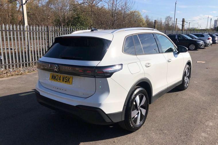 Adaptive cruise control (ACC), Advanced driver attention and drowsiness monitor, Bluetooth mobile phone interface, Digital Cockpit Pro - 10.25" high resolution dash display screen with customisable menus and information, Dynamic road sign display, E-Sim card for online connectivity, eCall emergency call service, Front Assist - Autonomous emergency braking with pedestrian and cyclist monitoring, Lane change system, Side assist, Rear traffic alert and Exit warning system, Lane keeping system Lane Assist, Multifunction front facing camera, Oncoming vehicle braking when turning including swerve support, Park assistance plus with front and rear parking sensors, Power assisted steering with speed sensitive, Start/stop system with regenerative braking, Warning signal and warning light for front and rear seatbelts not fastened, Wireless App-Connect, Front wheel drive, Digital radio reception (DAB), Diversity antenna for FM reception, Ambient lighting with logo projection, Auto dimming interior rear view mirror, Automatic headlight control system, Body coloured bumpers and air intake with chrome trim, Body coloured door handles, Body-coloured exterior mirror housings, Coming/leaving home lighting function, Heat insulating glass in side and rear windows, Heat insulating windshield, Heated rear window, High level 3rd brake light, Illuminated door handle recesses, Illuminated lightline between headlamps, Rain sensor windscreen wipers, Rear fog light on one side, reversing light on both sides, Rear side wing doors, Rear wiper, 12V outlet in center console rear and in luggage compartment, 12V socket in centre console, 3 bench rear seats in 2nd row, Air care climatronic 3 zone air conditioning system with rear air conditioning control panel, Carpet mats, front and rear, Centre console with illuminated storage compartment with sliding cover and two drinks holders, Ceramique headlining, Door and side trim panel in foam film and woven fabric, Front centre armrest, ISOFIX anchors for child seats on outer rear seats and front passenger seat. Compatible with i-Size, Mechanical rear seat release, Power adjustable lumbar support in front, Rear bench seat, split folding, longitudinally movable and folding with load-through hatch and centre armrest, Safety optimised front head restraints, Single front passenger seat, Sun visors with illuminated vanity mirrors, Three rear head restraints, Variable luggage compartment floor, Comfort package incl. Memory feature for Park assist and Safelock - Tiguan, Design package - Tiguan, 3 point seat belt for centre rear seats, 3 Point seat belts in front with pretensioners, 3 point seatbelts in outer rear with ECE label, Driver and front passenger airbag with front passenger airbag deactivation, Electronic parking brake with auto hold, Front and rear curtain airbags, Front and rear side airbags, Front centre airbag, Front disc brakes, Manual child proof rear door locks, Rear disc brakes, Two tone horn, Warning triangle, Anti theft wheel bolts, Soul instrument panel, Airstop tyres,