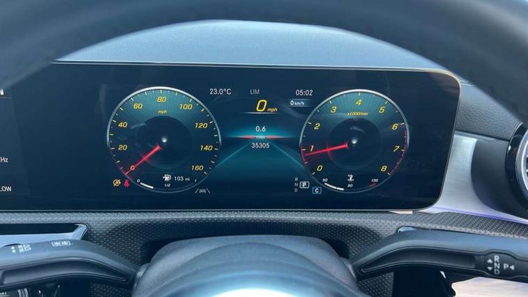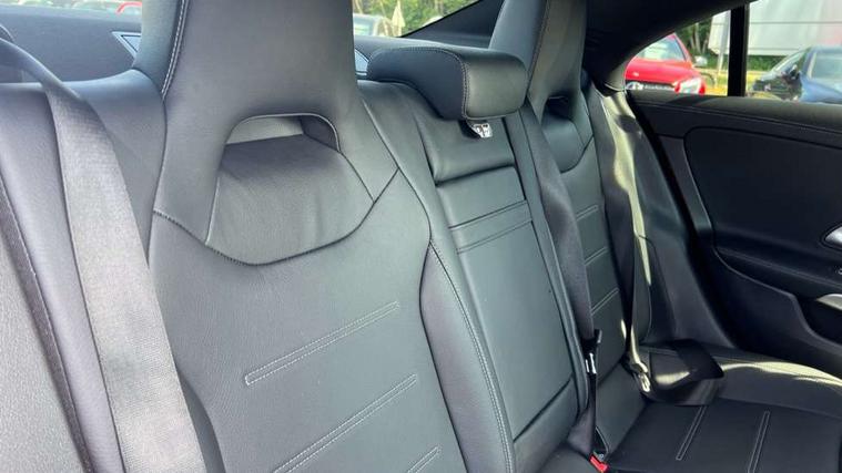 10.25 inch Instrument display with digital cockpit, 10.25 inch touchscreen central media display, Attention assist - Monitors steering behaviour and long journey fatigue, Bluetooth connection, Car wash mode, DYNAMIC SELECT with a choice of driving modes (ECO, Comfort, Sport and Individual), ECO start/stop function, Fluid level warning indicator for fuel, oil, coolant and washer fluid, Hard-disk navigation, Hey Mercedes Voice activation, Lamp failure indicator, Mercedes me connect including emergency call system, accident recovery, breakdown management and maintenance, Mercedes me remote services, Outside temperature gauge, Owners manual and service booklet in English, Pre-installation of private car share, Preinstallation for Mercedes Benz link, Radio aerial integrated into front and rear windshields, Service indicator (ASSYST), Smartphone integration with Apple CarPlay and Android auto, Traffic sign assist, Trip computer in multifunction display with current consumption indicator, 7G-DCT 7 speed automatic transmission, Lowered comfort suspension, Rear axle multi-link, DAB digital radio tuner, MBUX multimedia system with DAB digital radio and touchpad including satellite navigation, Mid-range sound system, USB (type C) ports (2) in stowage compartment and 1 in front of centre console, Adaptive brake lights, AMG body styling with AMG front apron and rear apron and visible exhaust tailpipe in chrome trim elements, AMG bodystyling side skirts, Auto headlights, Body colour bumpers, Body colour door handles, Chrome beltline strips, Chrome weather strip, Diamond radiator grille pins in chrome with silver painted louvres and chrome insert, Electric panoramic sliding sunroof, Electric windows, Electrically adjustable and heated door mirrors with integrated LED indicators, Exhaust system with 2 Visible tailpipe trim elements and rear apron with trim in chrome, Headlamp assist automatic headlamp activation, Heated glass rear windscreen + timer control, High level LED third brake light, Integrated LED daytime running lights, Interior mirror with black reading lamps and frameless, LED tail lamp, Multibeam LED headlamps with adaptive highbeam assist plus, Privacy glass with dark tinting on rear side windows and rear window, Rain sensing windscreen wipers with two sensitivity settings, Rear boot, Rear fog lamp, Rear side wing doors, Window line trim strip in chrome, 3 seat bench in 2nd row, 3 spoke flattened bottom nappa leather multifunction steering wheel with perforated leather in grip area, 40:20:40 split folding rear seats with backrest, Air conditioning - Two zone thermotronic luxury automatic climate control with display, Air vents with surround in silver chrome, Automatic child seat recognition sensor, Black roof lining, Brushed stainless steel sports pedals with rubber studs, Floor mats with stitched AMG lettering, Front centre armrest with stowage, Galvanished gear shift paddles on steering wheel, Heated front seats, Illuminated front door sills with changeable cover, Illuminated glove compartment stowage, Interior lighting - 64 colour Ambient lighting, Luggage net on driver/front passenger seat backrest, Manually height and reach adjustable steering column, Rear armrest with two integral cup holders for drinks, Rear head restraints, Single front passenger seat, Sport seats with fixed head restraints, Stowage compartment in centre console with retractable cover, Sunvisors with illuminated vanity mirrors, Touchpad on center console, Twin front cupholders, Two outer rear seat isofix and top tether child seat fixing points, Keyless go pack - CLA, Light and sight pack - CLA, Mirror pack - CLA, Parking package - CLA, Seat comfort pack - CLA, Active bonnet pedestrain safety measure which detects an impact and raises bonnet by 65mm, Adaptive brake assist with hold function and hill start assist, Anti-lock braking system (ABS), Black seat belts, Bonnet with power domes, Brake pad wear warning indicator, Childproof locks manually operated for rear doors and electrically operated for rear power windows, Crash responsive emergency lighting, Driver and front passenger head and sidebags, Driver and front passenger windowbags, Drivers knee airbag, Dual stage driver and front passenger airbags, Electric parking brake, Electronic stability programme with acceleration skid control, ESP curve dynamic assist, Front and rear seatbelt reminder, Front passenger seat occupancy sensor, Three point rear seat belts, Tyre pressure monitoring system, Warning triangle and first aid kit, Remote central locking and crash sensor with emergency opening function, Urban guard vehicle protection system with immobiliser and interior protection, Light aluminium with longitudinal grain interior trim, 18" 5 twin spoke design alloy wheels painted in titanium grey with high sheen finish, Summer tyres, Tirefit tyre sealant kit,