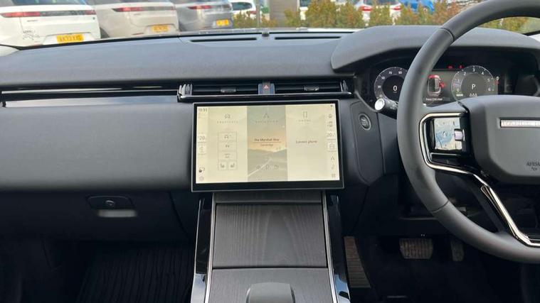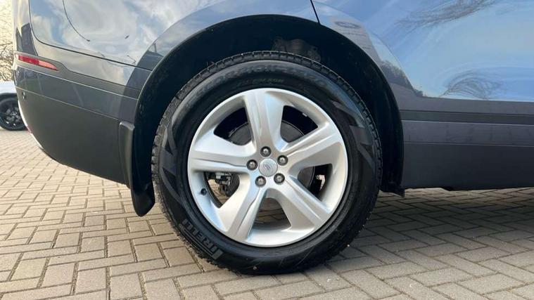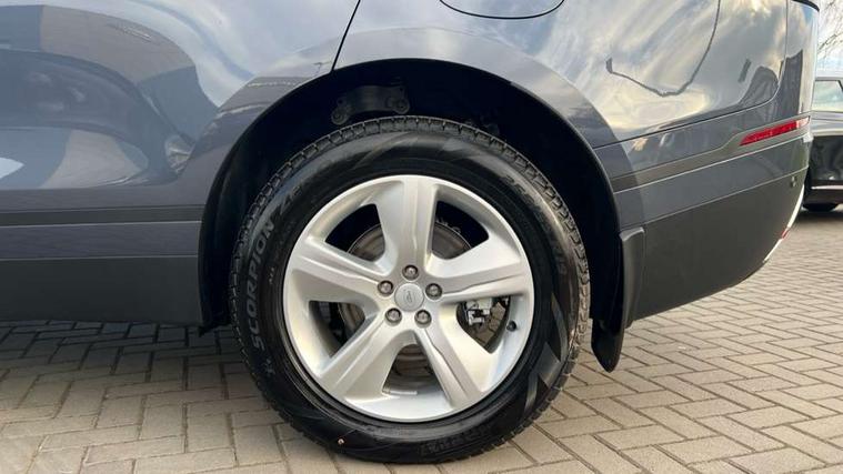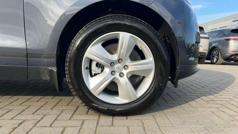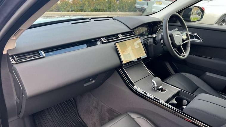 3D surround camera includes forward traffic detection and vehicle guidance, Android Auto, Apple CarPlay, Bluetooth connectivity, Brake pad wear indicator warning light, Driver condition monitor, eCall emergency call system, Front and rear parking aid, InControl remote, Land Rover InControl apps, Lane keep assist, Pivi pro with connected navigation, Service indicator, Speed proportional electronic power assisted steering (EPAS), Traffic sign recognition with adaptive speed limiter, Trip computer, Voice control system, Wade Sensing, Wireless device charging, 7kw on board charger, 8 speed automatic transmission, AC/DC charging, Adaptive dynamics, All terrain progress control, Coil suspension system, Home charging cable, Open differential with torque vectoring by braking, Public charging cable, Single speed transfer box, DAB radio, Steering wheel mounted controls, 3rd brake light, Acoustic laminated windscreen, Auto dimming interior rear view mirror, Auto high beam assist, Automatic headlamp levelling, Automatic headlights, Body coloured bumpers, Boot protection plate, Electric windows with one touch open/close and anti trap, Flush deployable exterior door handles, Follow me home headlights, Heated rear window with timer, Heated washer jets, Heated windscreen, LED headlights with signature DRL, Metal front tread plates, Metal load space scuff plates, Power fold, auto-dimming, heated door mirrors with memory and approach lights, Rain sensor windscreen wipers, Rear animated directional indicators, Rear fog lights, Rear side wing doors, Rear wash/wipe, Tailgate/boot lid spoiler, Trailer stability assist, Velar badge, 14 way electrically adjustable front seats with driver's memory function, 3 seat bench in 2nd row, Ambient lighting, Carpet mats, Driver/passenger sunvisors with illuminated vanity mirrors, Ebony morzine headlining, Electrically adjustable steering column, Heated steering wheel, Isofix system on outer rear seats, Loadspace cover, Overhead lighting console, Overhead stowage for sunglasses, Passive front headrests, Rear air vents, Rear centre headrest, Single front passenger seat, Twin front cupholders, Twin sliding front centre armrest, Online pack with data plan - Velar, Power socket pack 2 - Velar, 380mm front brakes and 325mm rear brakes, 3x3 point rear seatbelts, Anti-lock braking system (ABS), Cornering brake control, Curtain airbags, Customer configurable autolock, Door side intrusion beams, Driver airbag, DSC - Dynamic Stability Control, Electronic brake force distribution, Electronic parking brake, Electronic traction control, Emergency braking, Front and rear seatbelt reminder, Hill descent control, Hill launch assist, Low traction launch, Passenger airbag, Power operated child locks, Rear airbags, Roll stability control, Side airbags, Tyre pressure monitoring system (TPMS), Global lock and unlock switch on driver door, Immobiliser, Intrusion sensor, Keyless entry, Lock only switch on front passenger door, Locking wheel nuts, Perimetric alarm, Remote central locking, All season tyres,