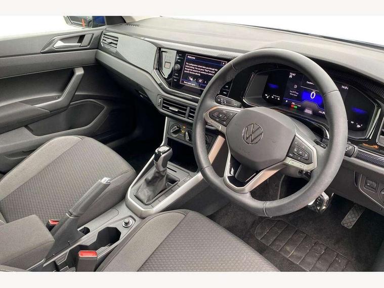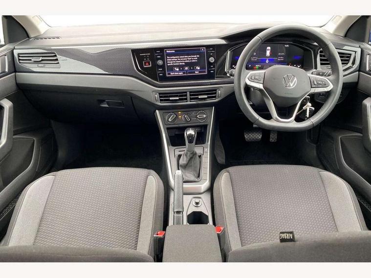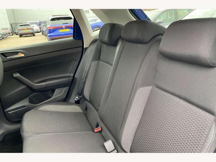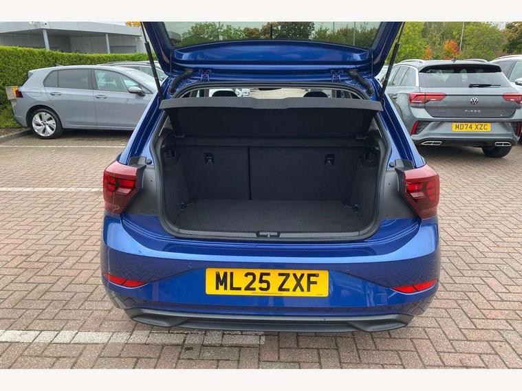 Advanced driver attention and drowsiness monitor, Bluetooth mobile phone interface, Dynamic road sign display, Emergency call service, Multifunction front facing camera for distance control, Park distance control, Power assisted speed sensitive steering, Predictive adaptive cruise control without follow-to-stop and speed limiter, Preparation for navigation system with media and internet package, Preparation for We connect and We connect plus, Rear view camera, Speedo and rev counter, electronic odometer, trip, service interval display and exterior temperature gauge, Standard rear axle, Travel Assist - Lane keeping system and traffic jam assist, Travel assist including emergency assist, Trip computer, Warning signal and warning light for front and rear seatbelts not fastened, Washer fluid level indicator, Wireless app connect, Front wheel drive, Rear shock absorpion, Start-stop system with battery regeneration (recuperation - energy recovery during braking), DAB Digital radio, Diversity antenna for FM reception, Front and rear 6 speakers, Automatic dimming interior rear view mirror, Automatic headlight control with LED separate daytime running lights with coming/leaving home function, Body colour bumpers with chrome inserts, Body colour door handles, Body colour door mirrors, Electric front windows, Engine badge deletion, Headlight range adjustment, Heat insulating and laminated safety glass windshield, LED Headlights, LED rear combination lamps, Power folding adjustable/heated exterior mirrors and front passenger exterior mirror lowering function, Rain sensor, Rear electric windows, Rear fog light, Rear side wing doors, Rear tinted glass from B-pillar backwards approx 65% tinted, Rear windscreen washer and wiper with interval delay, Third brake light, 12V power socket in centre console, 2 front and 2 rear reading lights with switch off delay and dimmer, 2 USB-C ports in the front, 2 USB-C charging sockets on the center console in the rear, 3 rear head restraints, 60/40 split folding rear seat and rear seat bench not split, Ceramique roof lining, Chrome plated radiator grille inserts, air vent surrounds and light switch surrounds, Door and side trim panel, Driver and front passenger seat height adjustment, Driver/passenger sunvisors with illuminated vanity mirrors, Front centre armrest, Front seat backrest storage pockets, Front standard seats, Handbrake lever handle in leather, Hartley/Thomas cloth upholstery, Headliner in recycled material, Isofix child seat preparation easy-fit (for two outer rear seats, and front passenger seat) compatible with I-size, Leather trimmed gear knob, Luggage compartment cover, Luggage compartment lighting, Removable luggage compartment floor, Single front passenger seat, Standard climatic zones, Standard pedal cluster, Three spoke leather wrapped multifunction steering wheel with shifting paddles, Light and vision pack - Polo, 3 point height adj front seatbelts + pretensioners, 3 point seat belt for centre rear seat, 3 point seatbelts, outer rear with ECE lable, ABS, Driver and front passenger airbag with front passenger airbag deactivation, Drivers and front passengers safety optimised head restraints, ESC (Electronic stability control) + EDL (Electronic Differntial lock) and ASR (Traction control), Extended and predictive pedestrian/ cyclist protection, Front assist with autonomous emergency braking (for Adaptive Cruise Control ACC up to 130 mph), Front curtain and side airbags with center airbag, Front disc brakes, Hill hold control, Manual child lock in rear doors, Rear drum brakes, Single tone horn, Tyre pressure loss indicator, Alarm with interior protection, Anti-theft alarm system with interior monitoring, backup horn, and towing protection, Anti-theft wheel bolts, Electronic engine immobiliser, Lava stone black gloss/matt decorative inserts in dash and front door panels, 16" Torsby alloy wheels, Low rolling resistance tyres,
