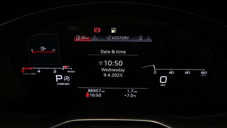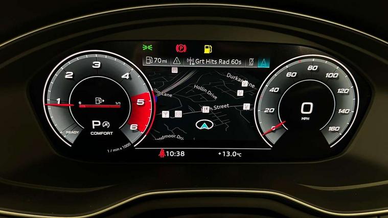 Audi connect safety and service (e-call), Audi drive select, Audi parking system plus with front and rear sensors, Audi smartphone interface, Audi virtual cockpit, Automatic start-stop system with coasting functionality and efficiency programme, Bluetooth interface, Cruise control system with speed limiter, Electromechanical power steering, MMI Navigation plus with MMI touch includes 10.1" high resolution colour MMI display, 3D map, Power operated tailgate, Rear view camera, Voice control system, Comfort dynamic suspension, 2 USB charging ports, 8 passive loudspeakers, DAB digital radio reception, Aluminium roof rails, Auto dimming rear view mirror, Body coloured door mirrors, Electrically folding auto dimming/adjustable/heated door mirrors with LED side indicators and kerb view function for passenger side, LED headlights and rear lights with LED daytime running lights, New design rear diffuser, Rain and light sensors, Windscreen with acoustic glazing, 3 spoke high multi-function leather sport steering wheel with paddle shift and height and reach adjustable, 4 way electric lumbar support for driver and front passenger, 40/20/40 split folding 3 rear seat bench in 3 parts with rear centre armrest, Deluxe 3 zone electronic climate control, Door sill trims with aluminium inlay, Electric load area cover, Front and rear head restraints, Front centre armrest, Heated front seats, Interior lighting, ISOFIX child seat mounting and top tether, Manual seat adjustment, High gloss package - A4, 3 rear seatbelts, 6 airbags - Driver, front passenger, curtain and side windows, Electronic Stabilisation Control (ESC) including ABS, ASR and EDL, Hill hold assist, Multi collision brake assist, Pop-up bonnet for pedestrian protection, Pre sense city, Seatbelt monitoring, Warning triangle and first aid kit, Anti theft alarm, Anti theft wheel bolts, Keyless Go, Tool kit, Tyre repair kit,