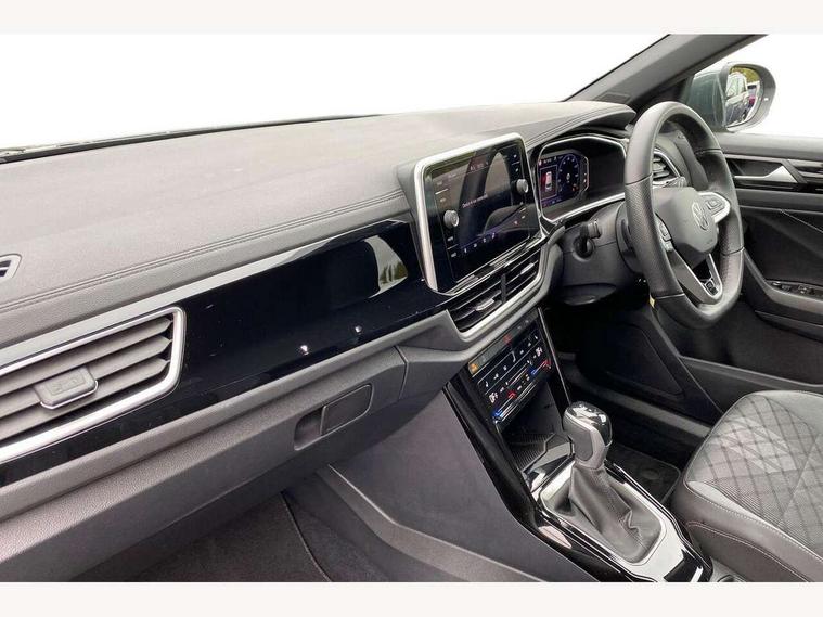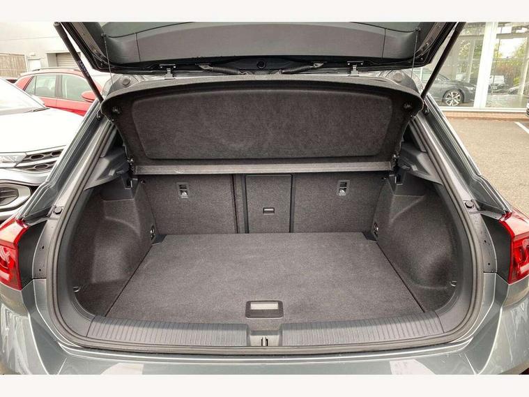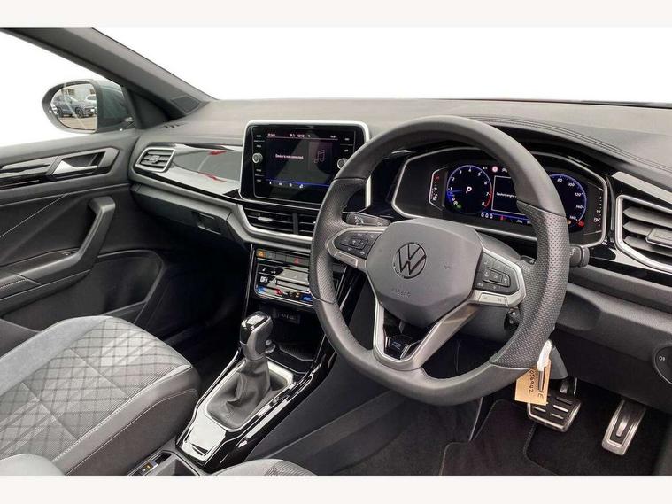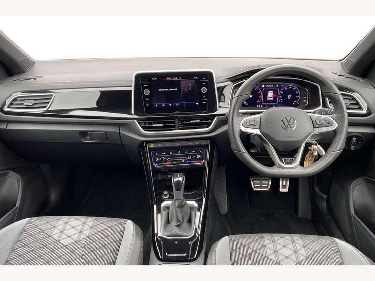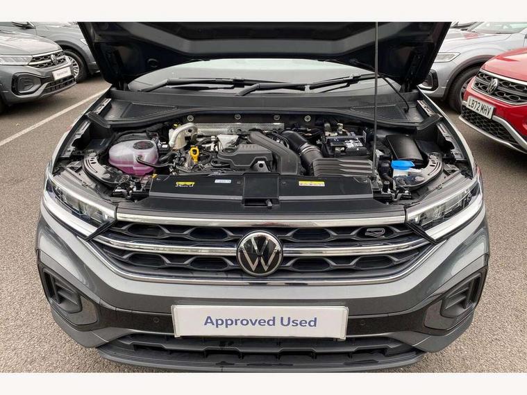 10.25" Digital cockpit pro, Advanced driver attention and drowsiness monitor, Emergency call service, Lane keeping system Lane Assist, Mobile phone interface, Modified key software - reduce switch off time for key status change to Long no motion, Online services, Park assist including front and rear parking sensors, Service interval indicator, Tailgate/trunk lid release from outside, Think blue trainer driver tips and journey analysis, Warning sound and light for front seatbelts unfastened, Wireless app connect, Battery regeneration during braking, Start/stop function with battery regeneration, DAB Digital radio, Diversity antenna for FM reception, Front and rear 6 speakers, Music playback - MP3, WMA and AAC files, Premium USB cable in choice of either Apple or Android smartphone compatibility, SD card slot, Simultaneous pairing of 2 compatible mobile devices, Title and cover art display, We Connect and We Connect Plus functionality, Auto dimming interior rear view mirror, Automatic hazard lights activation under emergency braking, Automatic headlight control with LED separate daytime running lights with coming/leaving home function, Body coloured exterior mirror housings and door handles, Electrically adjustable and heated door mirrors, Extended roof spoiler, Exterior mirrors aspherical on driver side, convex on front passenger side, External USB type C socket and charging sockets, Front windscreen wiper with intermittent wipe and 4 position delay, Heated rear window, LED 3rd brake light, LED rear combination lamps, LED rear number plate lights, Power windows with comfort operation and circuit breaker, Privacy glass for rear side windows and rear window, R-Line design body coloured bumpers, Rain sensor, Rear exhaust tailpipe, Rear fog light on one side and reversing lights on both sides, Rear side wing doors, Rear wash/wipe with intermittent wipe setting, Remote electrically foldable door mirrors, puddle lights and reverse activated passenger's door mirror, 12V power socket in centre console, 3 rear head restraints, 3 seat bench in 2nd row, 4 load lashing points in luggage compartment, Air care climatronic air conditoning system with active combination filter and 2-zone temperature control, Black roof lining, Chrome plated decorative trims, Chrome plated radiator grille inserts, air vent surrounds and light switch surrounds, Door and side trim panel with leatherette insert, Front + rear carpet mats, Front centre armrest, Front cupholders x 2, Front footwell illumination, Front reading light, Front scuff plates with R Line logo, Front seat back storage pockets, Glove compartment door with light, Instrument lighting, white adjustable panel illumination, Interior ambient lighting and surround lighting, Interior light delay, Isofix child seat preparation, Leather gearshift handle, Load-through provision with cup holder when folded down ('Unsplit rear seat bench, split folding backrest, with centre armrest), Luggage compartment lighting, Single front passenger seat, Stainless steel pedals, Storage compartment in left and right luggage area, Storage compartment in rear doors, Storage compartments in driver and front passenger doors, Sunvisors with illuminated vanity mirrors, Variable boot floor, height adjustable and removable, Driver assistance pack without proactive passenger protection - T-Roc, 3 point height adj front seatbelts + pretensioners, 3 point seatbelts in outer rear with ECE label, ABS, Child locks on rear doors, City emergency braking and pedestrian monitoring, Driver and front passenger airbag with front passenger airbag deactivation, Driver and front passenger safety-optimised head restraints, Drivers seatbelt reminder, Electronic parking brake, Electronic Stability Control (ESC) inc EDL (Electronic Differential Lock) and ASR (Traction Control), Front and rear passengers curtain airbag system including front side airbags, Hill start assist, Predictive pedestrian protection, Rear disc brakes, Two tone horn, Tyre pressure loss indicator, Volkswagen roadside assistance, Piano black decorative inserts in dashboard and front door trim panels, Trims for alloy wheels,